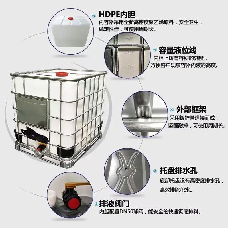 Pupan 1000L ton barrel IBC container barrel thickened water storage barrel vehicle-mounted chemical barrel shaped water tank horizontal diesel barrel 70% new wood bottom (buyer bears freight)