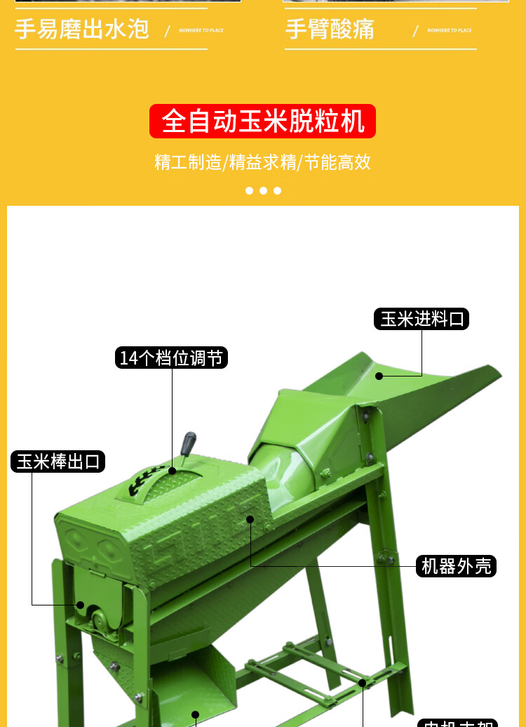 Pupan's new electric corn thresher, baling machine, fully automatic household corn separator, dry corn artifact, emerald green