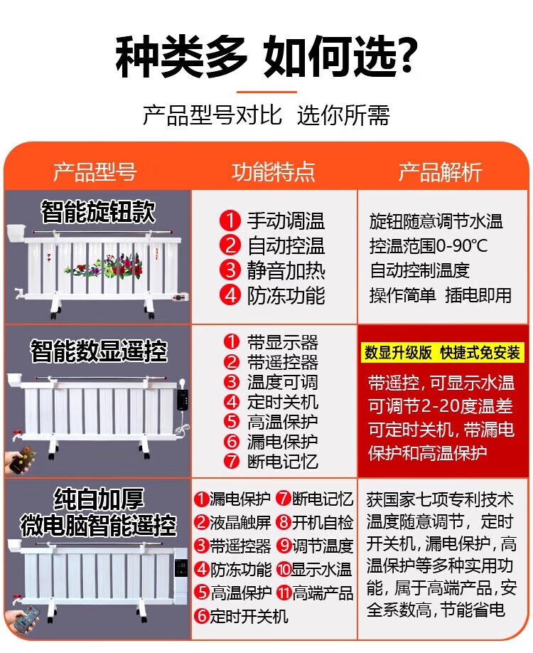 Shantou Lincun electric radiator household water heating heater intelligent water injection circulation electric heater water filling energy-saving electric heating radiator 10-column intelligent knob temperature adjustment noiseless 0mm