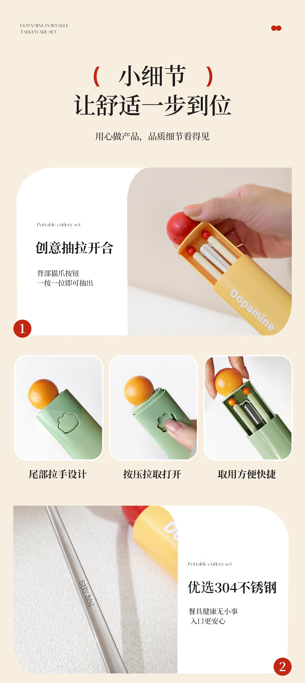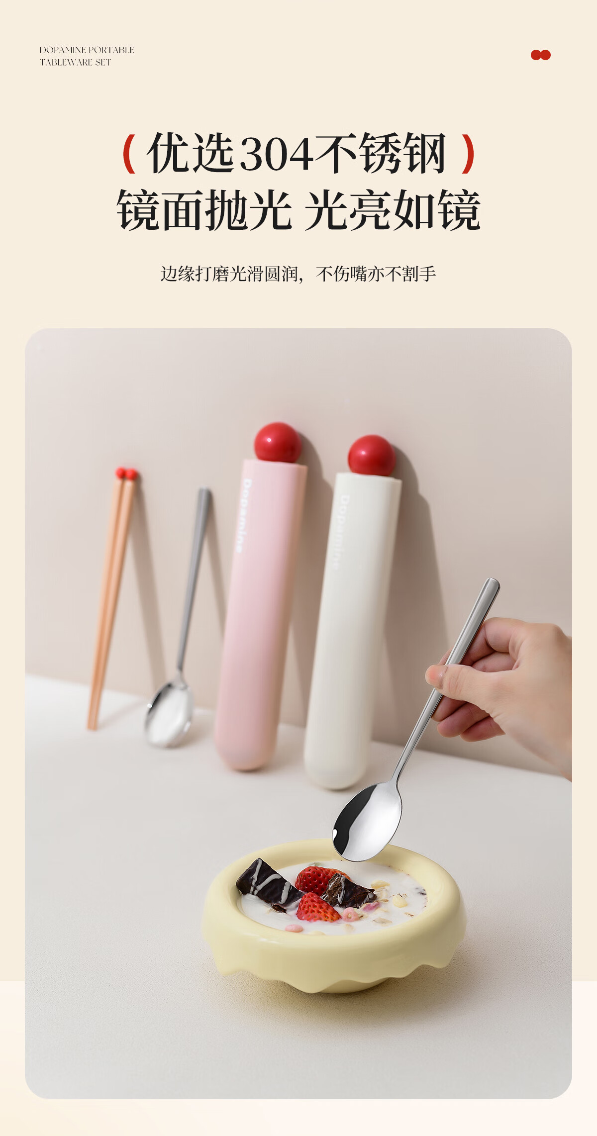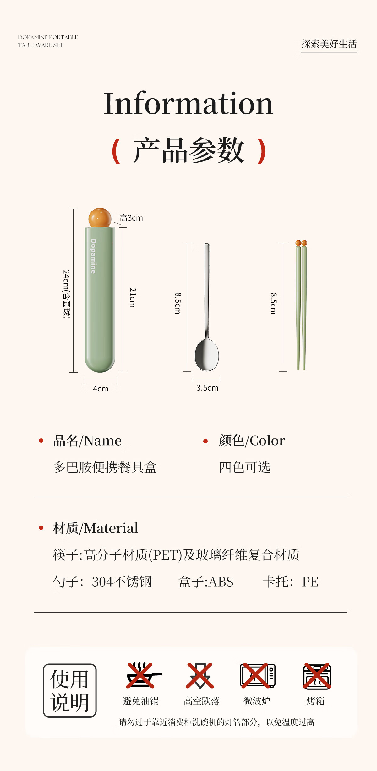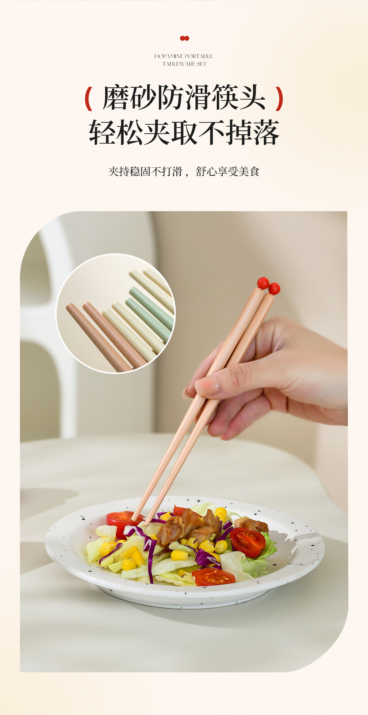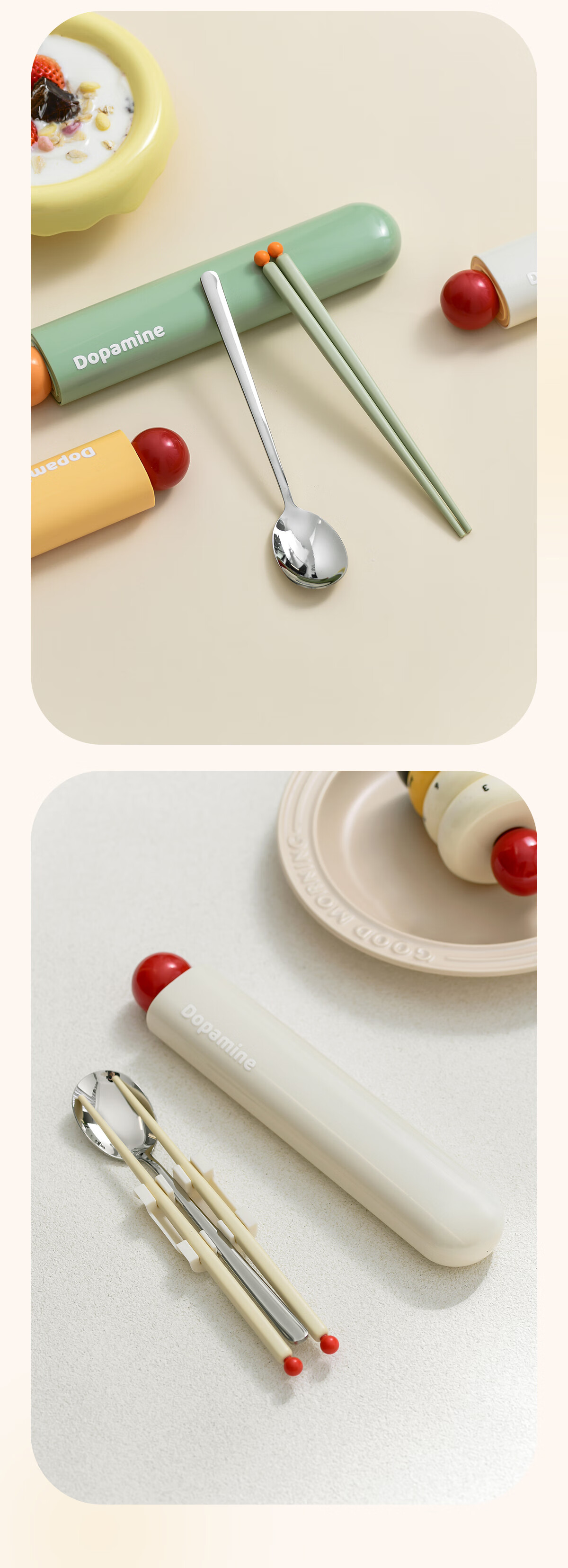 AKAW Japanese student office worker cute portable tableware storage box high-value stainless steel chopsticks and spoons two-piece set green 304 stainless steel spoon + antibacterial chopsticks