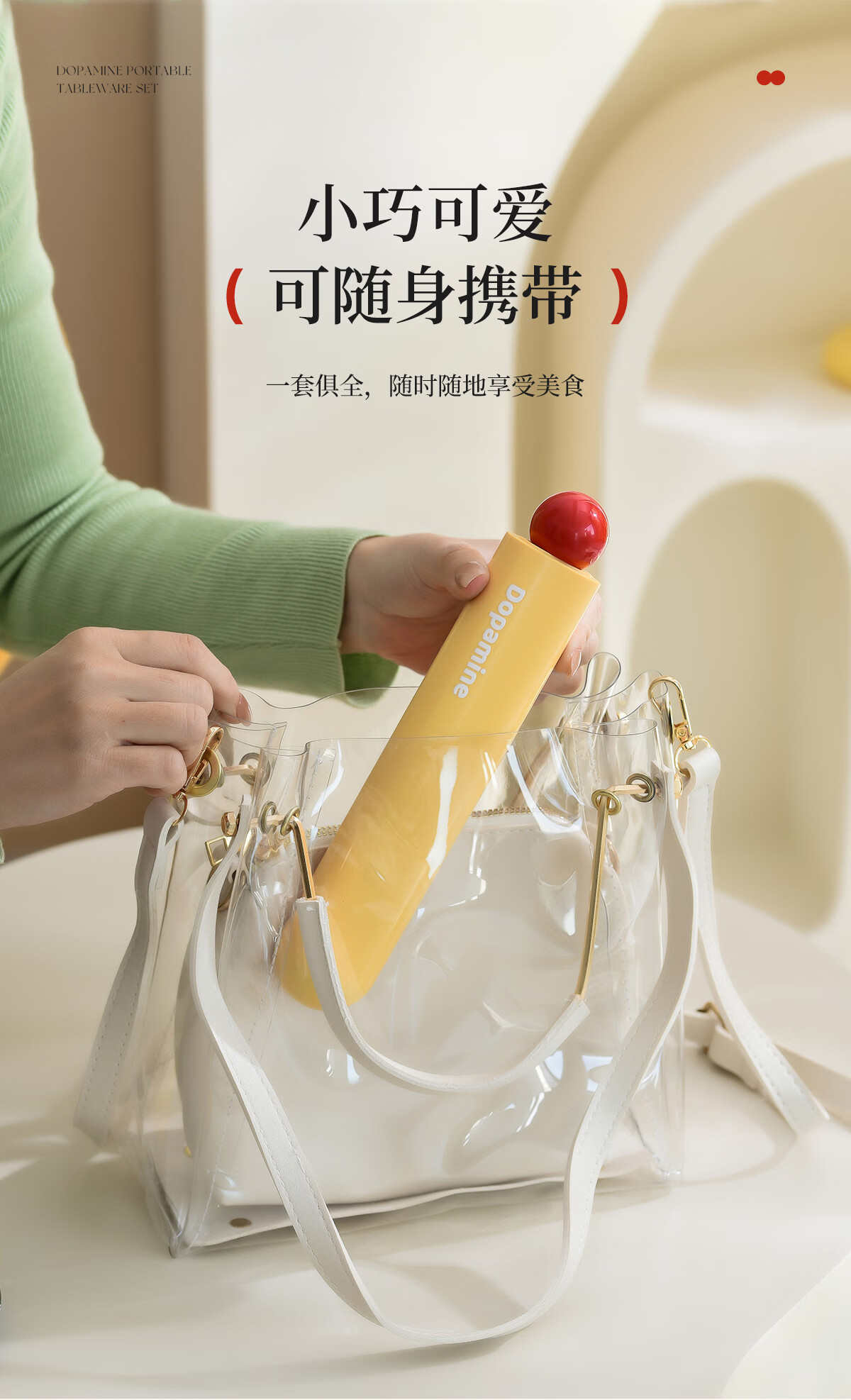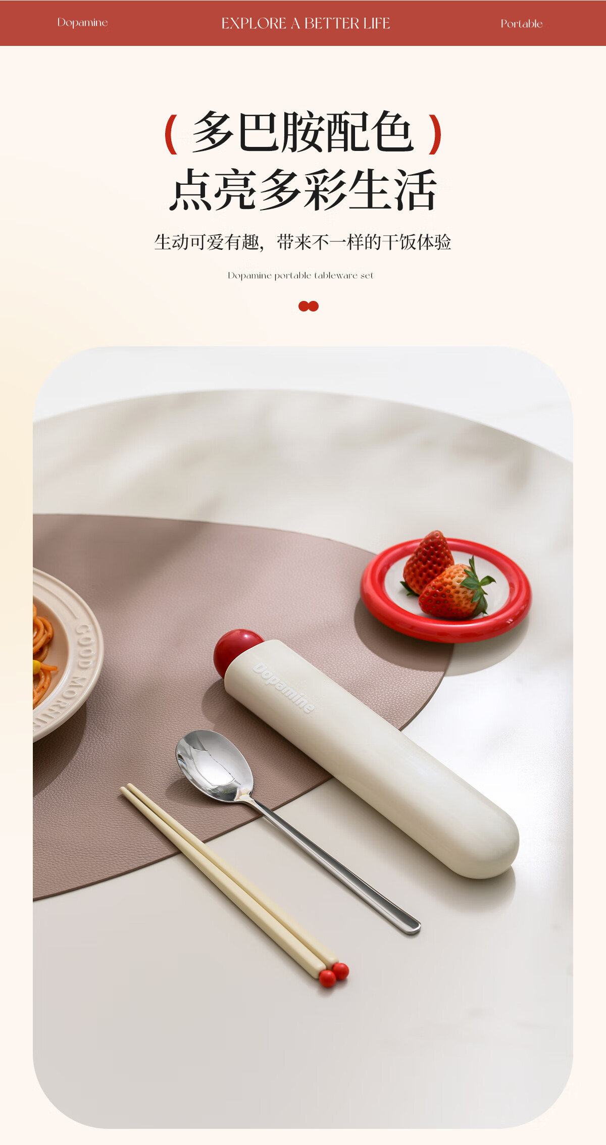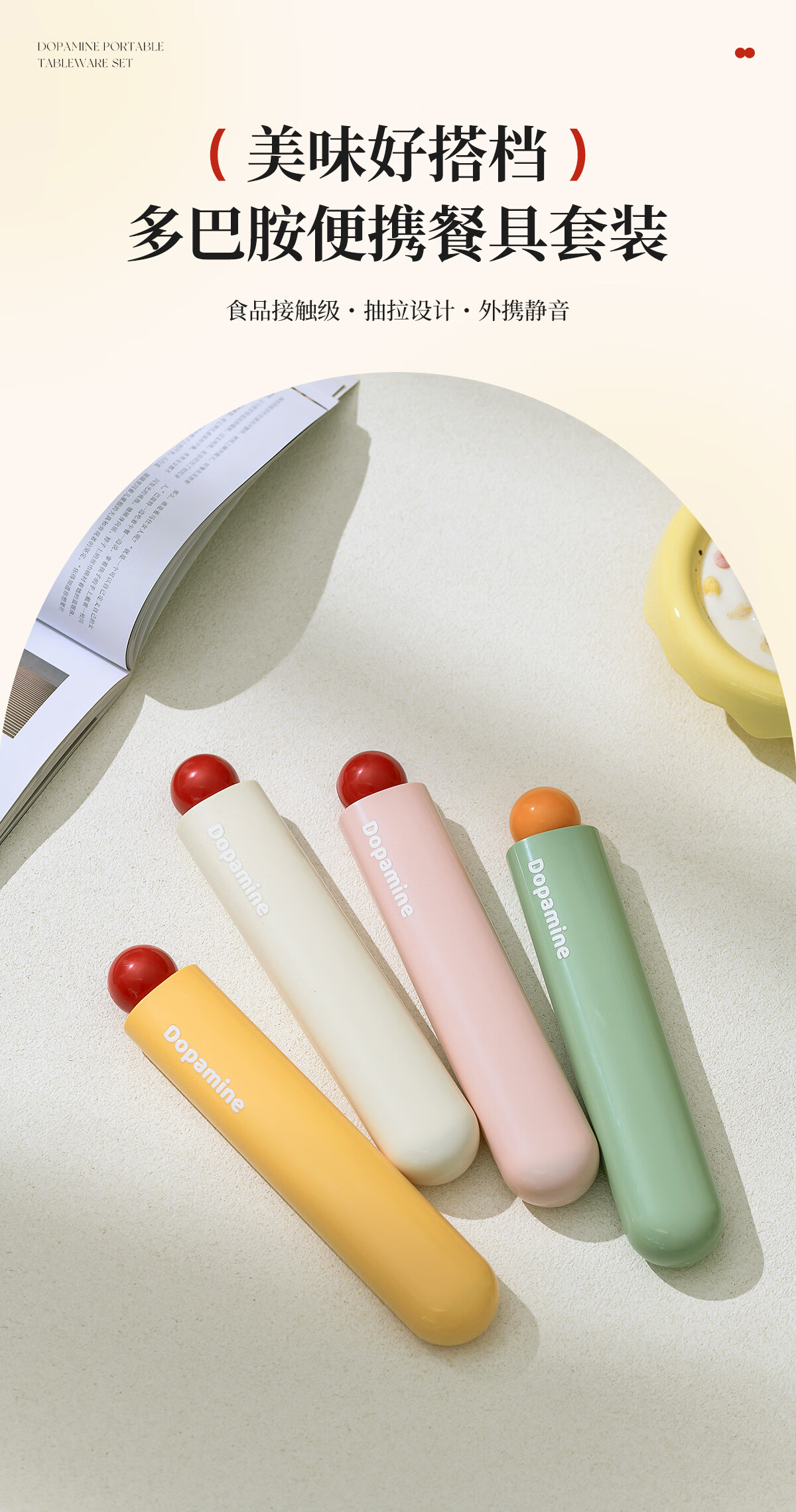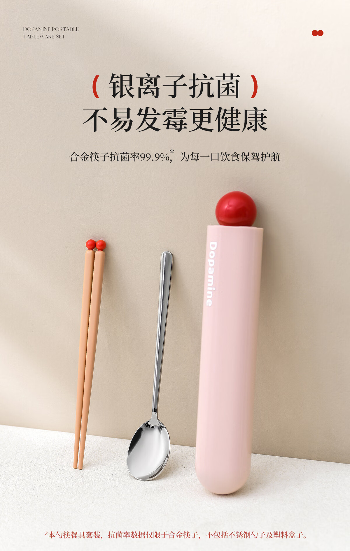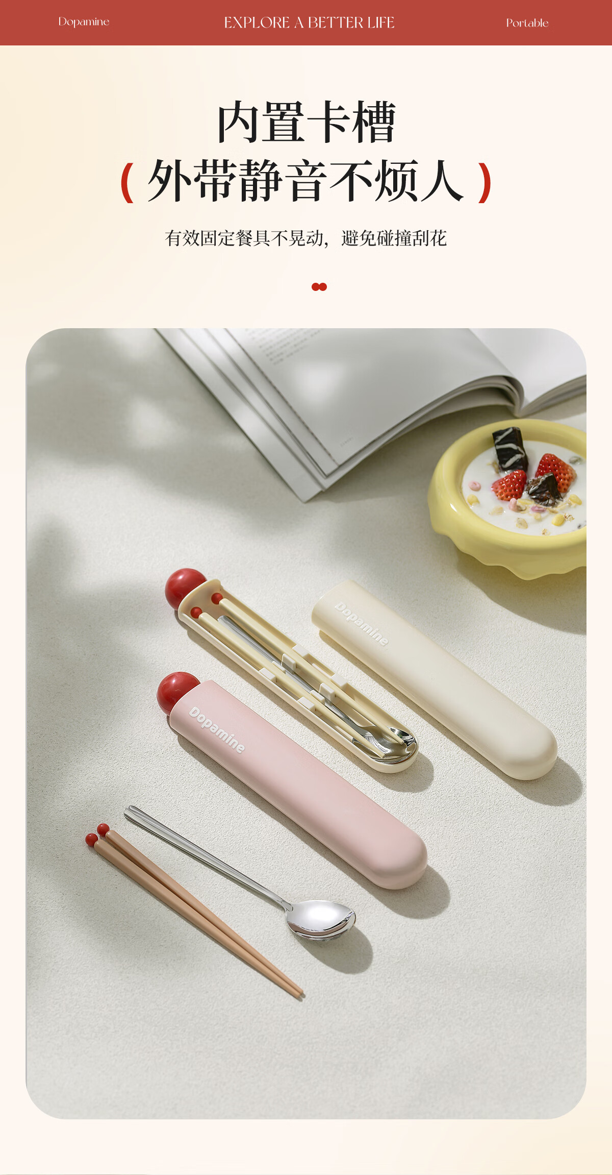 AKAW Japanese student office worker cute portable tableware storage box high-value stainless steel chopsticks and spoons two-piece set green 304 stainless steel spoon + antibacterial chopsticks