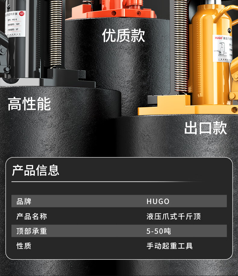 HUGO claw jack hydraulic vertical 30t tons 50 duckbill type 5T10T20 hydraulic low-position heavy-duty hoisting machine (HUGO electric model) top 50 tons claw 25 tons