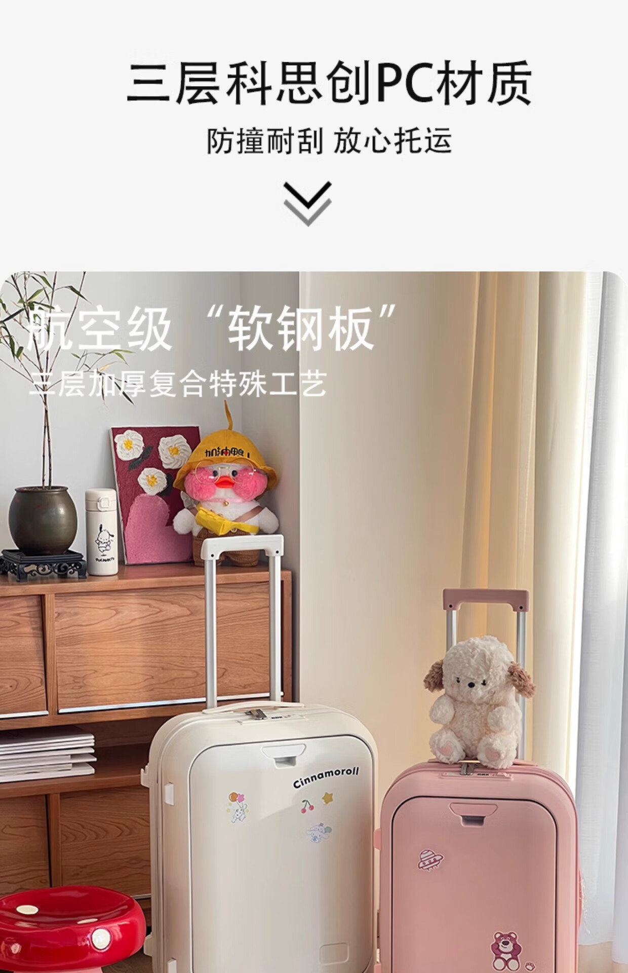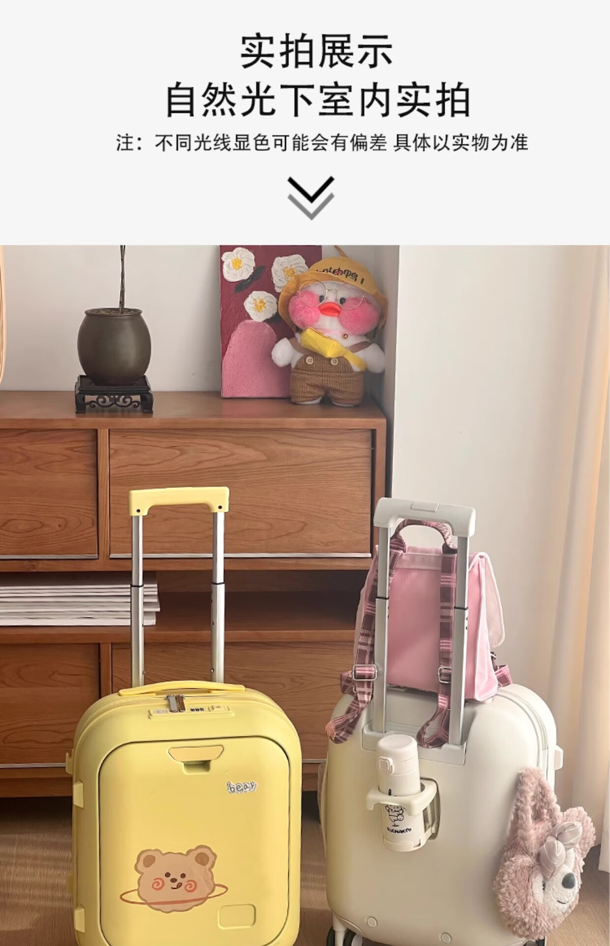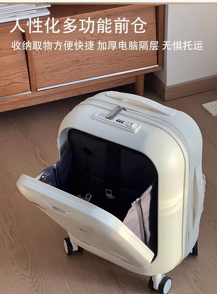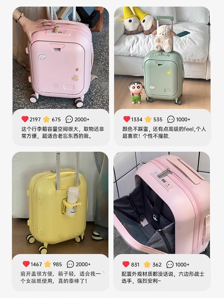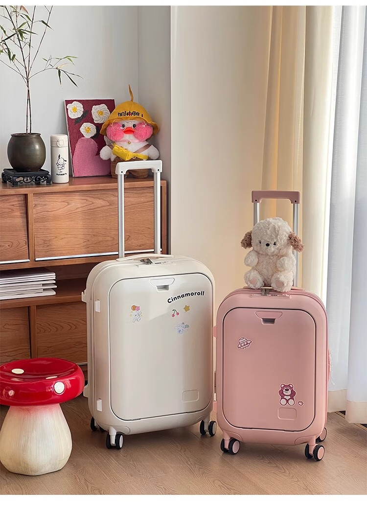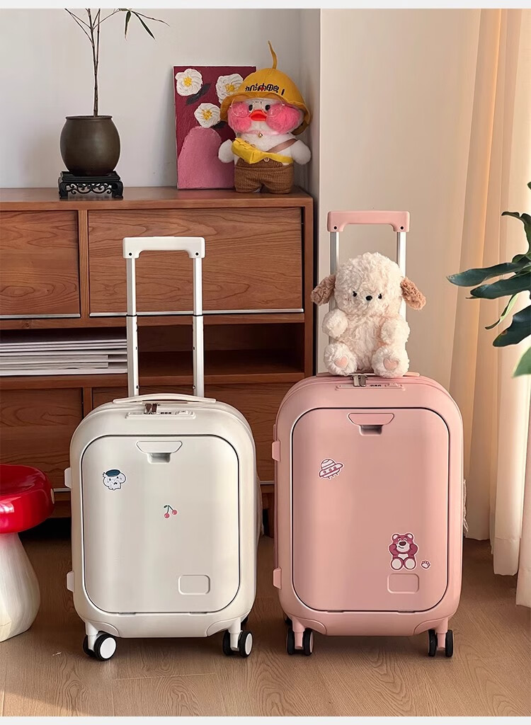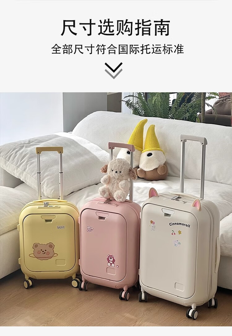 Woodpecker front-opening suitcase for children, cute, multifunctional, thickened, rideable suitcase, small, lightweight, check-in-free password box, lemon yellow - cup holder + side hook + charging interface, 20 inches, boardable - suitable for travel for 3-5 days