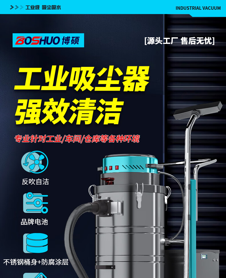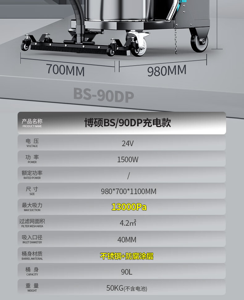 Industrial vacuum cleaner factory workshop dust high suction rechargeable vacuum cleaner wet and dry single barrel maintenance-free lithium battery lithium iron phosphate three blower 90L battery model new-rechargeable model anti-corrosion coating +86Ah lead-acid maintenance-free BS-90DP