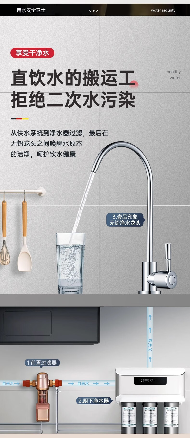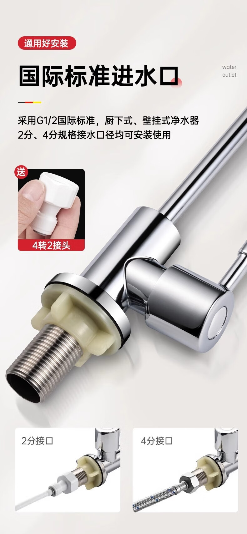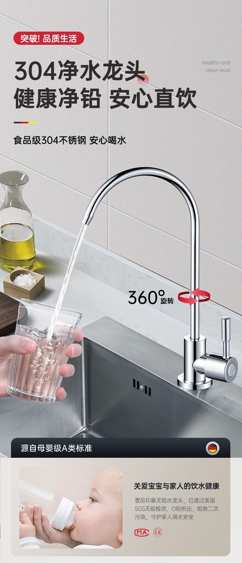 Jomoo new German water purifier faucet 304 stainless steel lead-free direct drinking kitchen household tap water single cold water dispenser bright silver | pure lead-free 2-point/4-point interface universal | water purifier universal