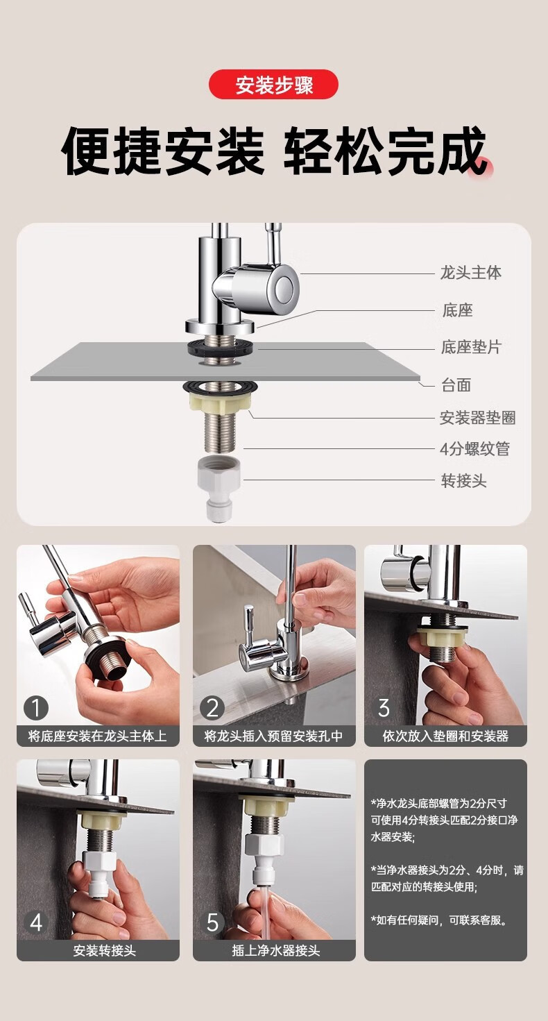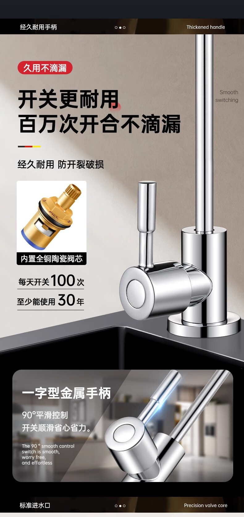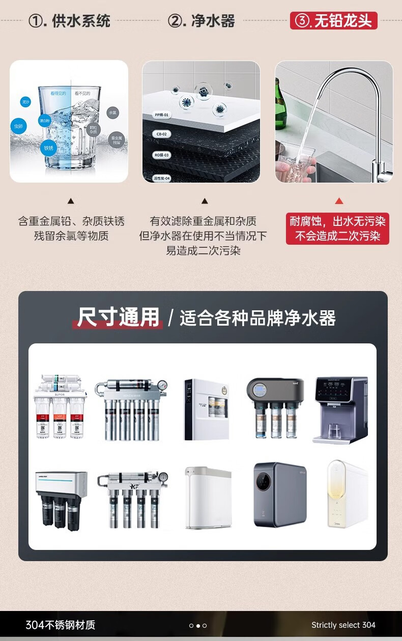 Jomoo new German water purifier faucet 304 stainless steel lead-free direct drinking kitchen household tap water single cold water dispenser bright silver | pure lead-free 2-point/4-point interface universal | water purifier universal