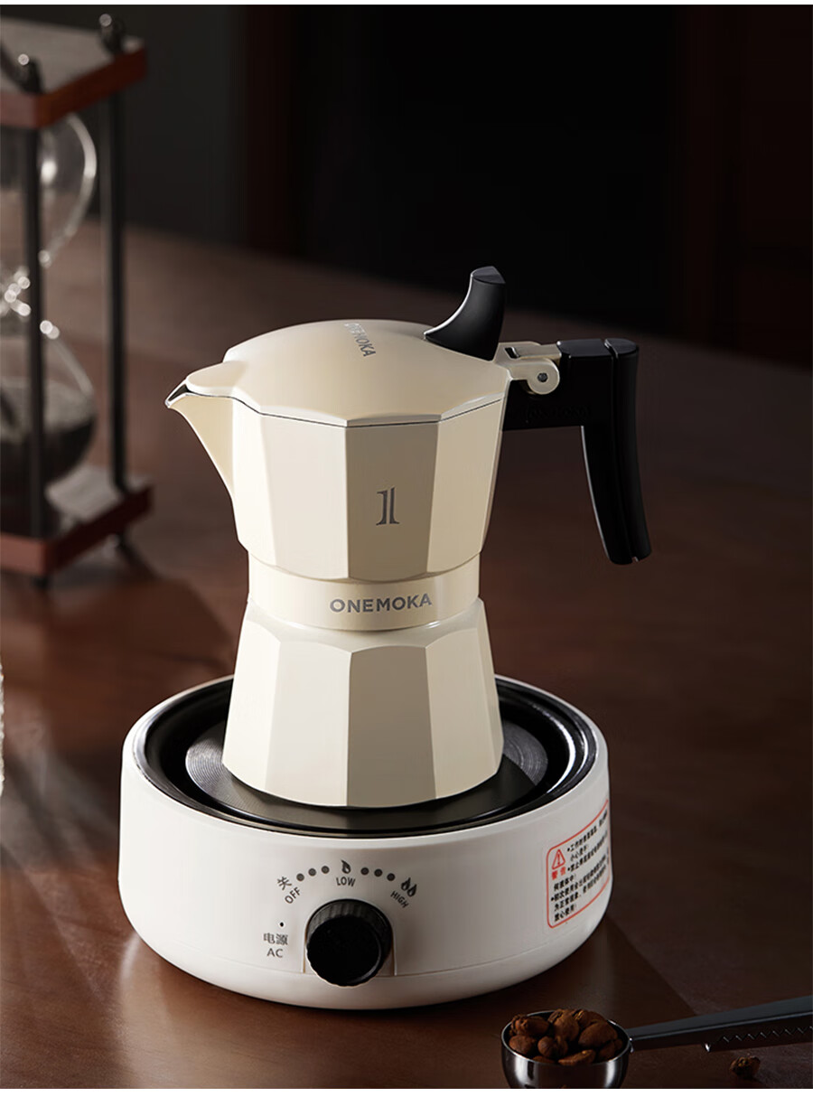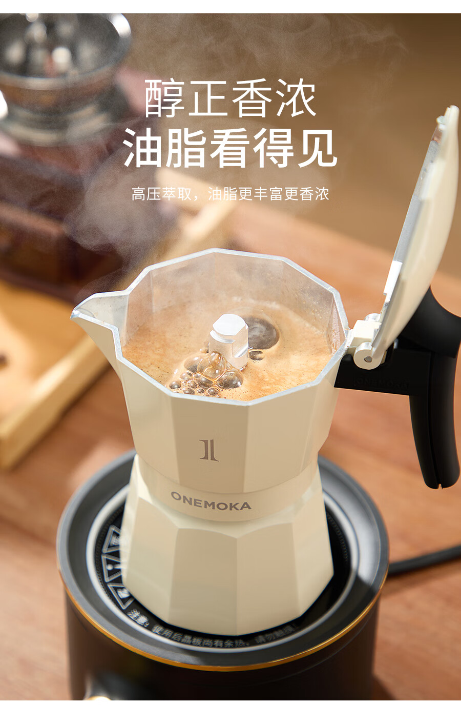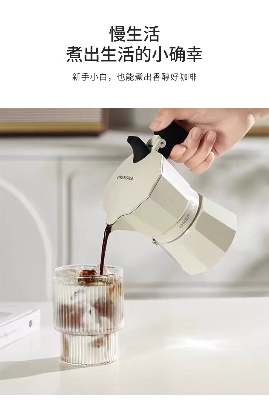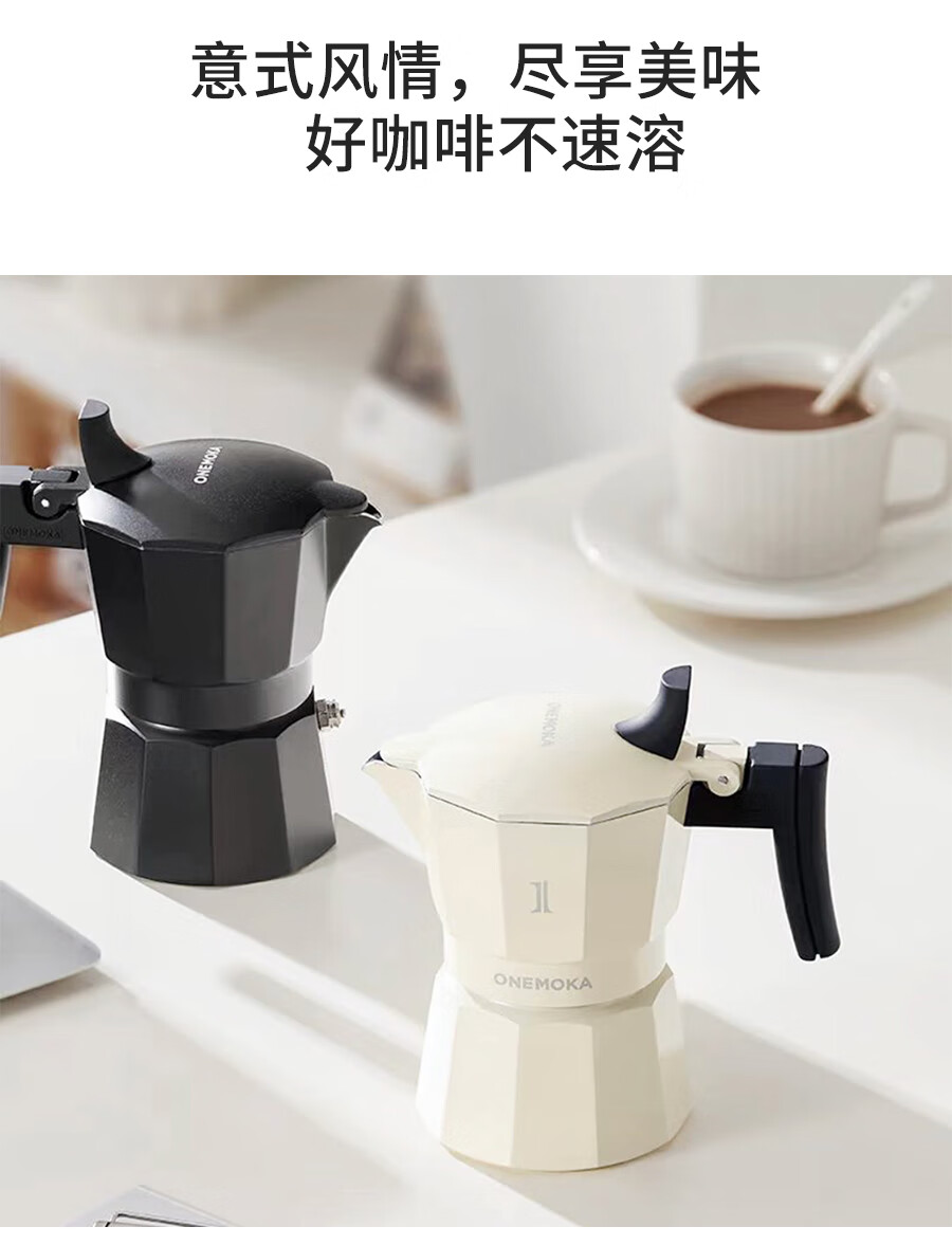 ONEMOKA a two-valve fourth-generation Moka pot with dense grease for home use for outdoor coffee making, Italian-style pot, supercharged white Moka pot single pot 90ml