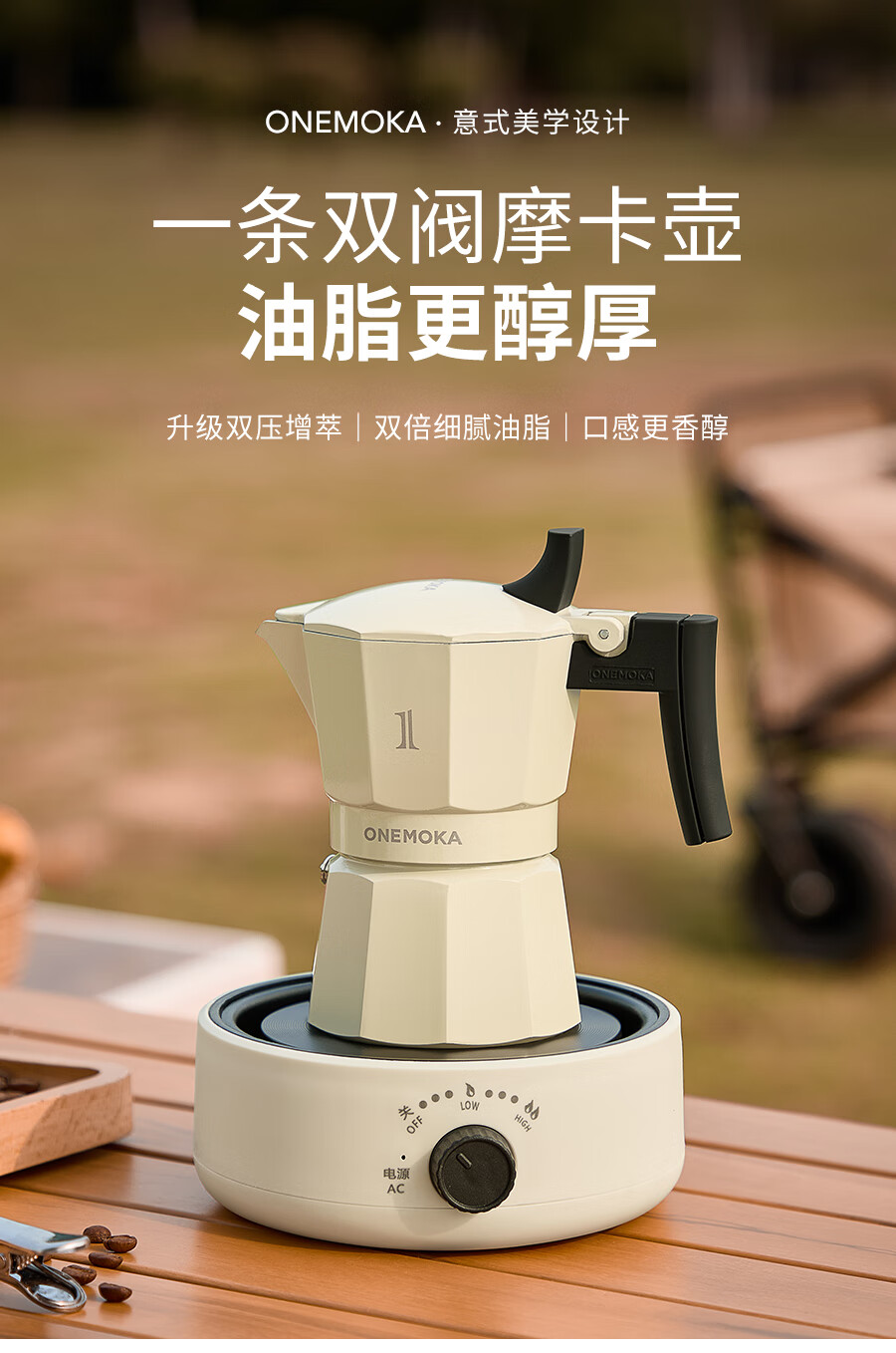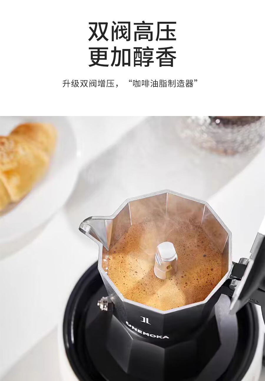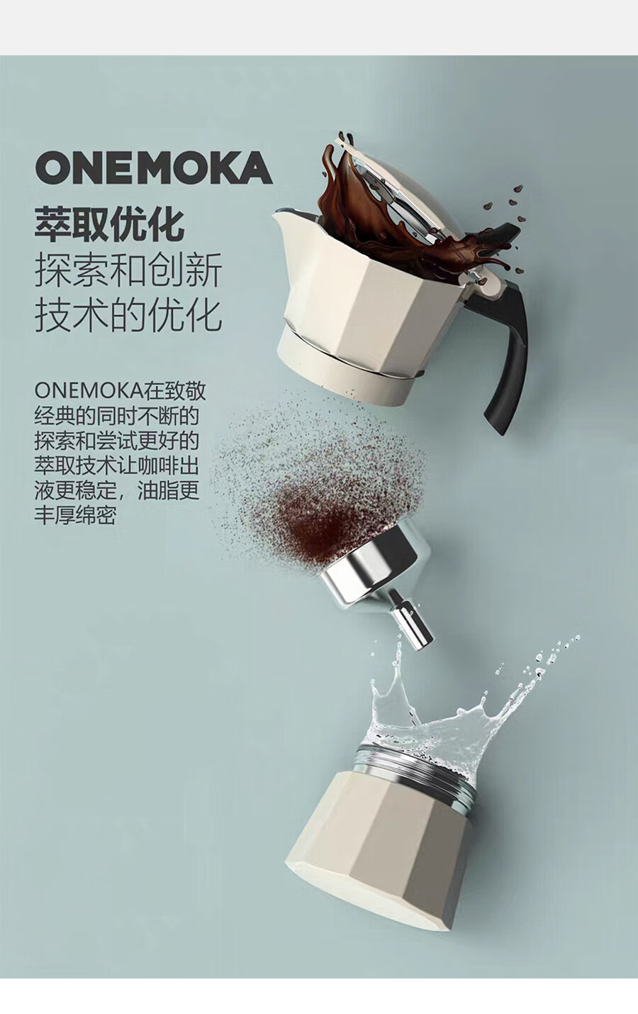 ONEMOKA a two-valve fourth-generation Moka pot with dense grease for home use for outdoor coffee making, Italian-style pot, supercharged white Moka pot single pot 90ml
