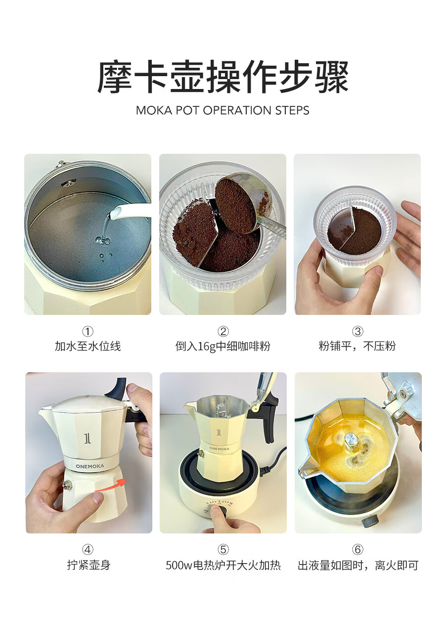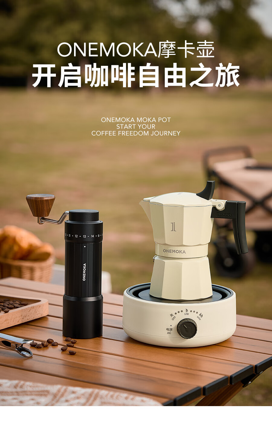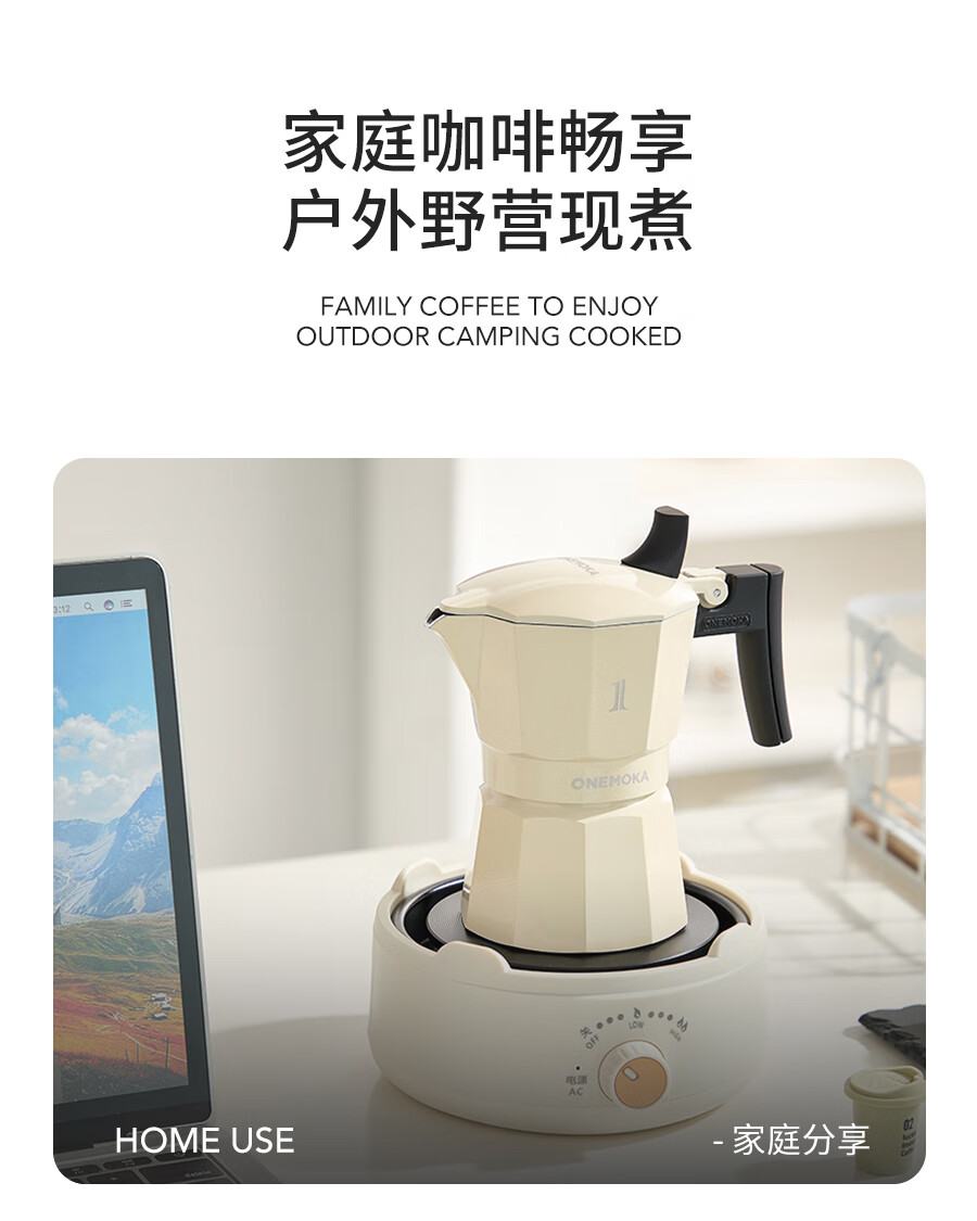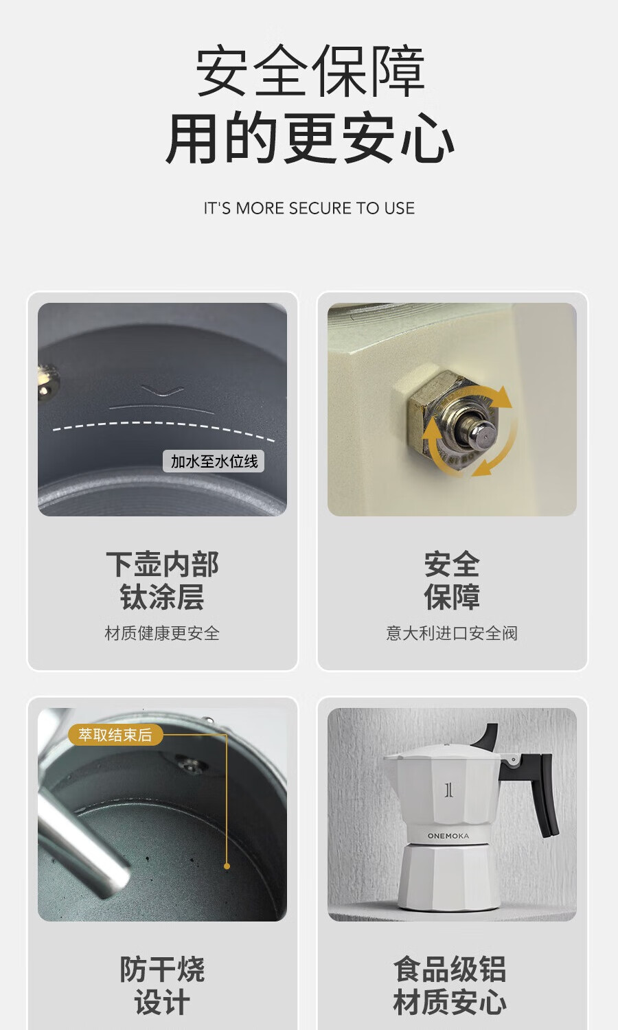 ONEMOKA a two-valve fourth-generation Moka pot with dense grease for home use for outdoor coffee making, Italian-style pot, supercharged white Moka pot single pot 90ml