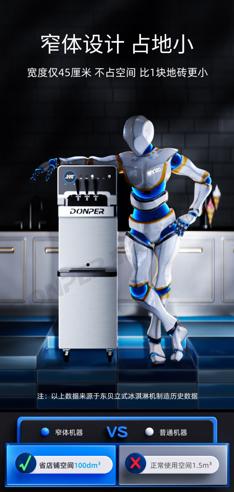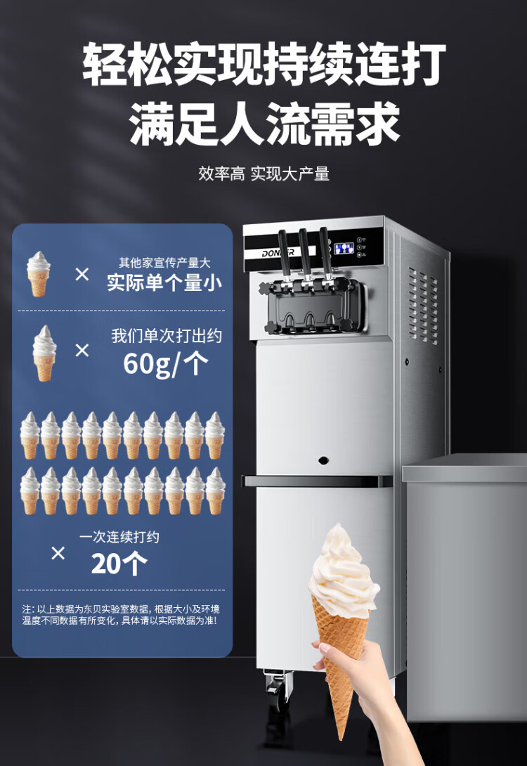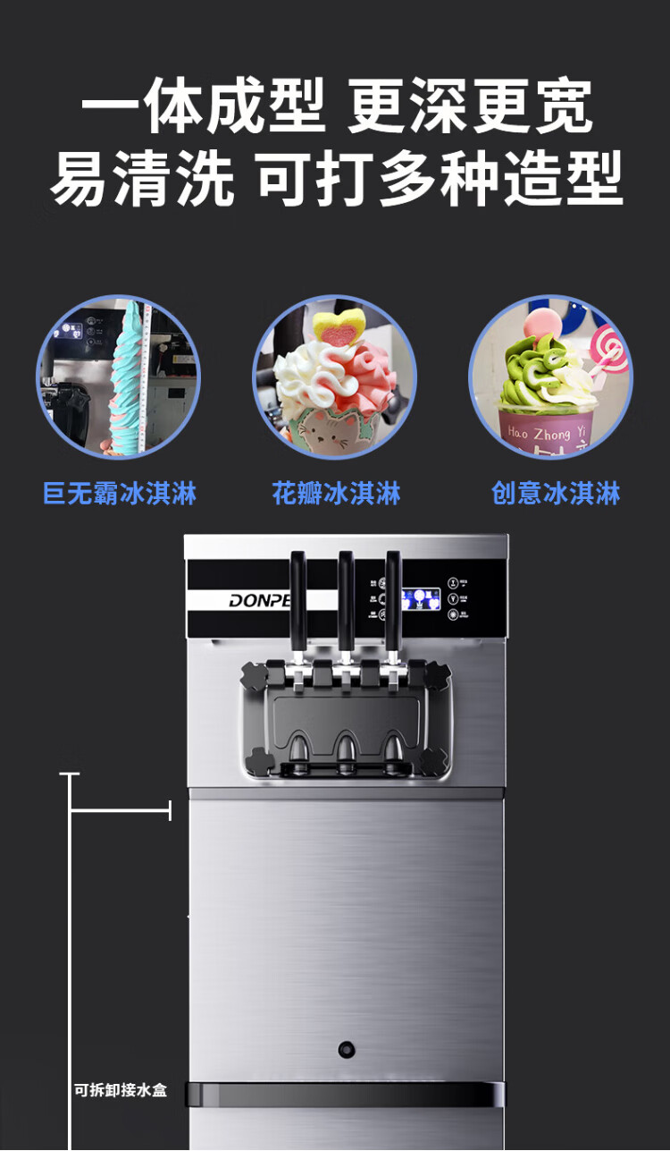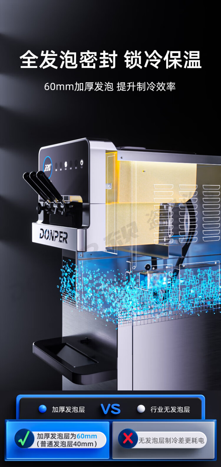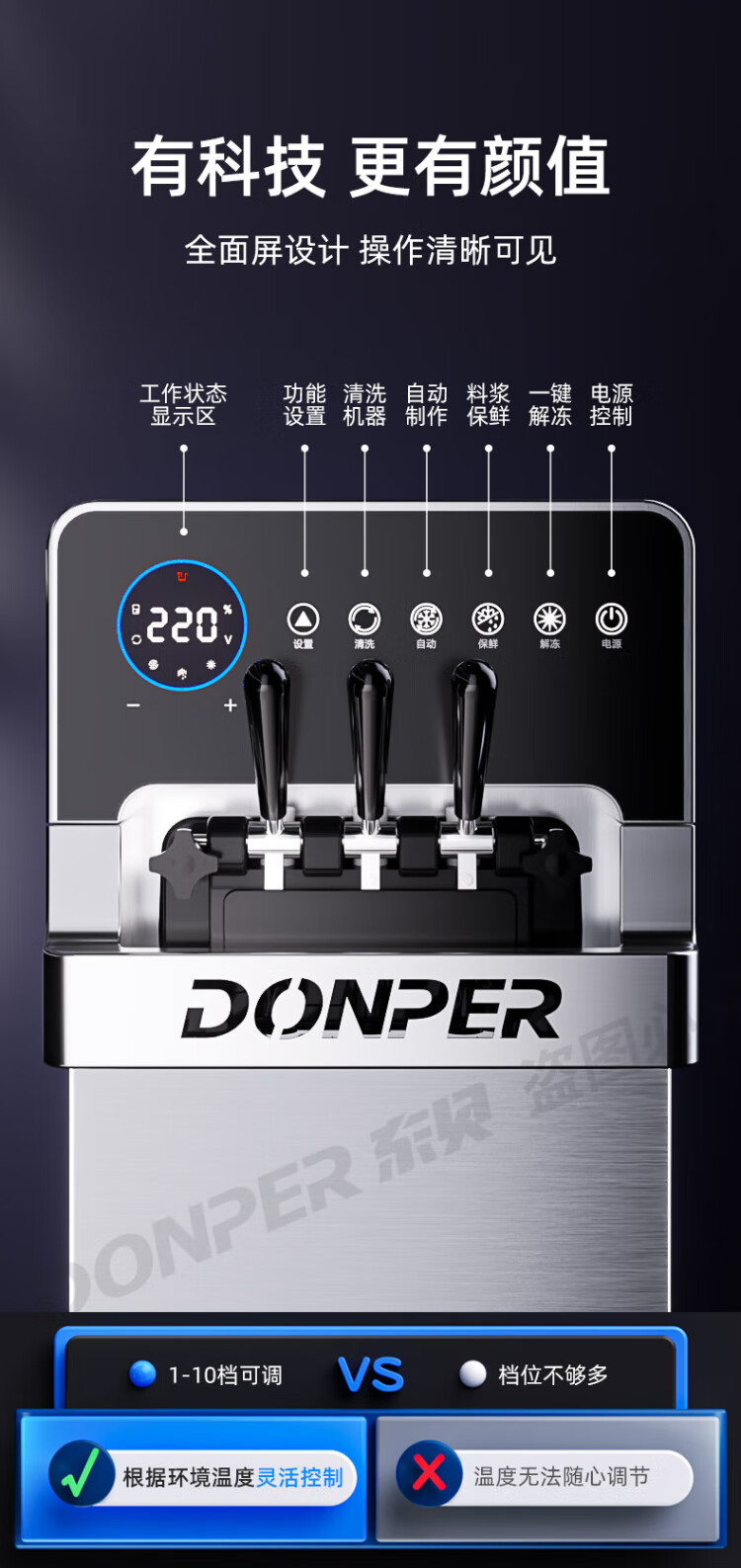 Donper Ice Cream Machine Commercial Vertical Soft Ice Cream Machine Three-head Ice Cream Machine Stall Fully Automatic Ice Cream Machine Mixue Cone Machine Milk Tea Shop Dessert Sundae 44L/H Large Production Dual System/Seven Days No-Clean/Lack of Material Alarm/400
