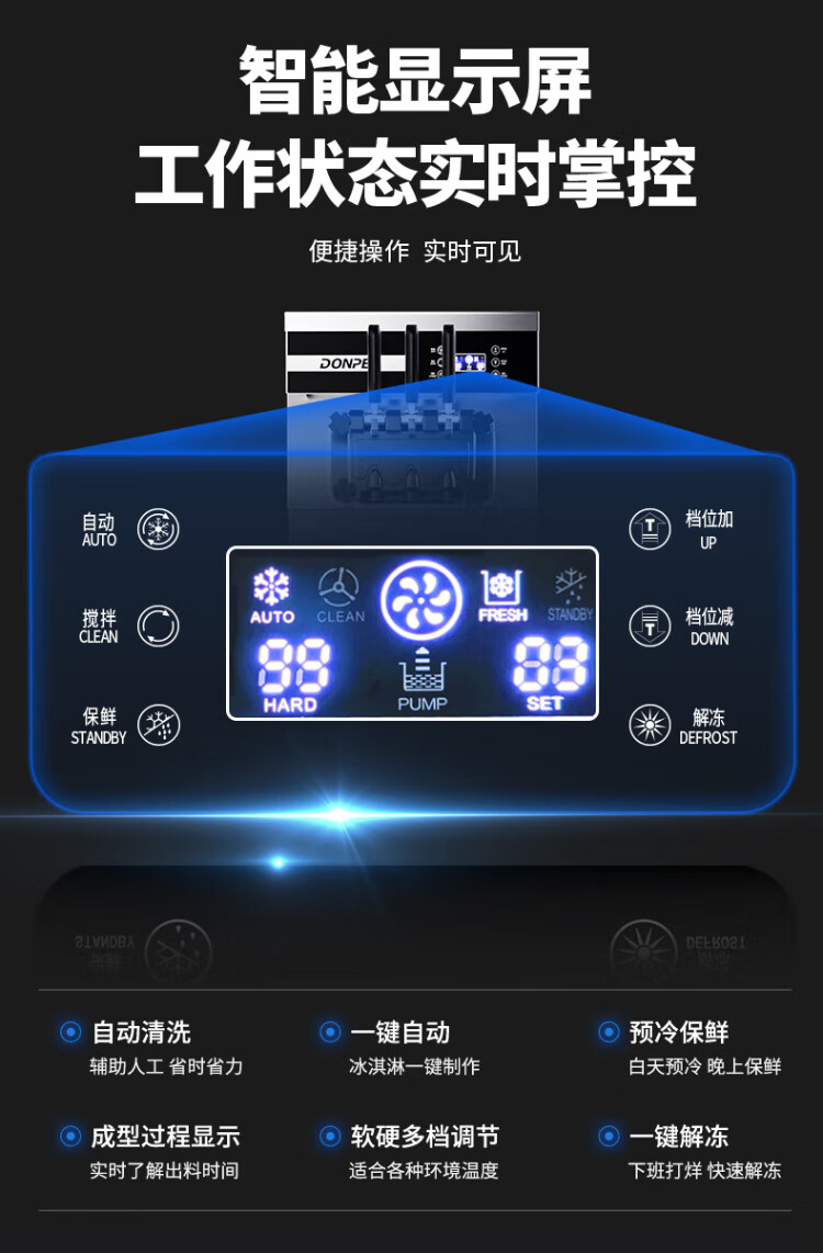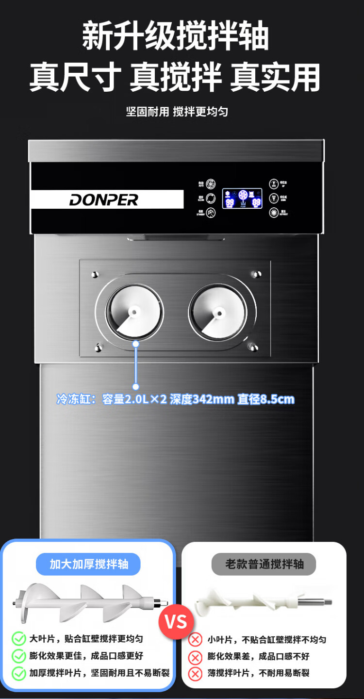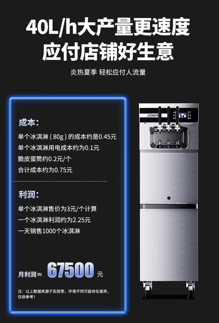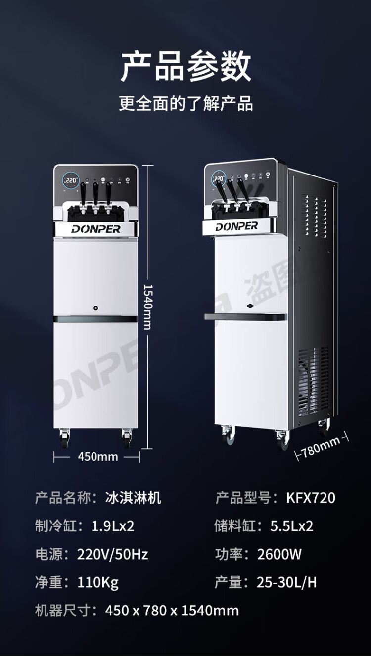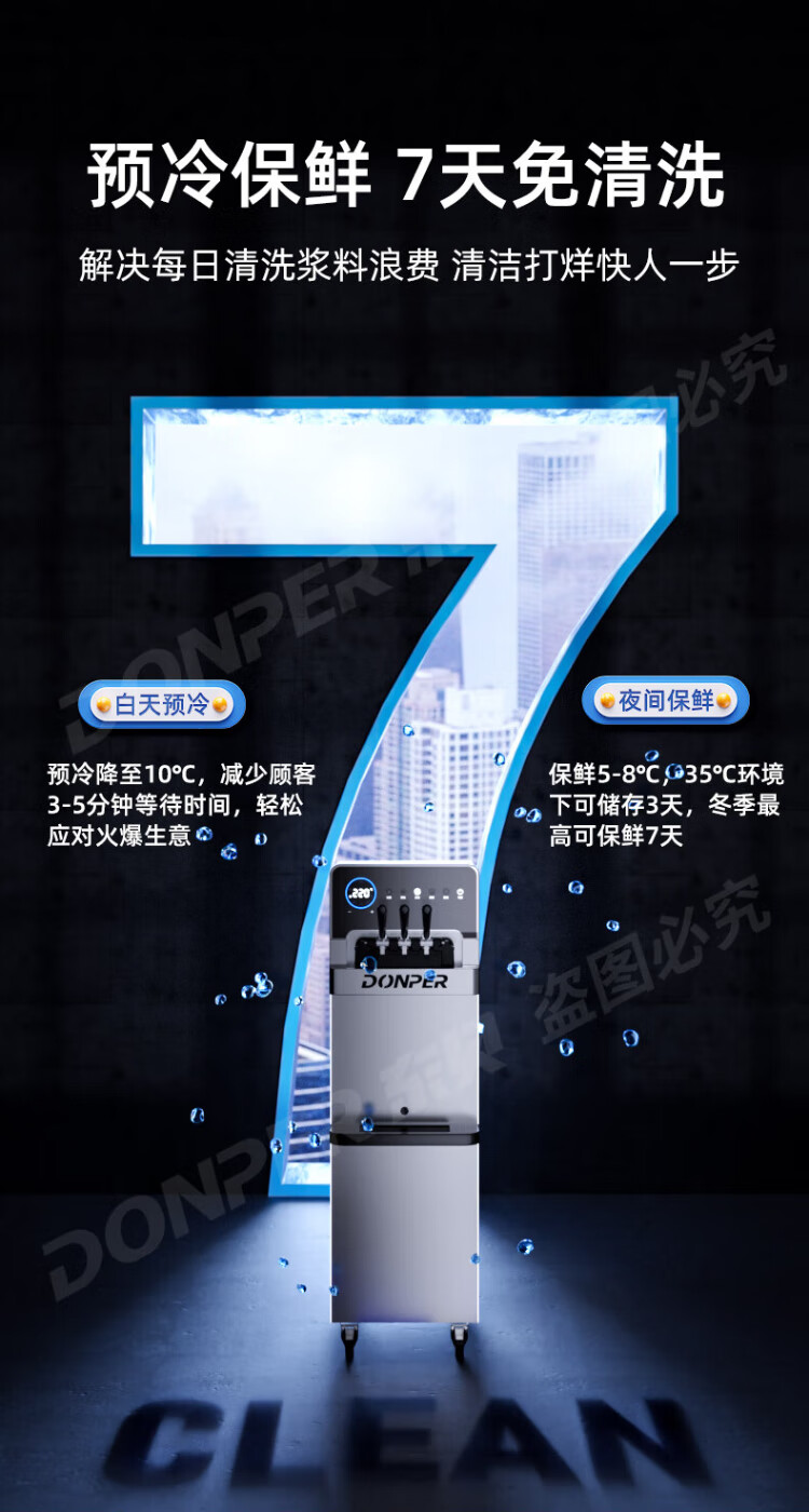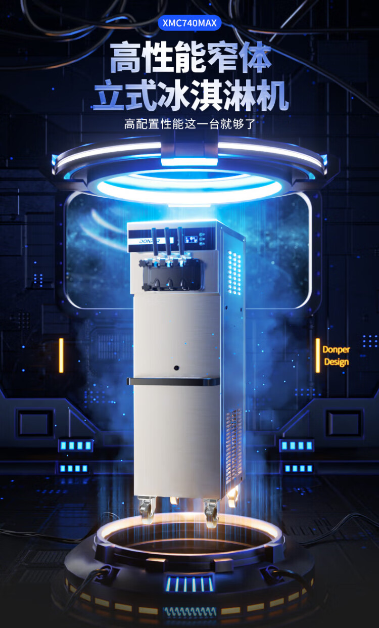 Donper Ice Cream Machine Commercial Vertical Soft Ice Cream Machine Three-head Ice Cream Machine Stall Fully Automatic Ice Cream Machine Mixue Cone Machine Milk Tea Shop Dessert Sundae 44L/H Large Production Dual System/Seven Days No-Clean/Lack of Material Alarm/400