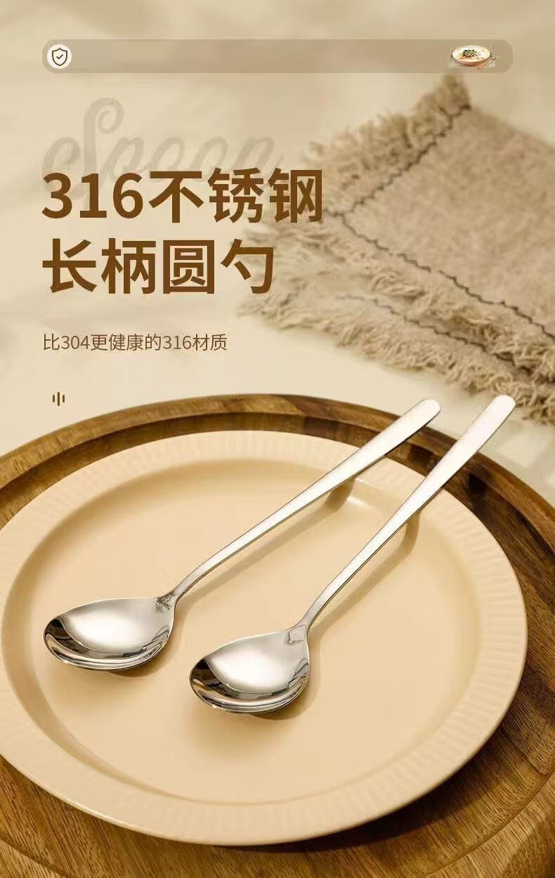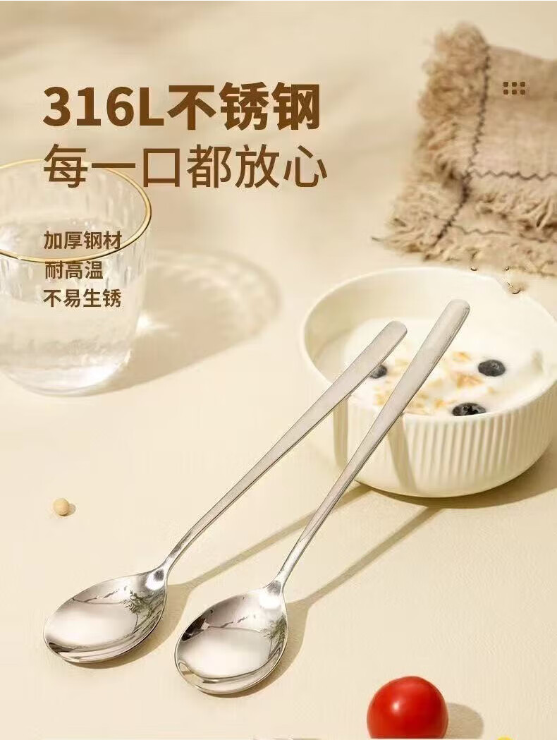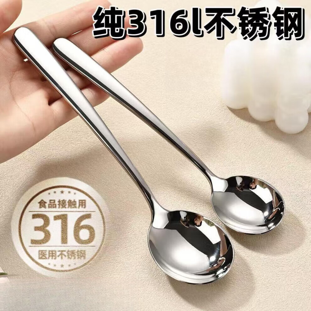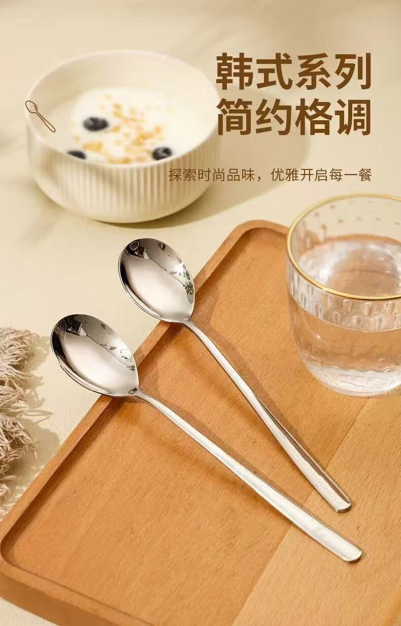 Bodenju 316 stainless steel spoon thick Korean style cute long handle spoon eating household tableware high-end spoon thick 316 stainless steel 316 extra thick material large size 4 pieces