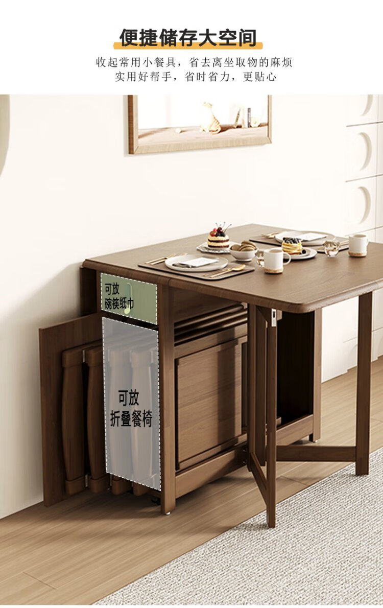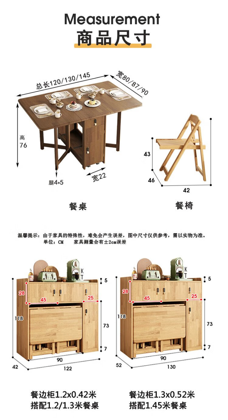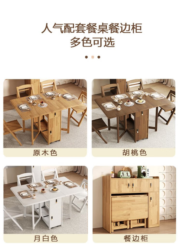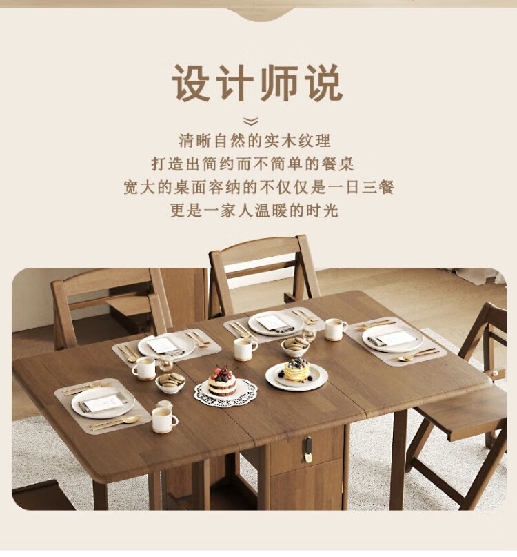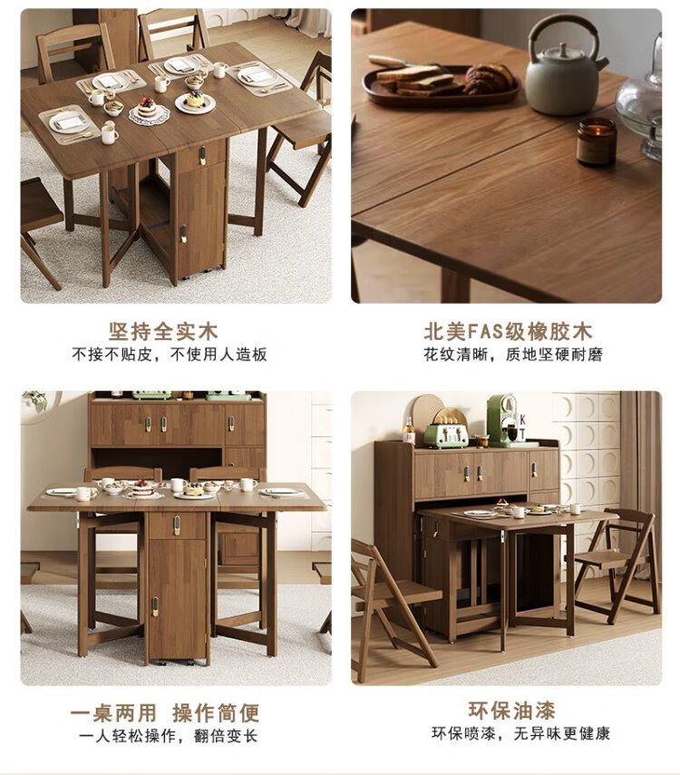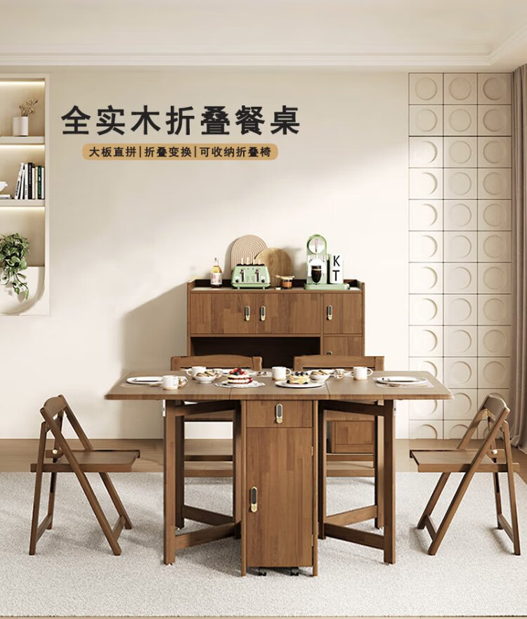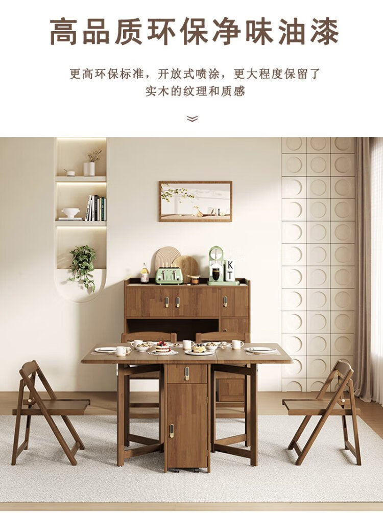 Foldable dining table modern minimalist home dining table Nordic all solid wood dining table folding dining table small apartment chair combination 1.45 meters solid wood dining table + sideboard + 4 chairs