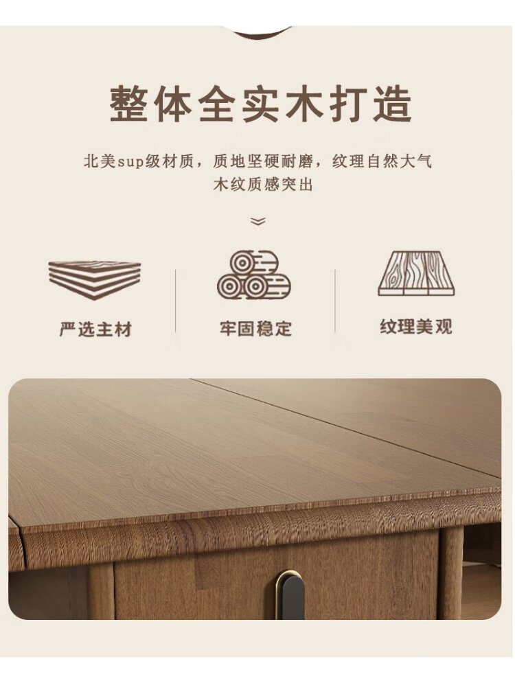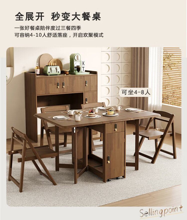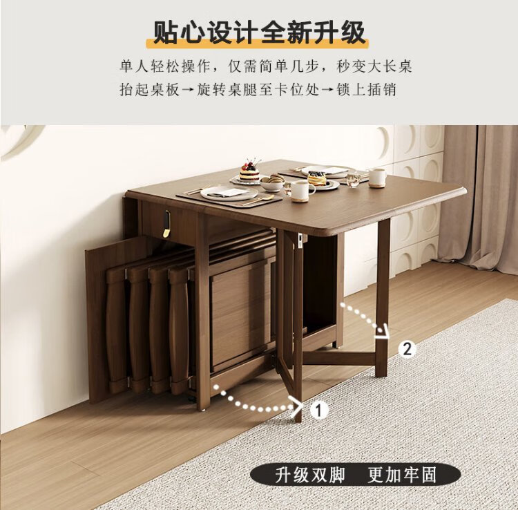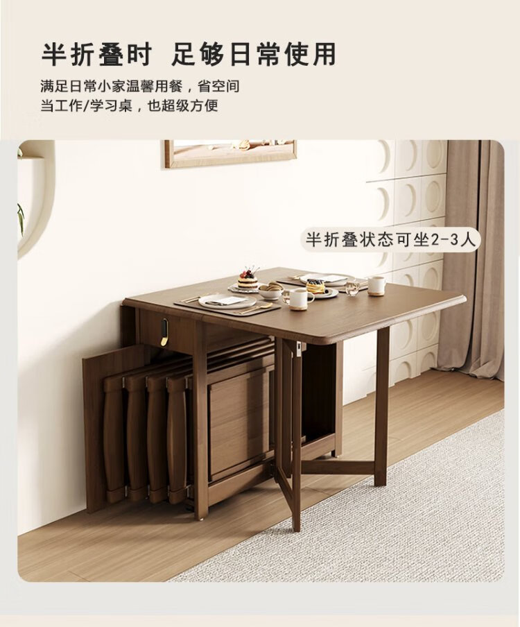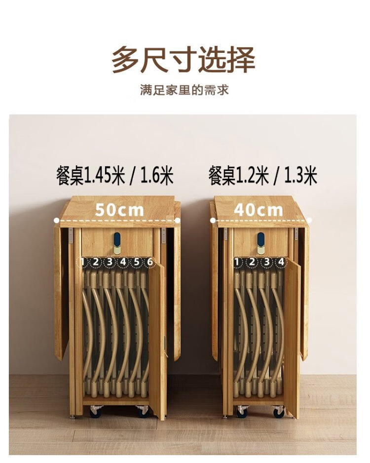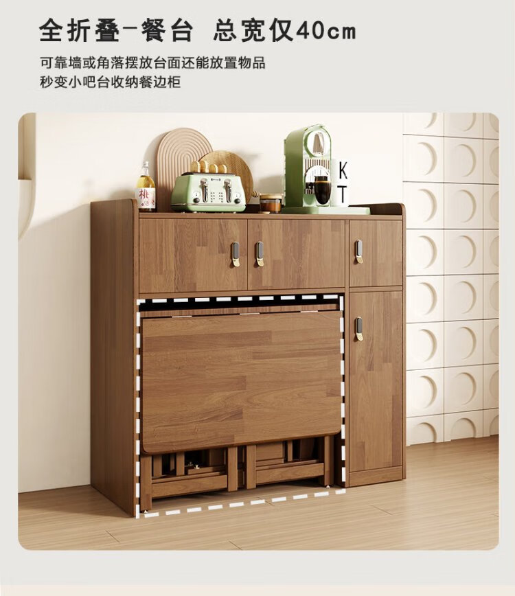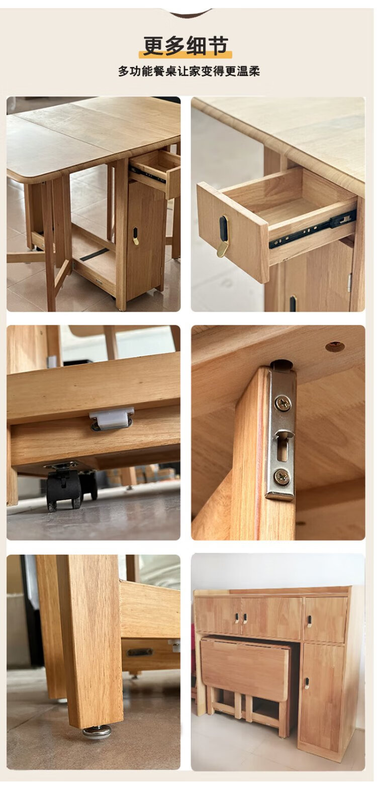 Foldable dining table modern minimalist home dining table Nordic all solid wood dining table folding dining table small apartment chair combination 1.45 meters solid wood dining table + sideboard + 4 chairs