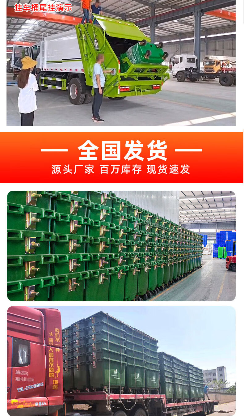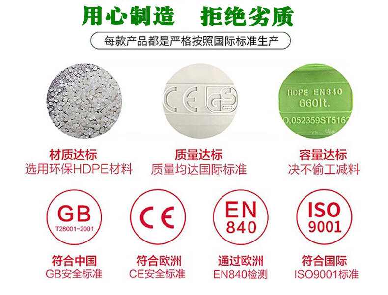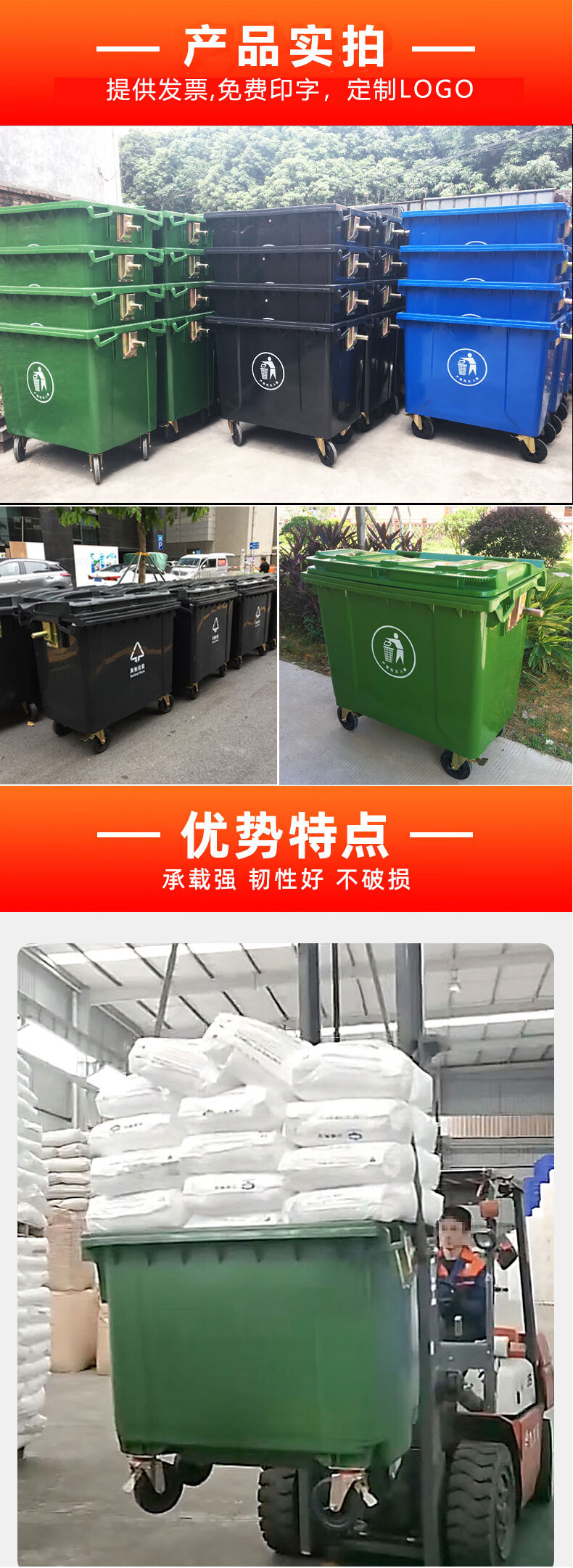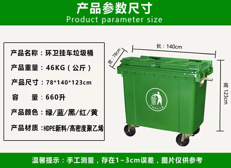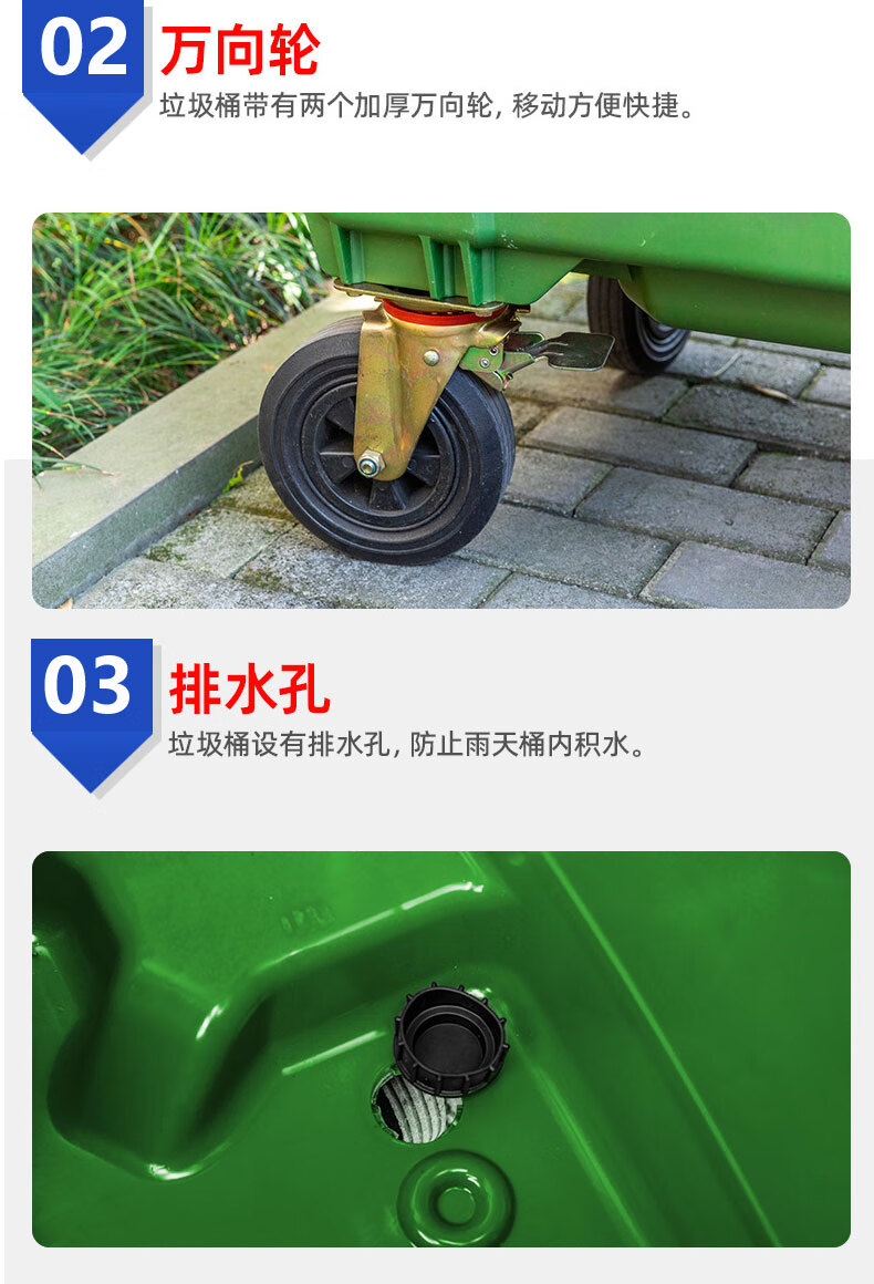 Thickened outdoor large wheeled sanitation trash can 660 liters L large municipal trailer trash can plastic garbage truck 660 liters special solid type - green wheeled and covered