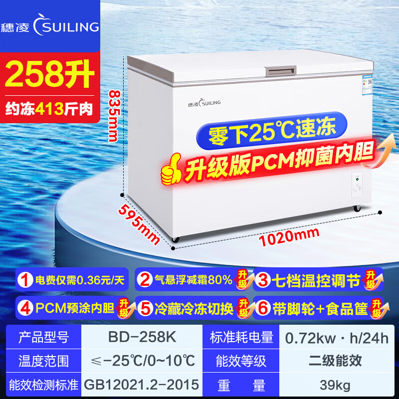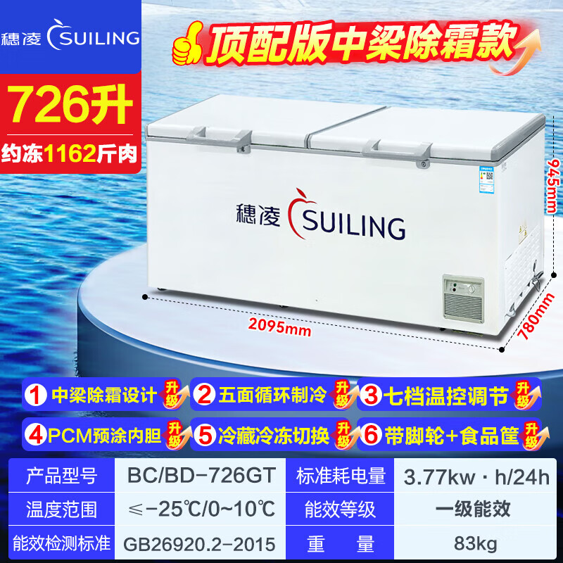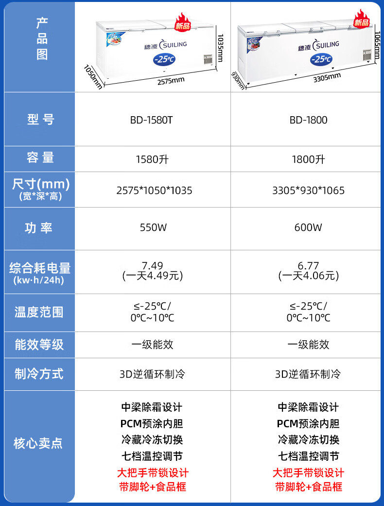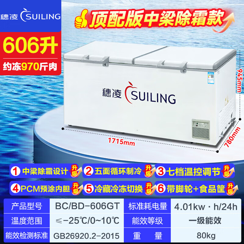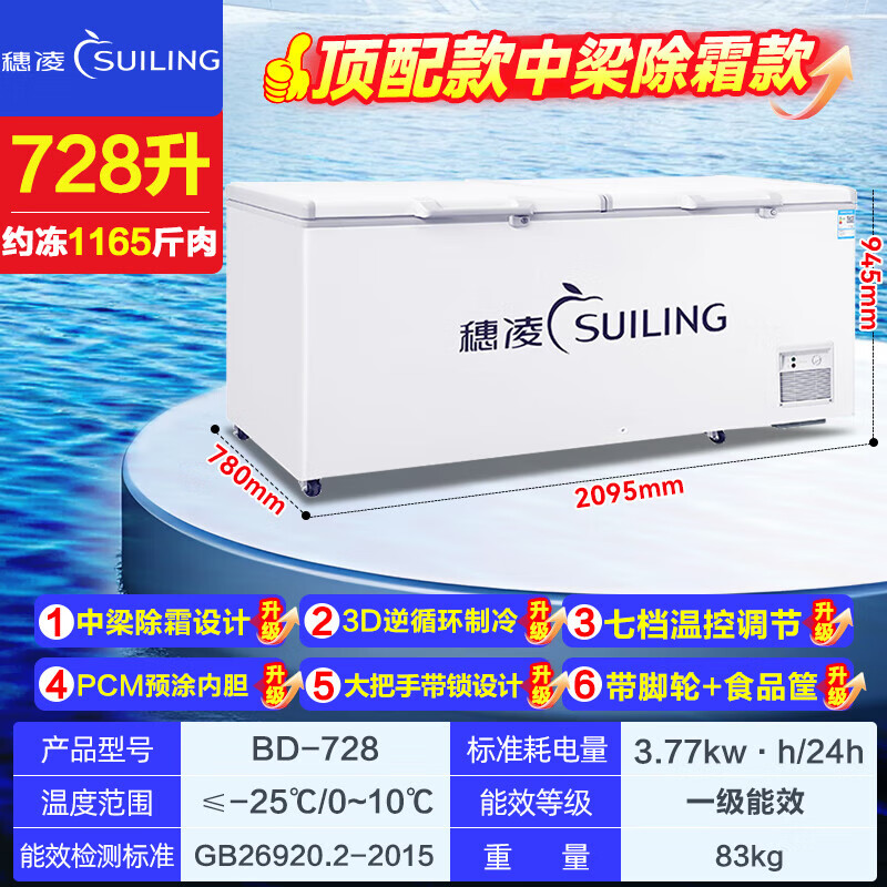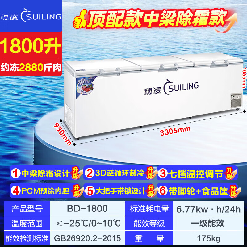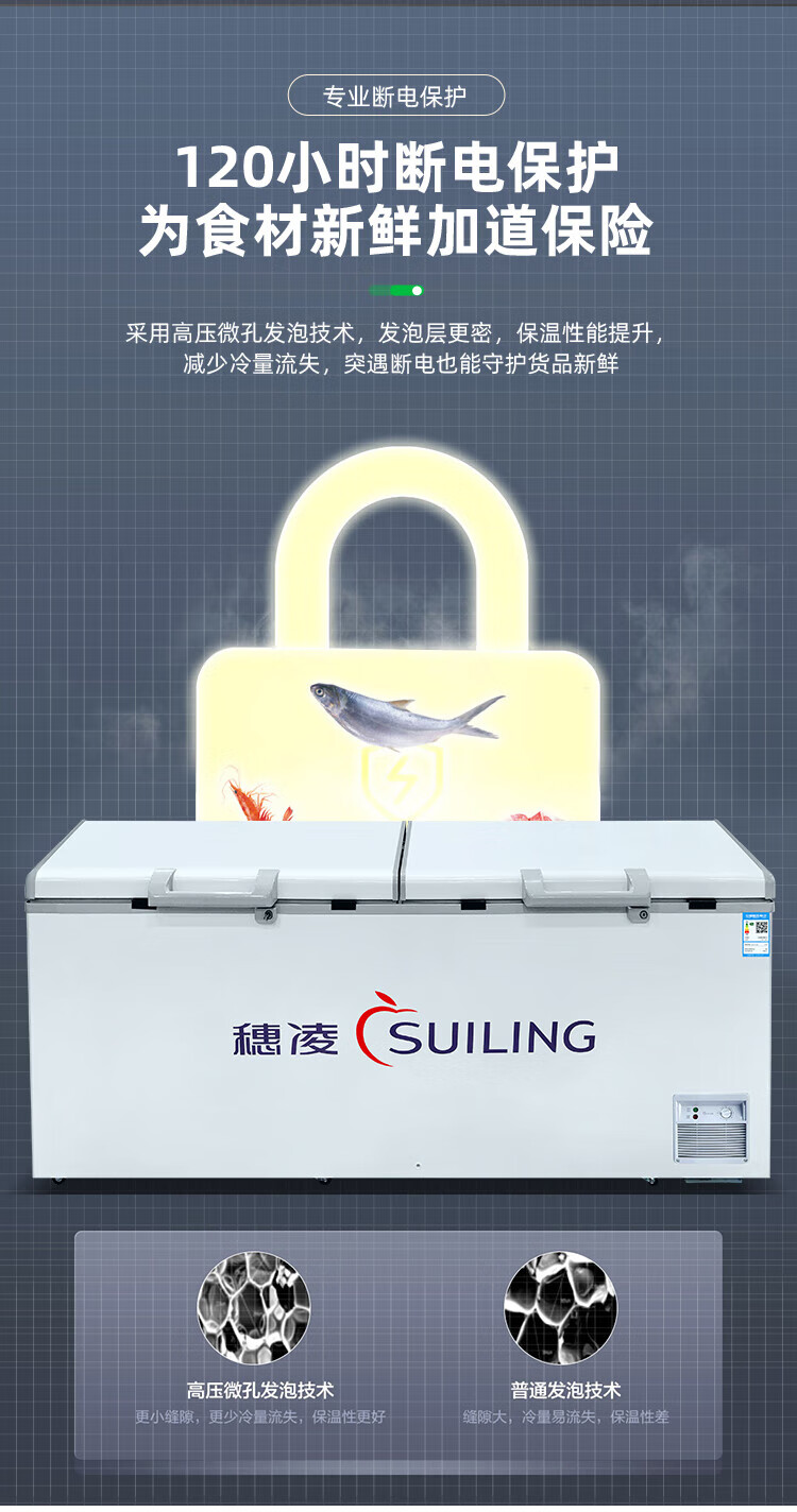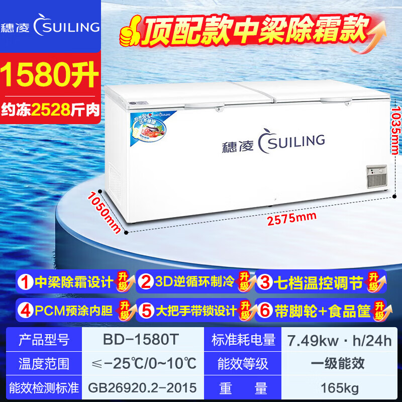 Suiling (SUILING) Freezer 500 liters or more large capacity commercial freezer horizontal single temperature refrigeration and freezing conversion cabinet large deep-freezing freezer seafood cabinet tea cabinet 580 liters long 1.71 meters | low temperature -25 | energy saving