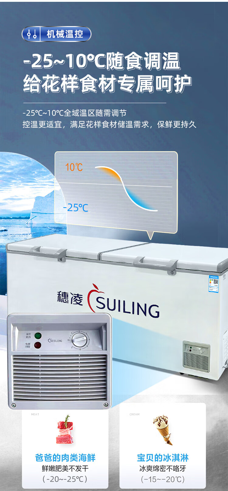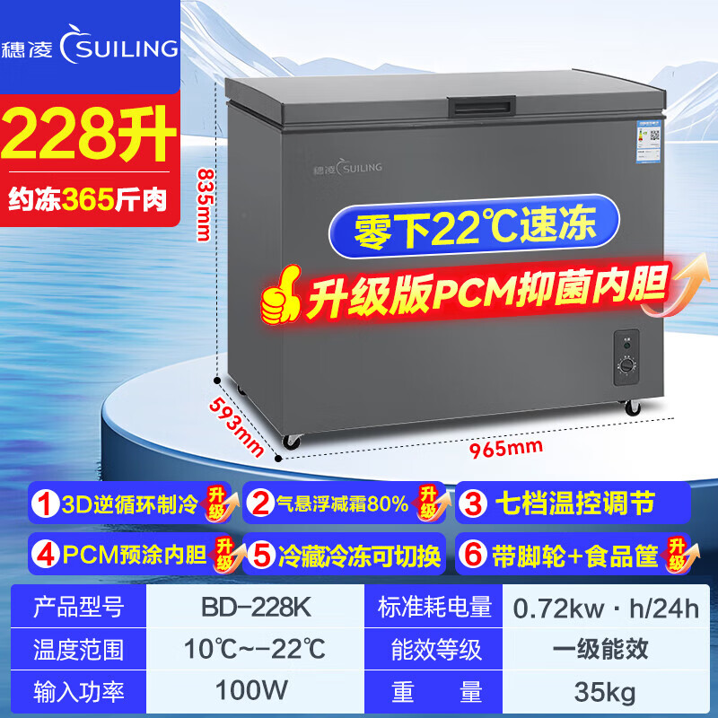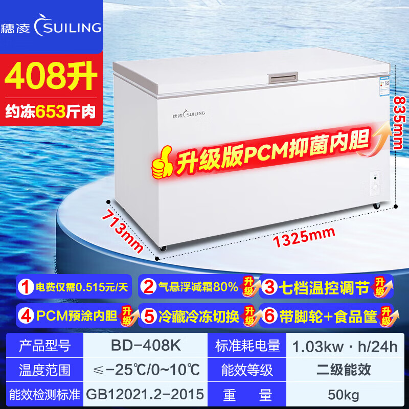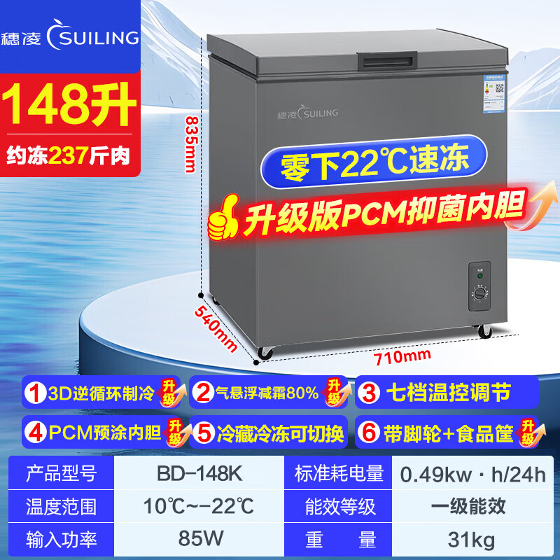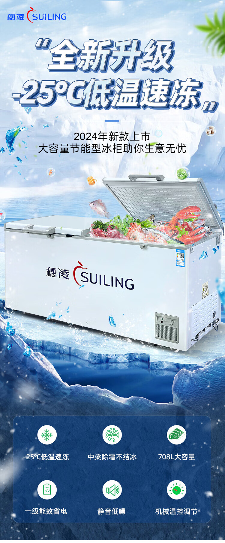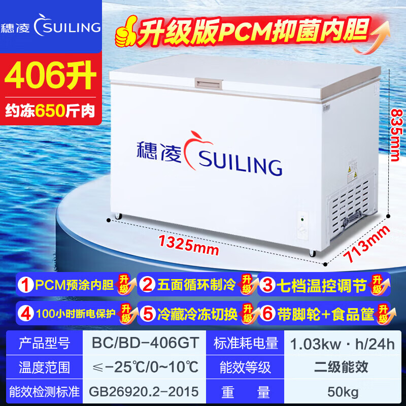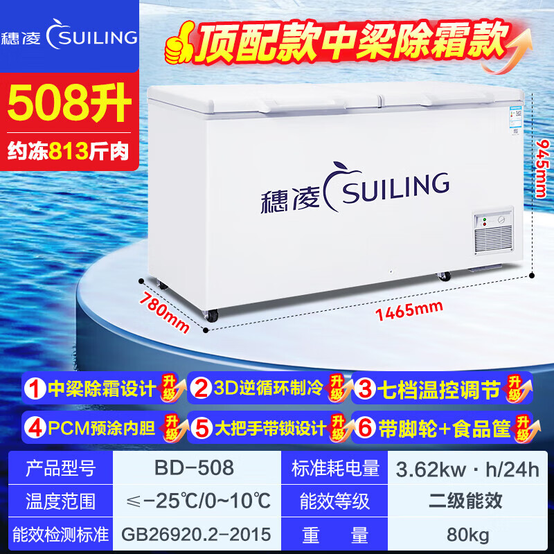 Suiling (SUILING) Freezer 500 liters or more large capacity commercial freezer horizontal single temperature refrigeration and freezing conversion cabinet large deep-freezing freezer seafood cabinet tea cabinet 580 liters long 1.71 meters | low temperature -25 | energy saving