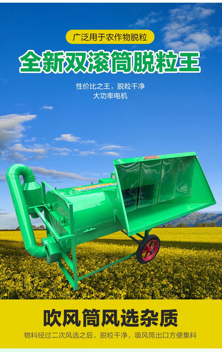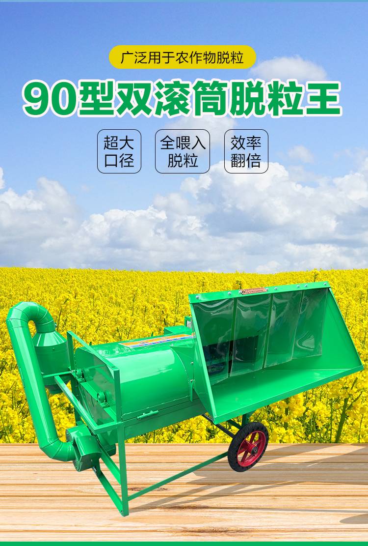 Ni Zhier customized 2025 new thresher double drum agricultural thresher soybean rape wheat sorghum rice small thresher 90 type double drum thresher + without power