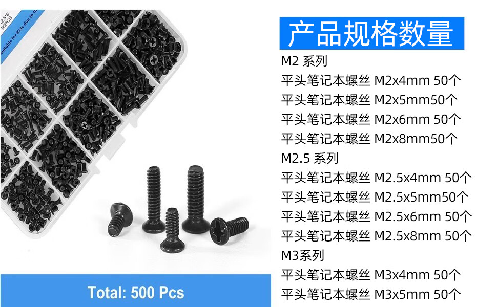 JAENS is suitable for Lenovo Dell HP Asus Acer Shenzhou laptop repair screws motherboard hard drive small screws 10 specifications about 500 pieces in box