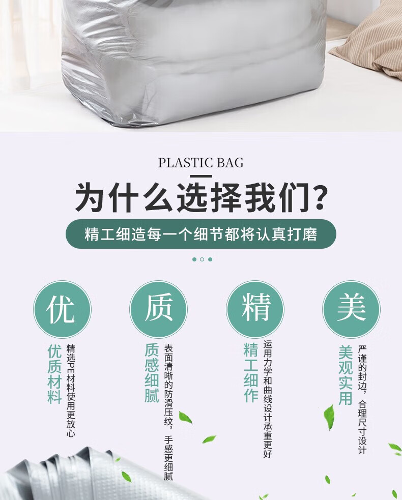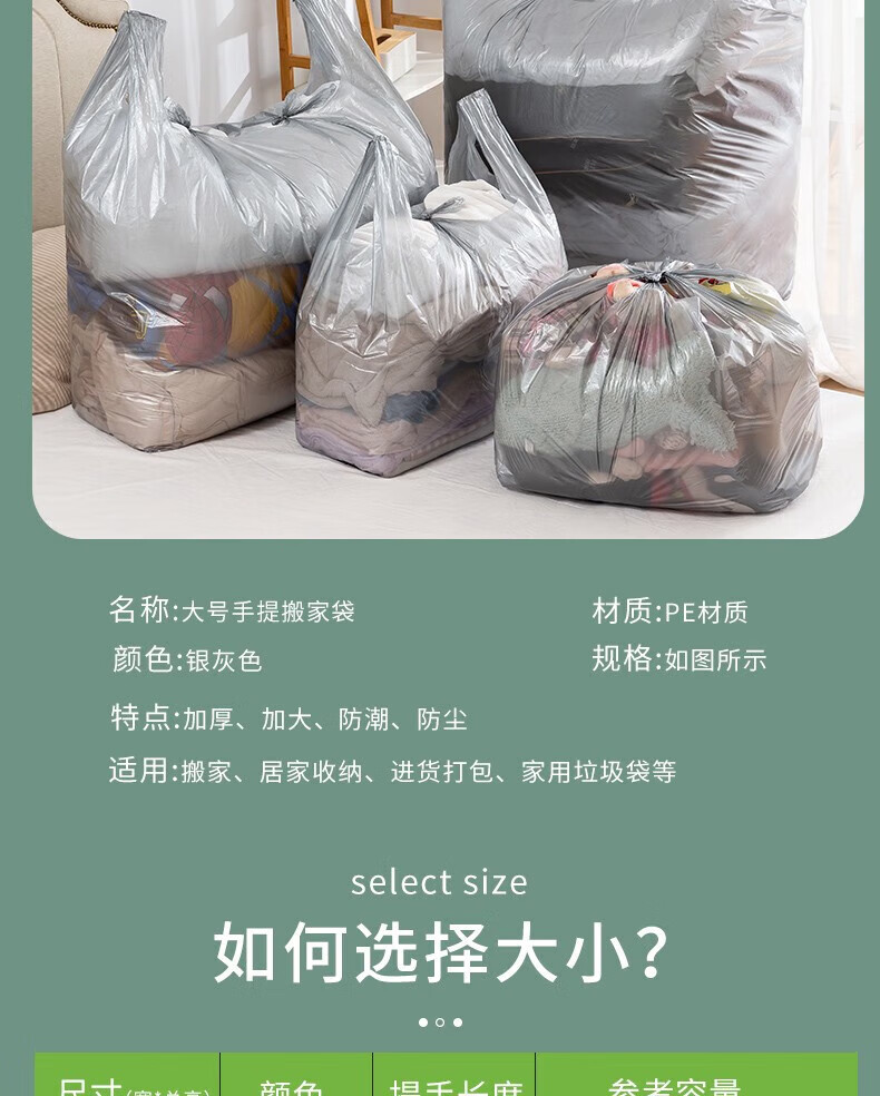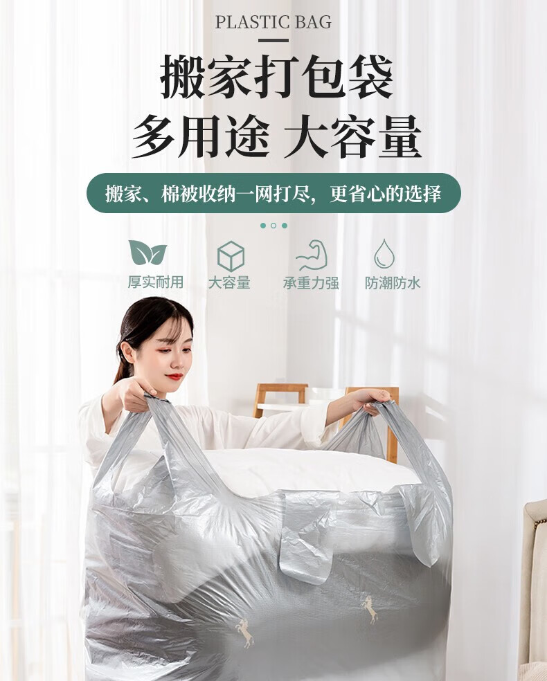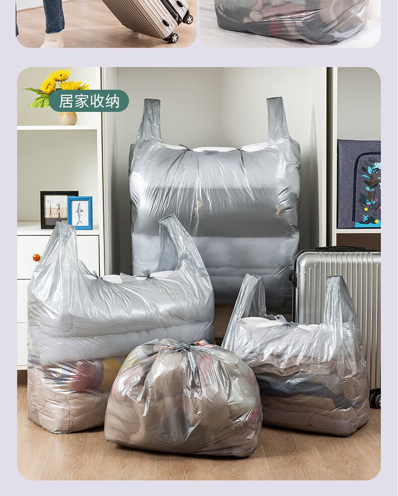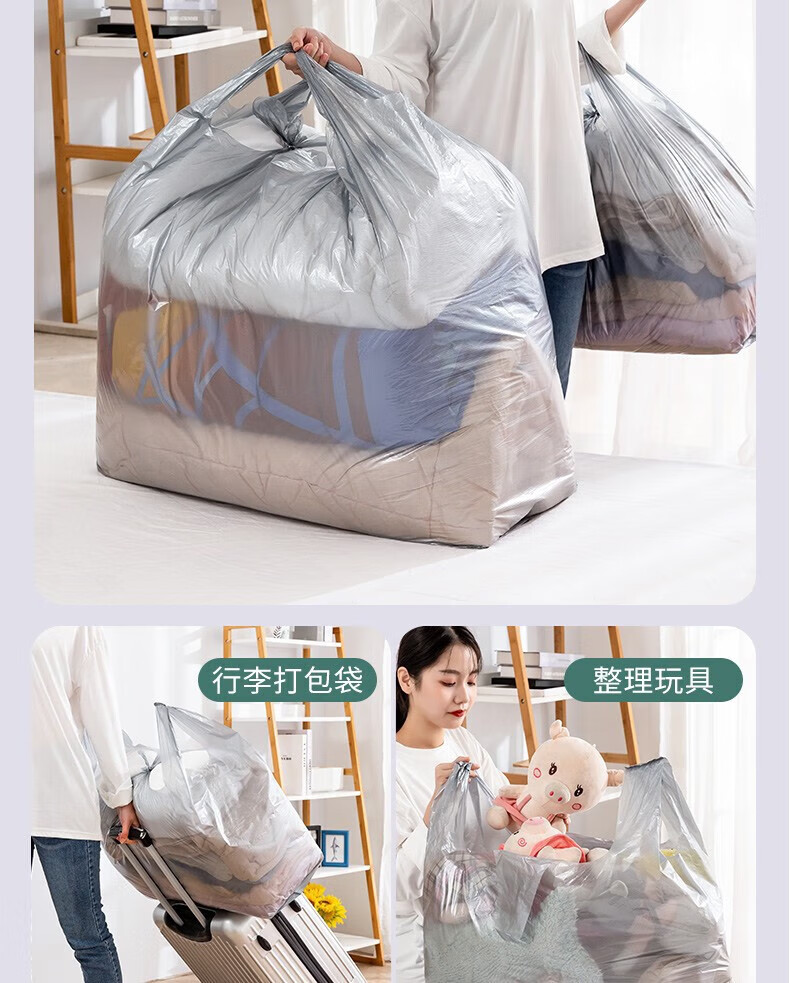 War rudder extra large plastic bag silver gray vest thickened quilt storage bag commercial portable dustproof moving packing bag packing bag silver thickened 65*0.1*77cm 20 pieces, large size 10 pieces + medium size 10 pieces 20