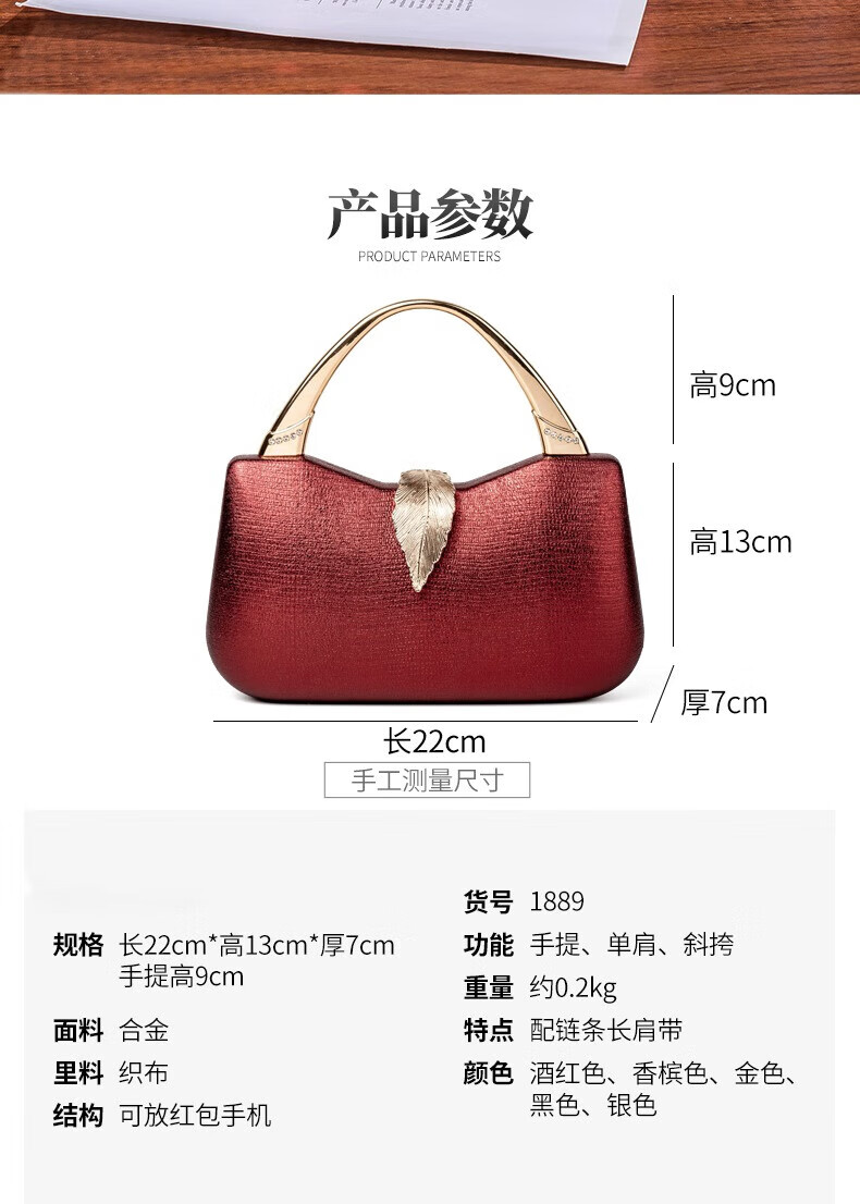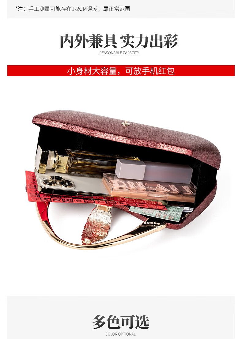 Kangaroo luxury fashionable temperament large-capacity banquet bag to send red envelopes to mobile phone celebrity dress cheongsam bag red champagne color-large capacity to send red envelopes to mobile phone