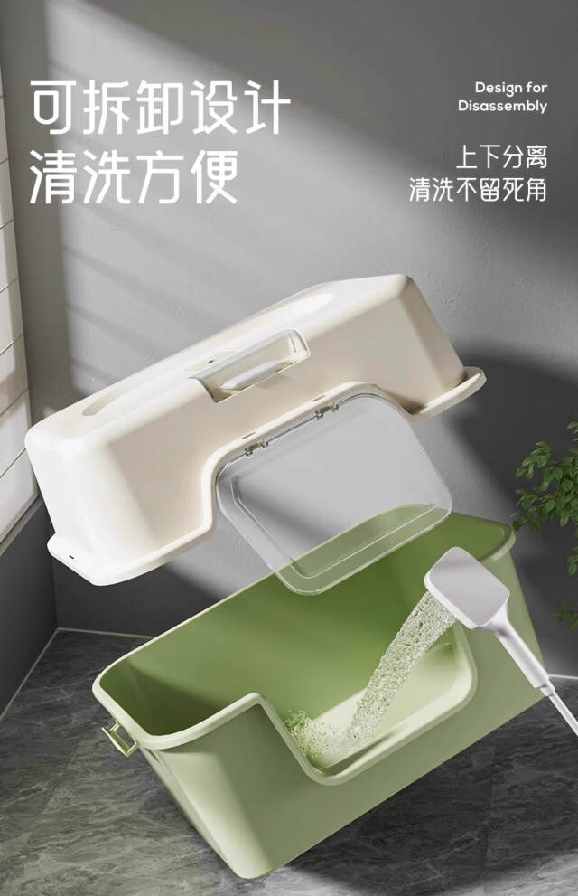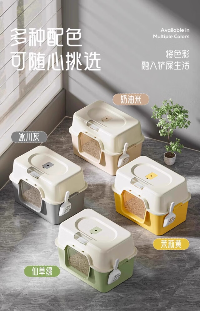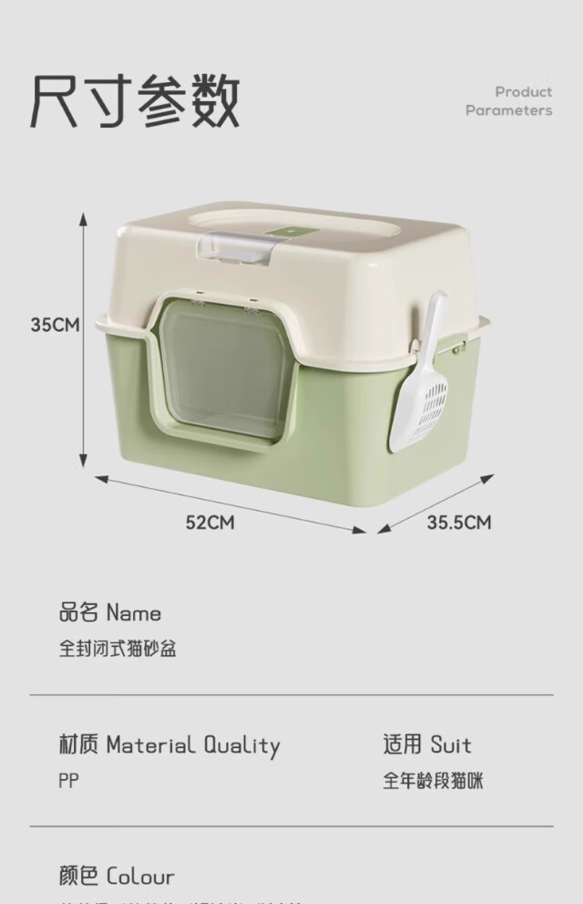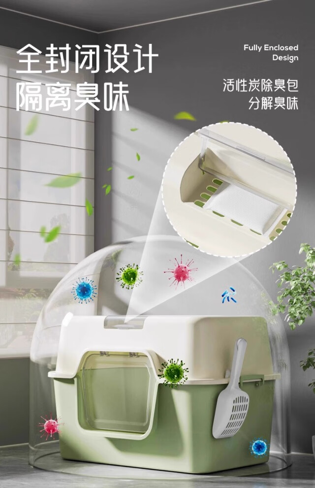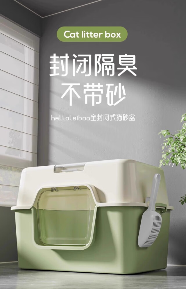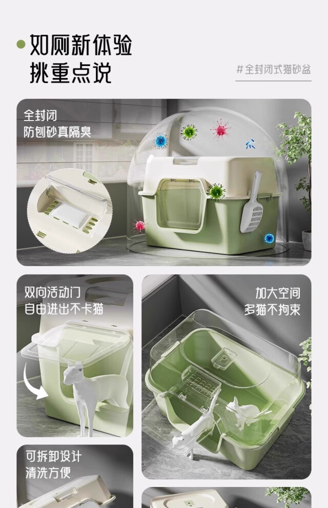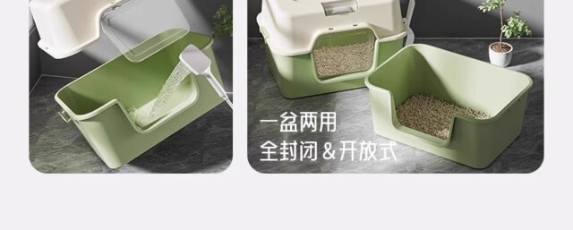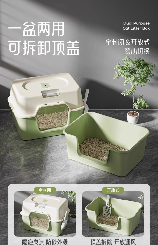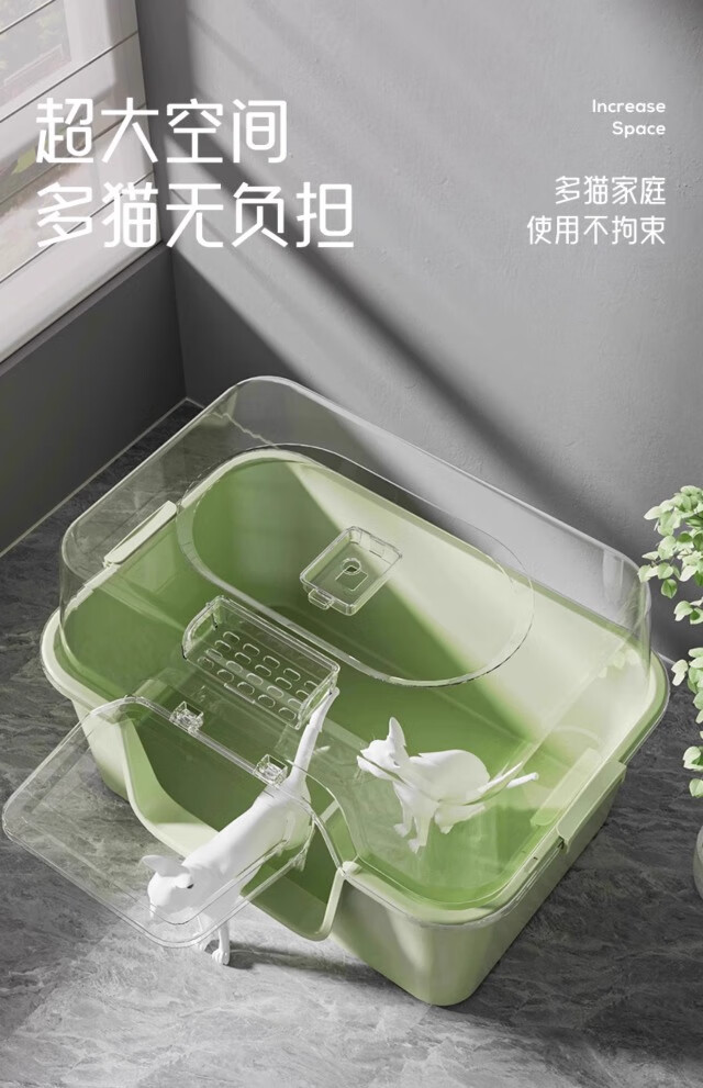 Extra large cat litter box, fully enclosed anti-splash cat toilet deodorant tablets, anti-sand cat litter box pet supplies, green, next day delivery from Beijing warehouse, open/closed dual use, free cat litter scoop + deodorizing bag, no mat