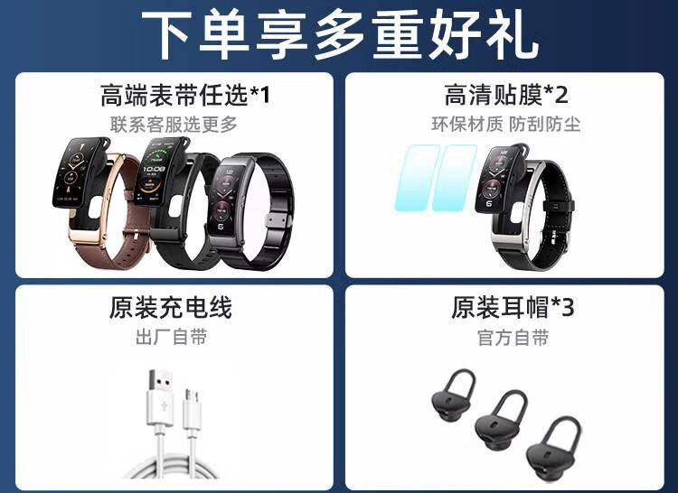 Huawei Annual Meeting Gifts Huawei Band B7 Smart Call Sports Watch Adult Bluetooth Headset Two-in-One Blood Oxygen Heart Rate Sleep B6 Waterproof Smart Car Mount for Men and Women Dual Watch Straps Obsidian Black + Silent Blue Crocodile Belt