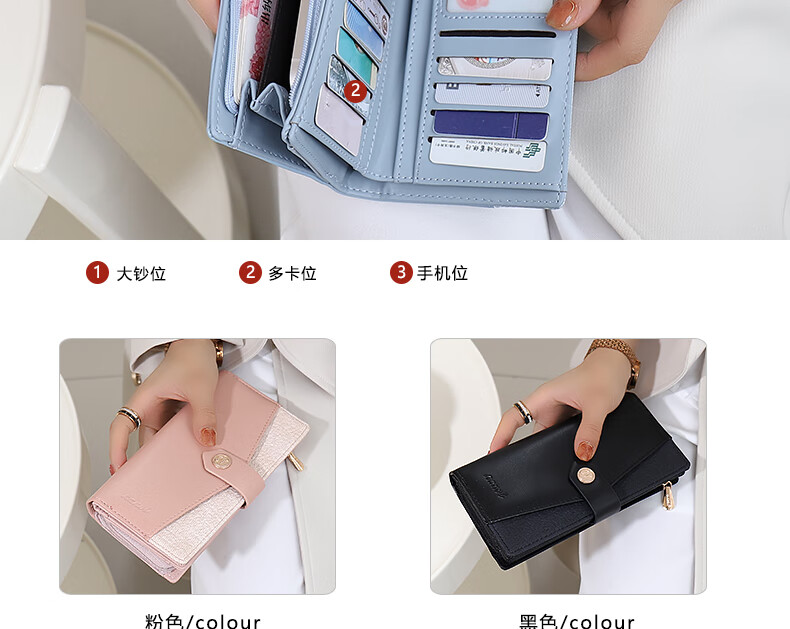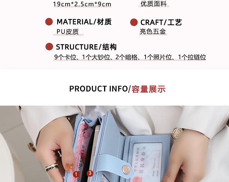 Kangaroo luxury wallet for women 2025 Chinese Valentine's Day niche design large capacity long wallet women's card holder wallet two-in-one pink