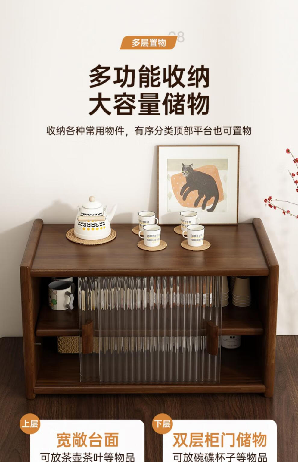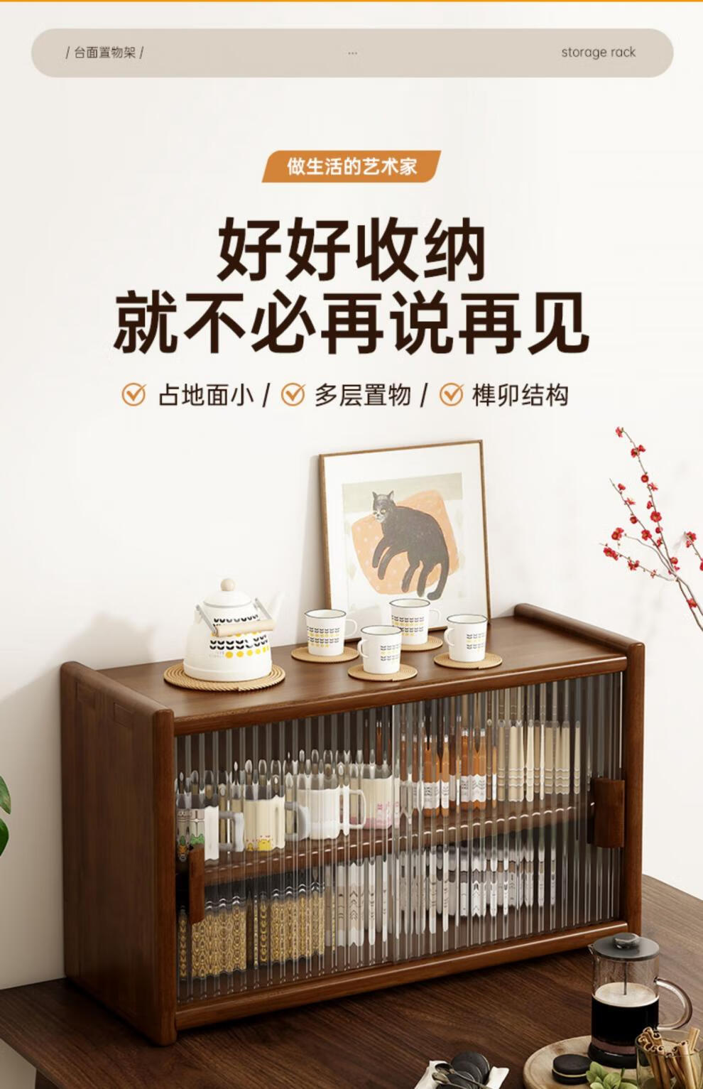 Fat Donglai same style solid wood cup tea set storage dining table counter top coffee cup holder dining table water cup tea cup holder imported pine wood 45cm log color. Changhong glass