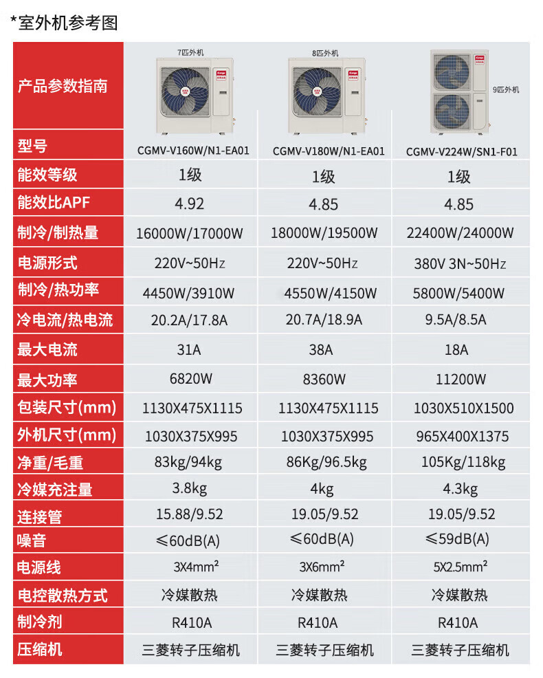 Chigo central air conditioning duct machine 4 hp 5 hp 6p7/9 hp multi-connected full DC variable frequency heating and cooling home commercial one to two three four five six seven self cleaning with WIFI 4 HP first class energy efficiency one to three Mitsubishi compressor consultation for more discounts