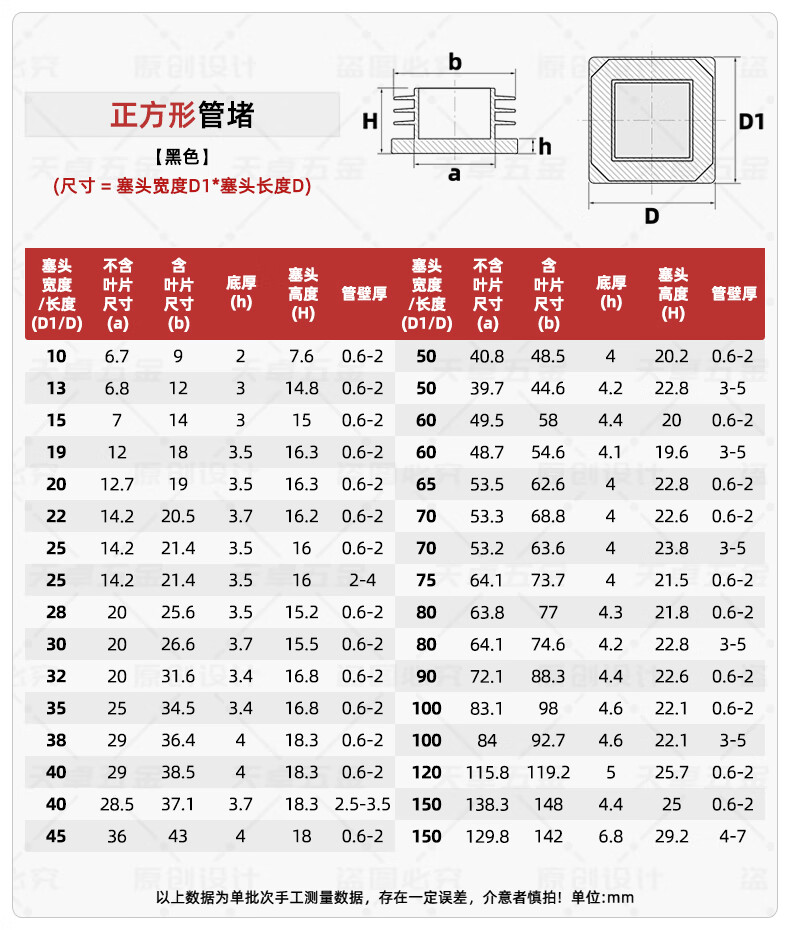 Tianzhuo Hardware Square Tube Plug Head Plastic Plug Cap Square Steel Plug Head Square Tube Sealing Cap Plug Cap Plug Pipe Plug Anti-slip Feet 25*25 Black 20 pcs