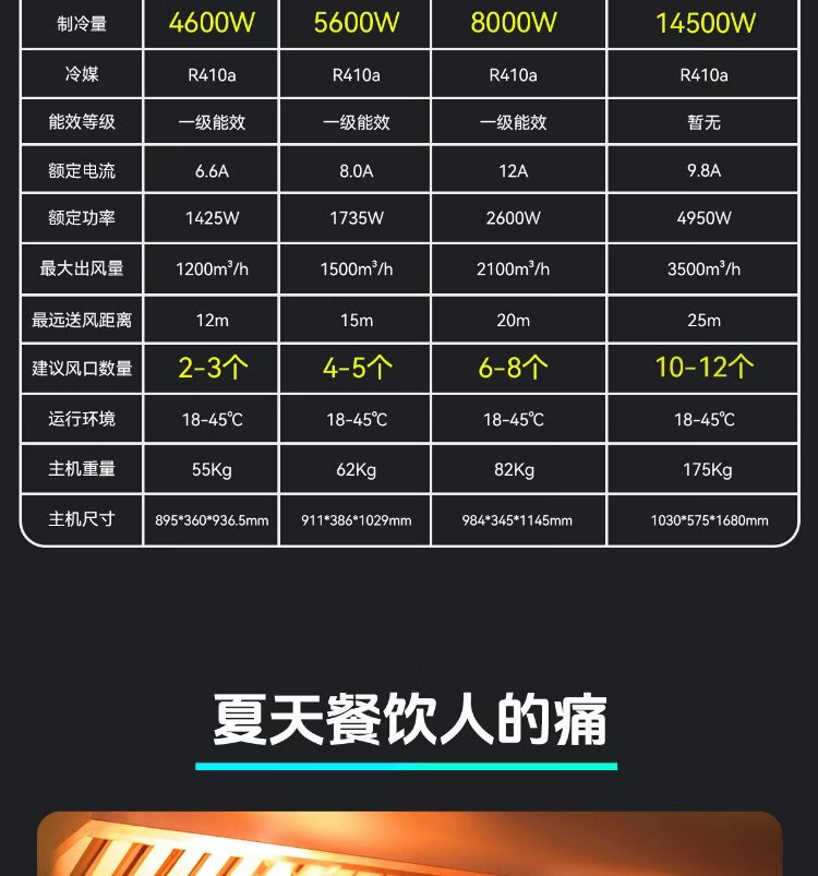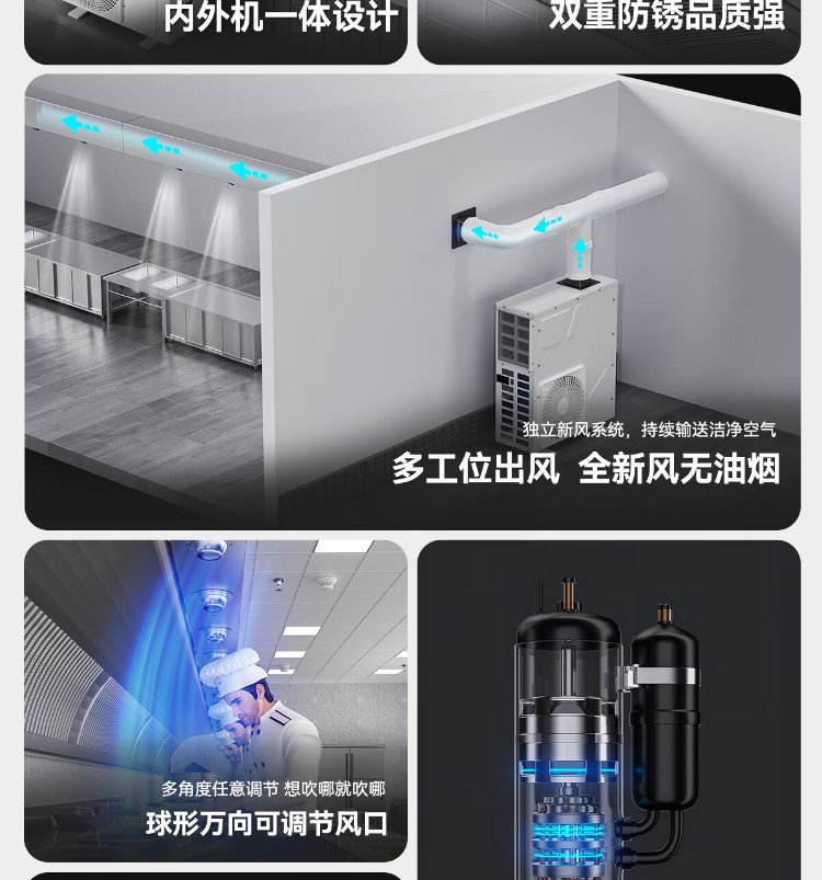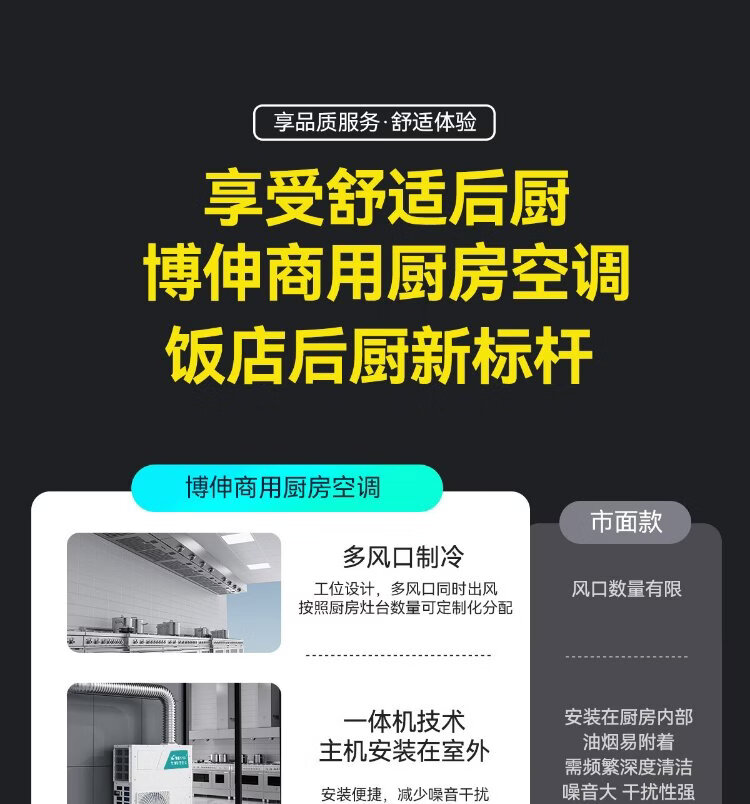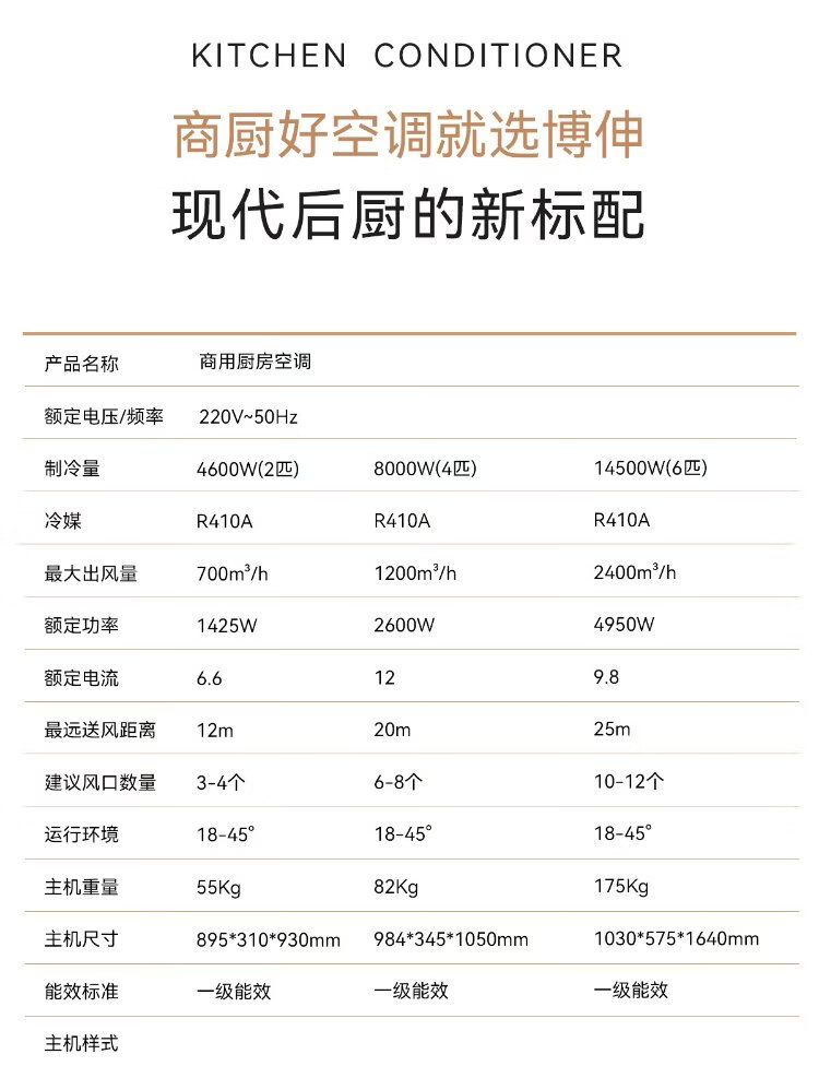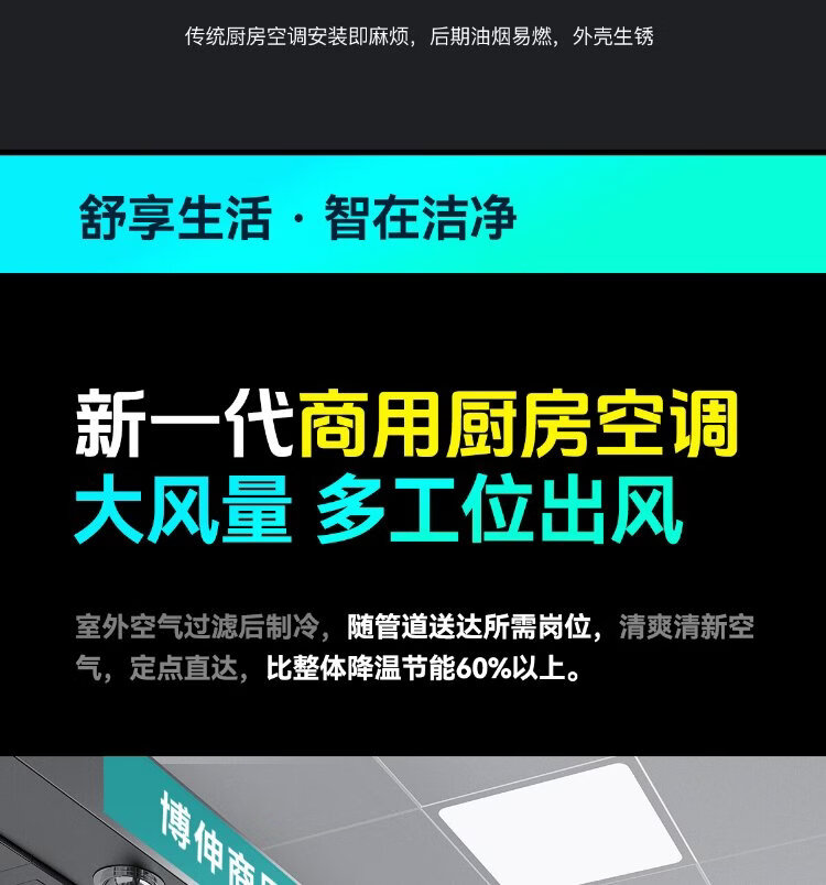 Booshen Commercial Kitchen Air Conditioning Refrigerator Hotel Kitchen Canteen Hotel Air Cooler Large Cooling Capacity Strong Cooling Anti-Oil Smoke 4 HP First Class Energy Efficiency 8 Holes