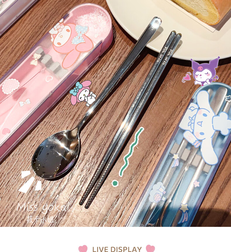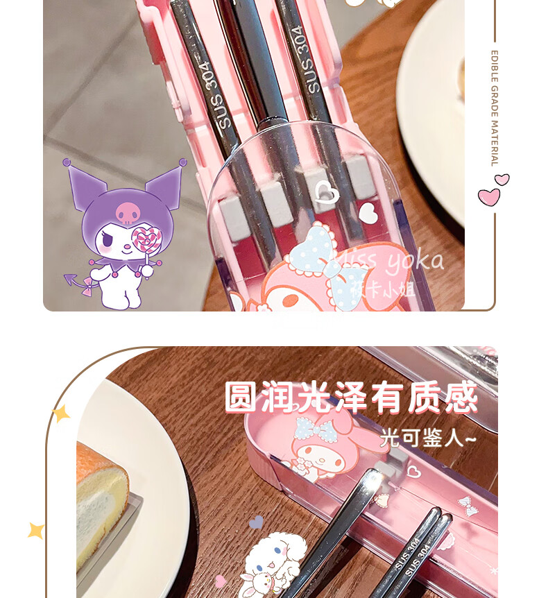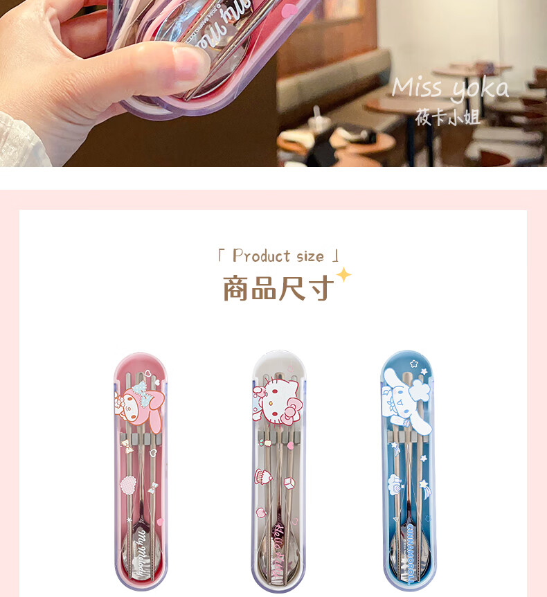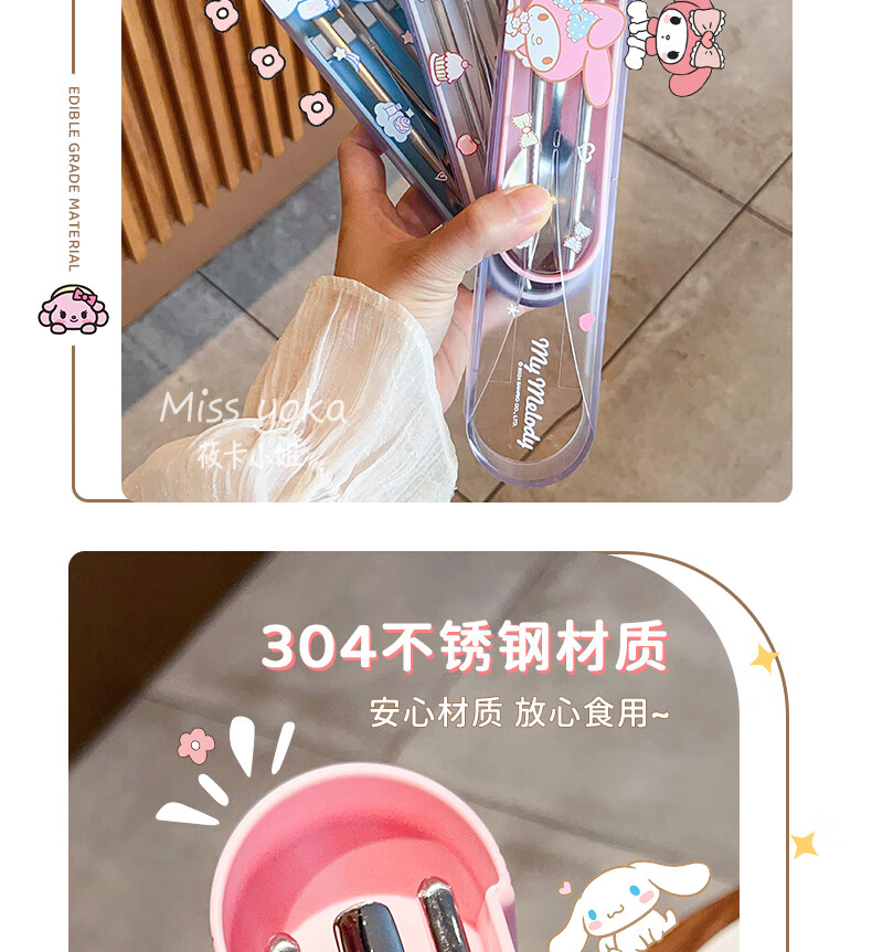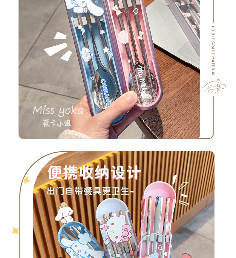 Miss Yoka Sanrio spoon and chopstick set household cute children's stainless steel portable tableware office worker student storage box big-eared dog stainless steel portable chopsticks and spoons