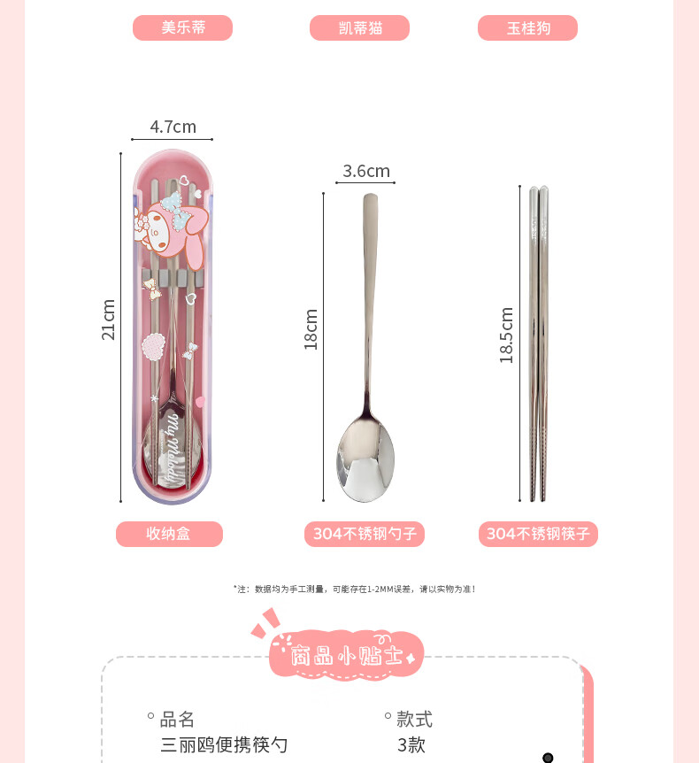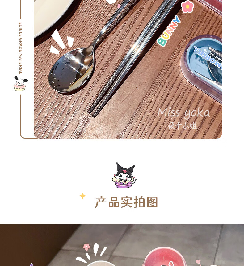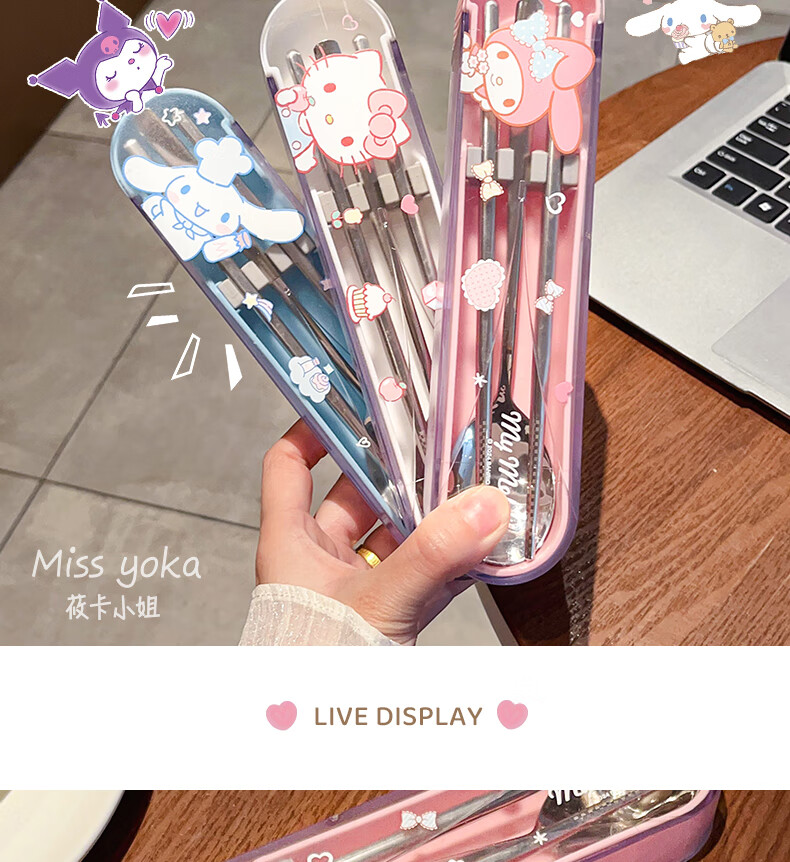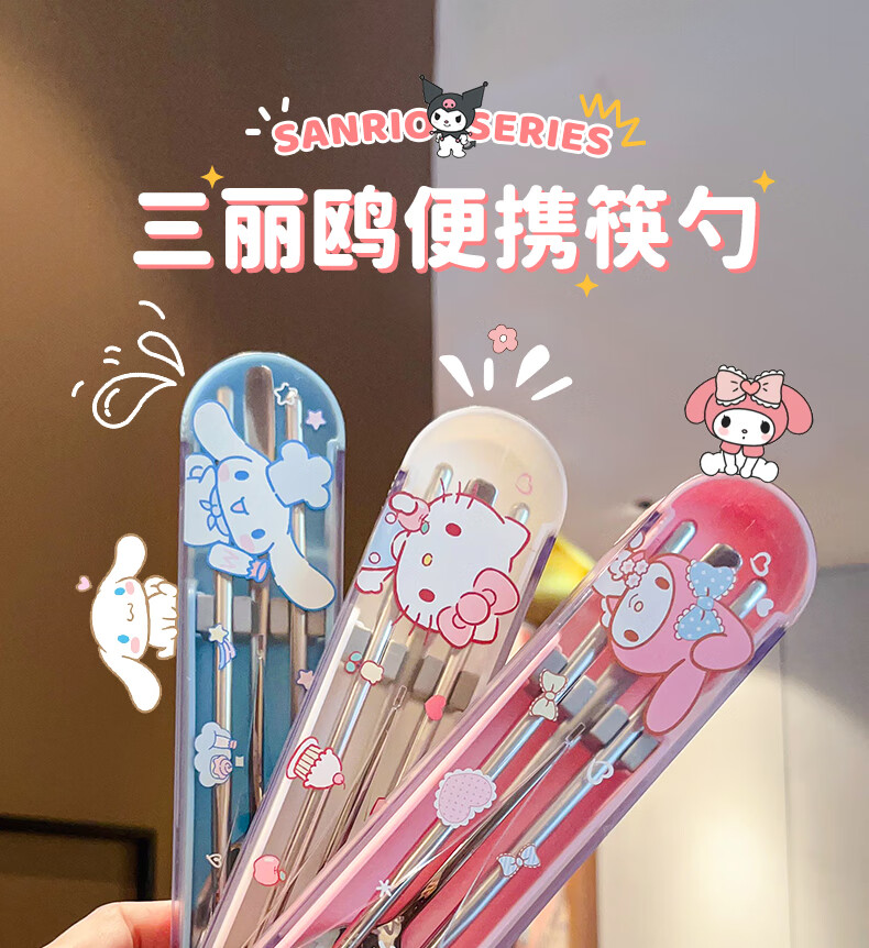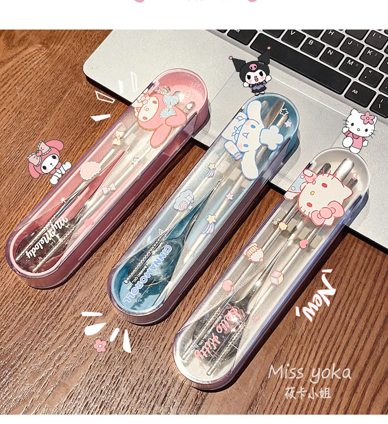 Miss Yoka Sanrio spoon and chopstick set household cute children's stainless steel portable tableware office worker student storage box big-eared dog stainless steel portable chopsticks and spoons