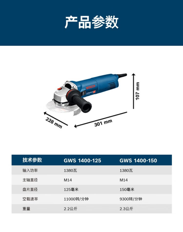 Bosch (BOSCH) GWS 1400-150 professional heavy-duty angle grinder cutting machine grinder 150MM GWS 1400-150