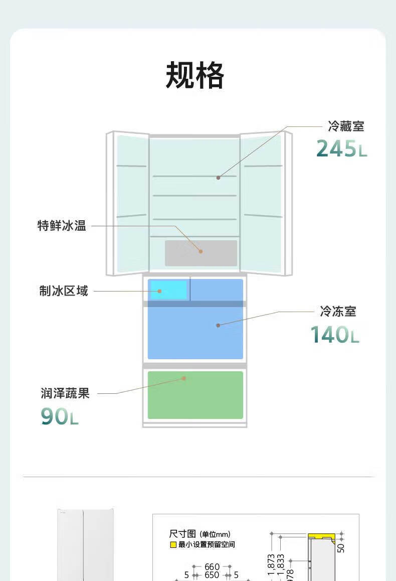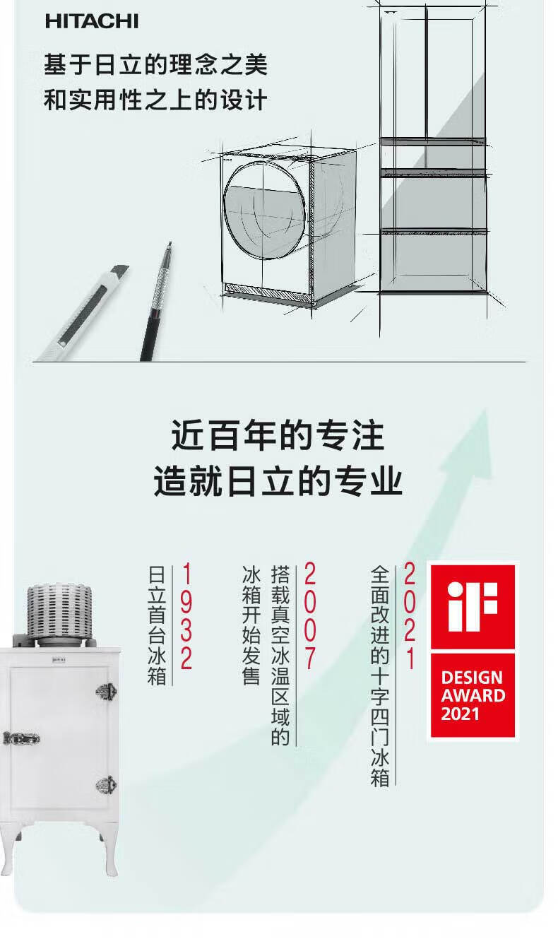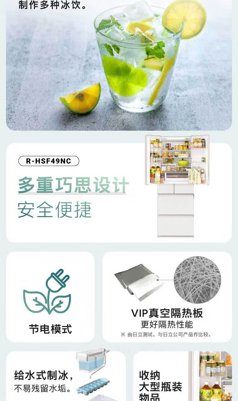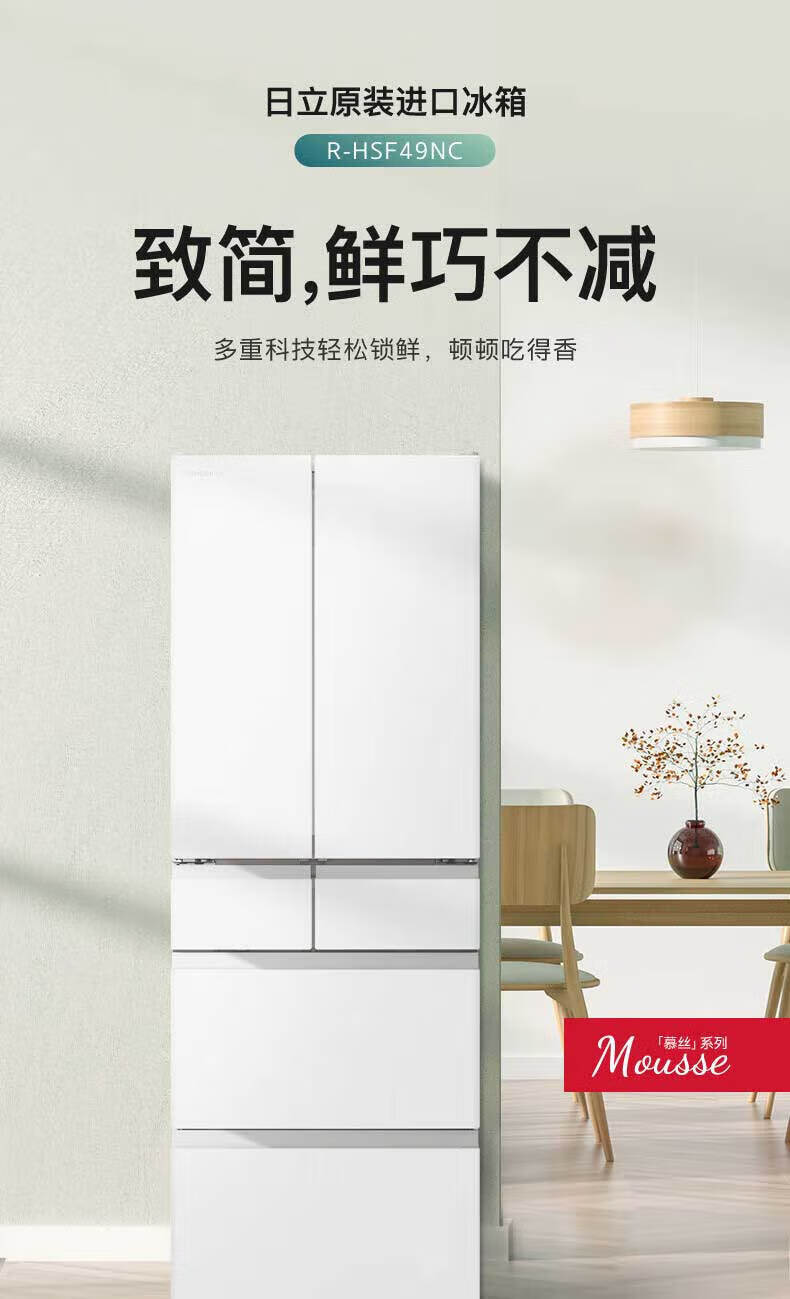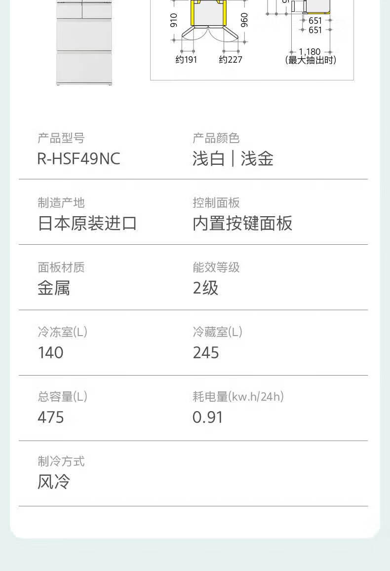 Hitachi refrigerator 475L air-cooled frost-free automatic ice making multi-door embedded R-HSF49NC cold set light gold