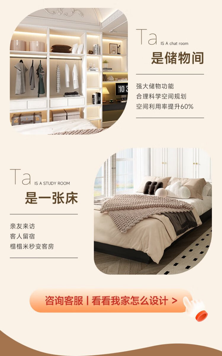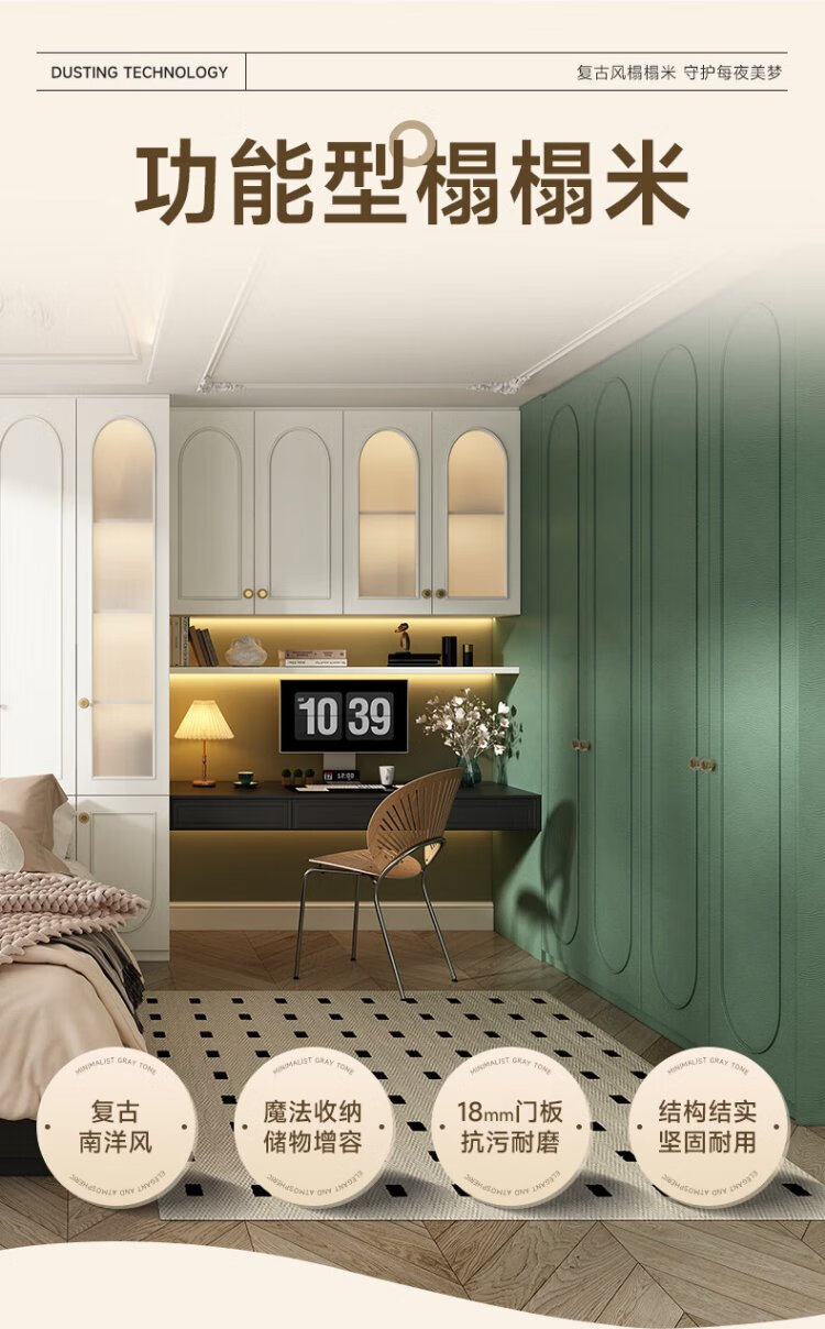 Piano retro cream style whole house customized study room with tatami bed and cabinet integrated functional room prepaid