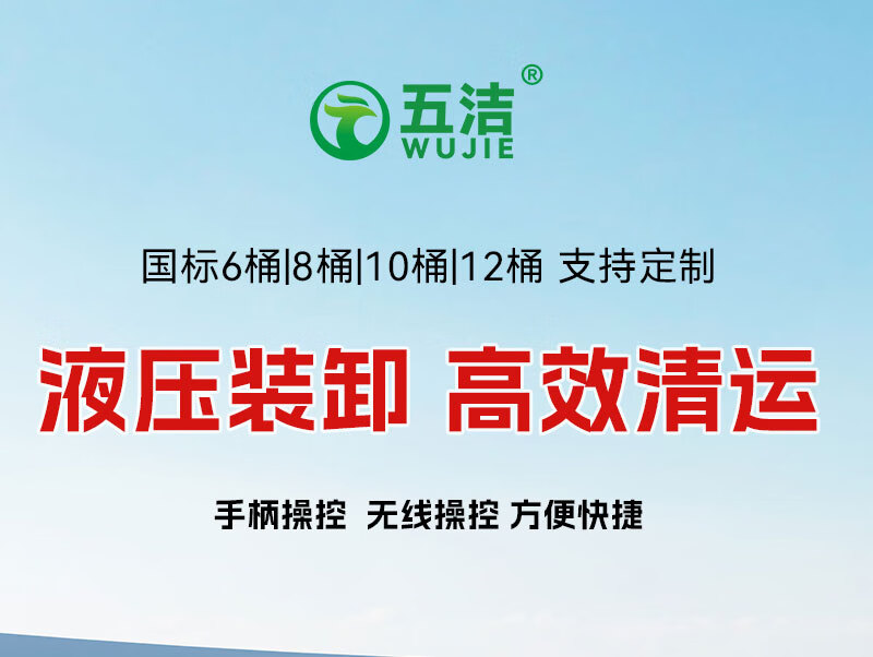 WUJIE electric garbage truck outdoor trash can removal truck new energy sanitation four-wheel transfer truck supports national standard 8 barrels 10 barrels lithium battery with strong power standard version motor 5kw 8 barrels 72V150AH