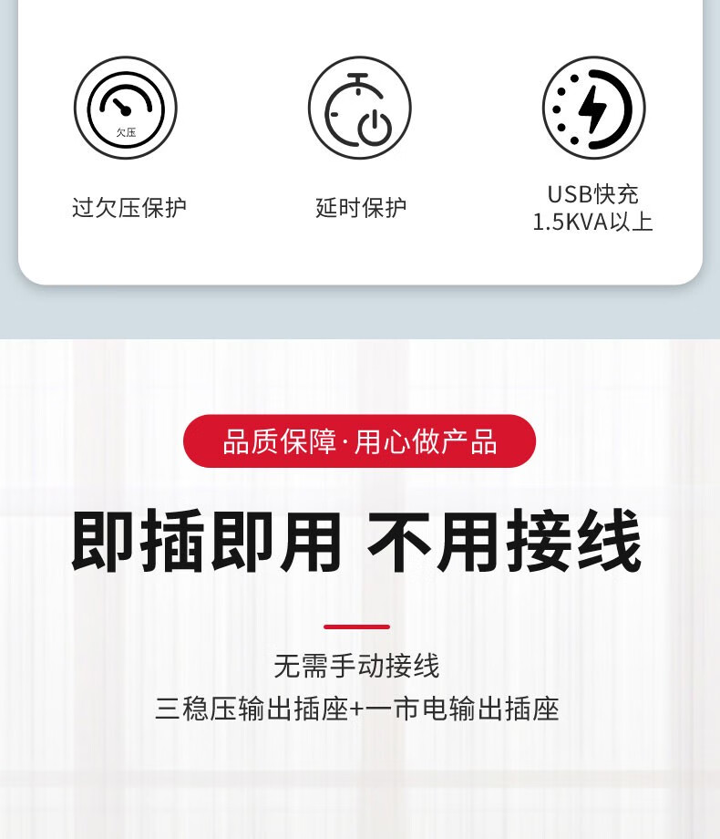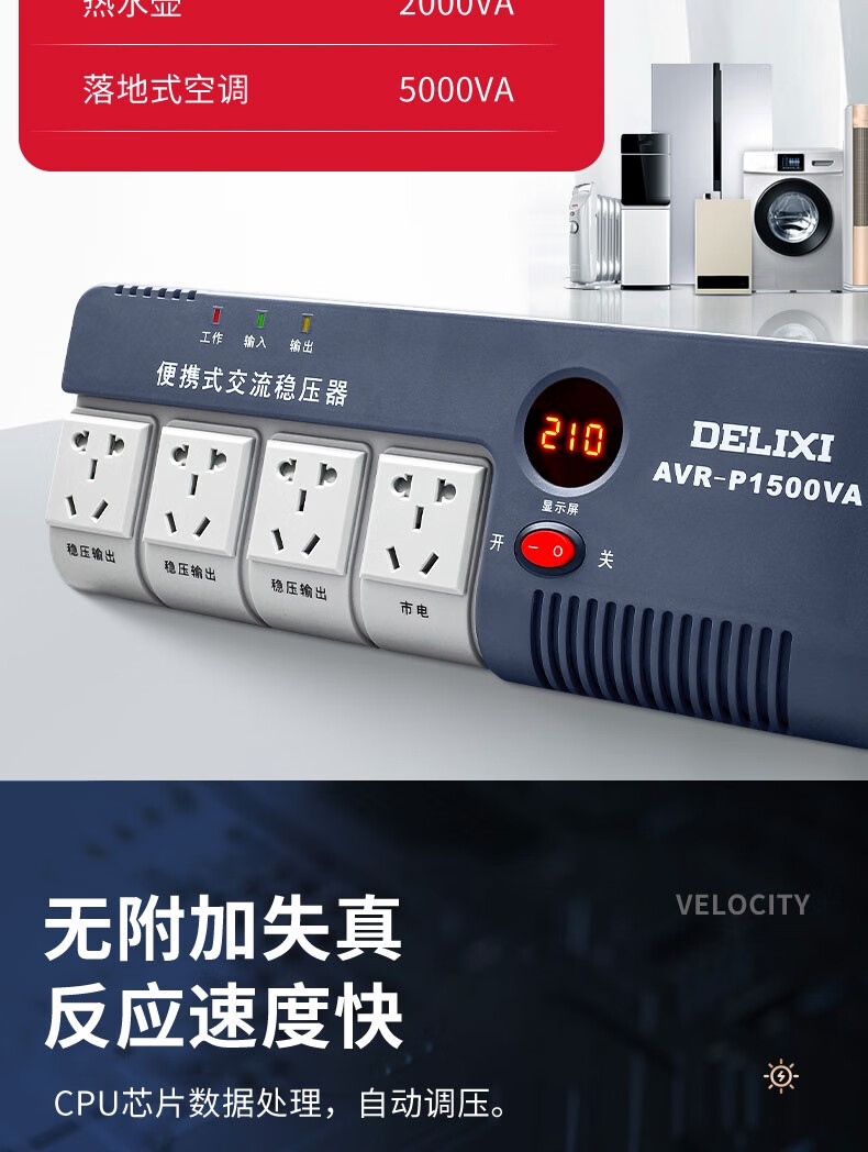 DELIXI ELECTRIC Delixi single-phase AC voltage regulator home air conditioner computer TV 220V fully automatic power socket plug-in type 1500VA AVRA1P5