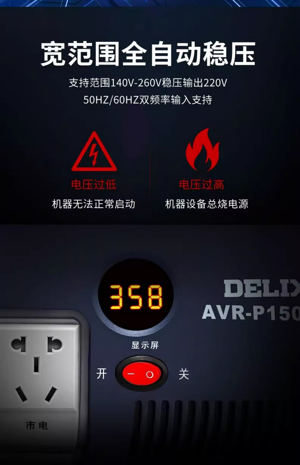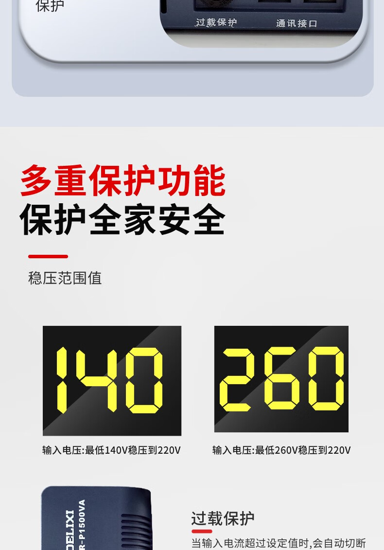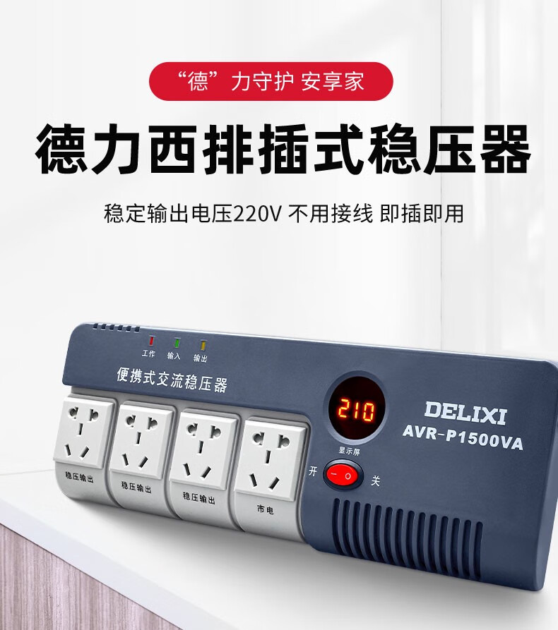 DELIXI ELECTRIC fully automatic single-phase AC voltage regulator power socket plug-in household air conditioner computer TV 220V TND series 30K (30000W)