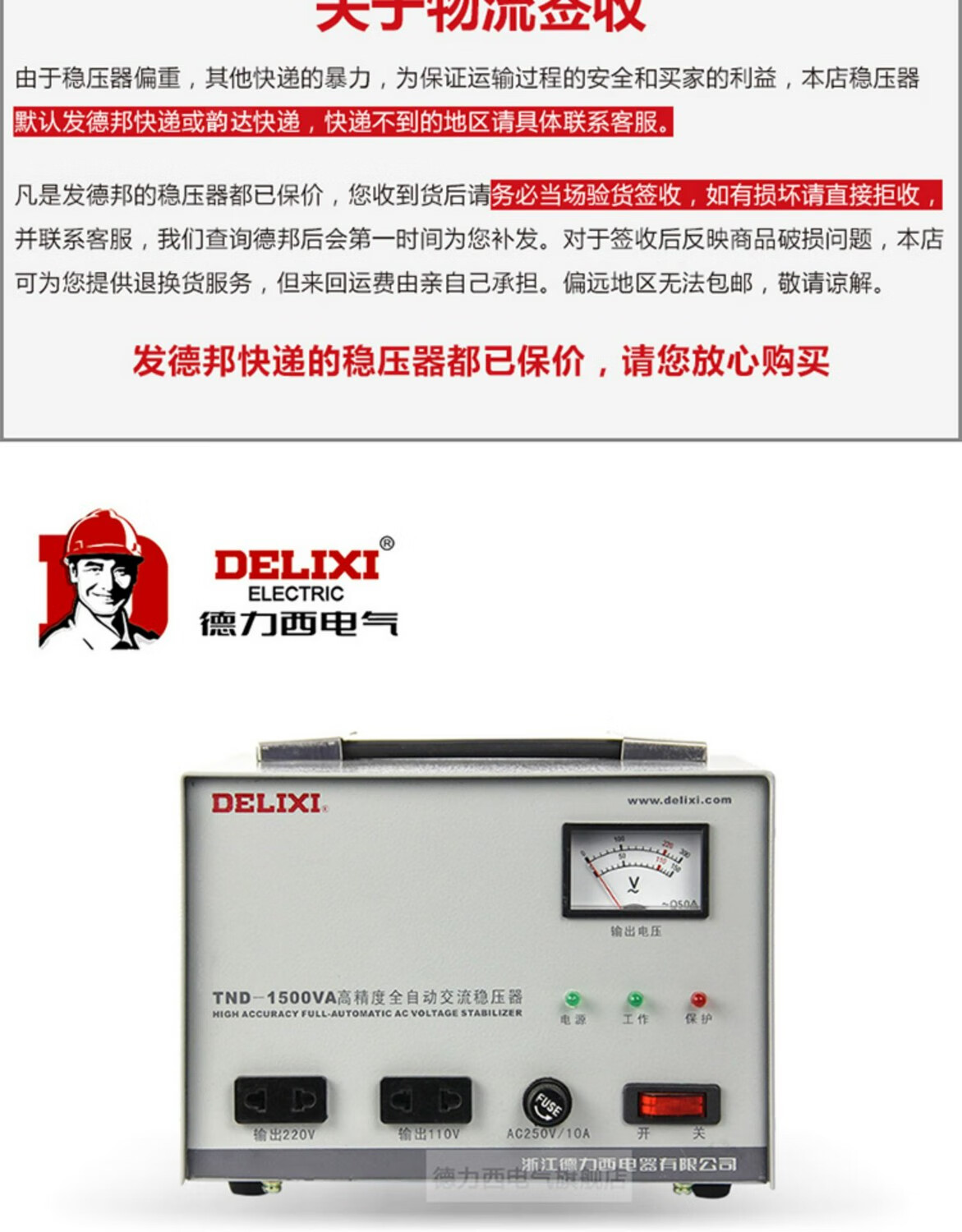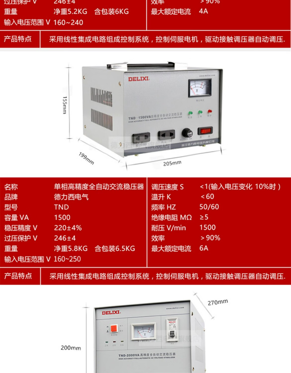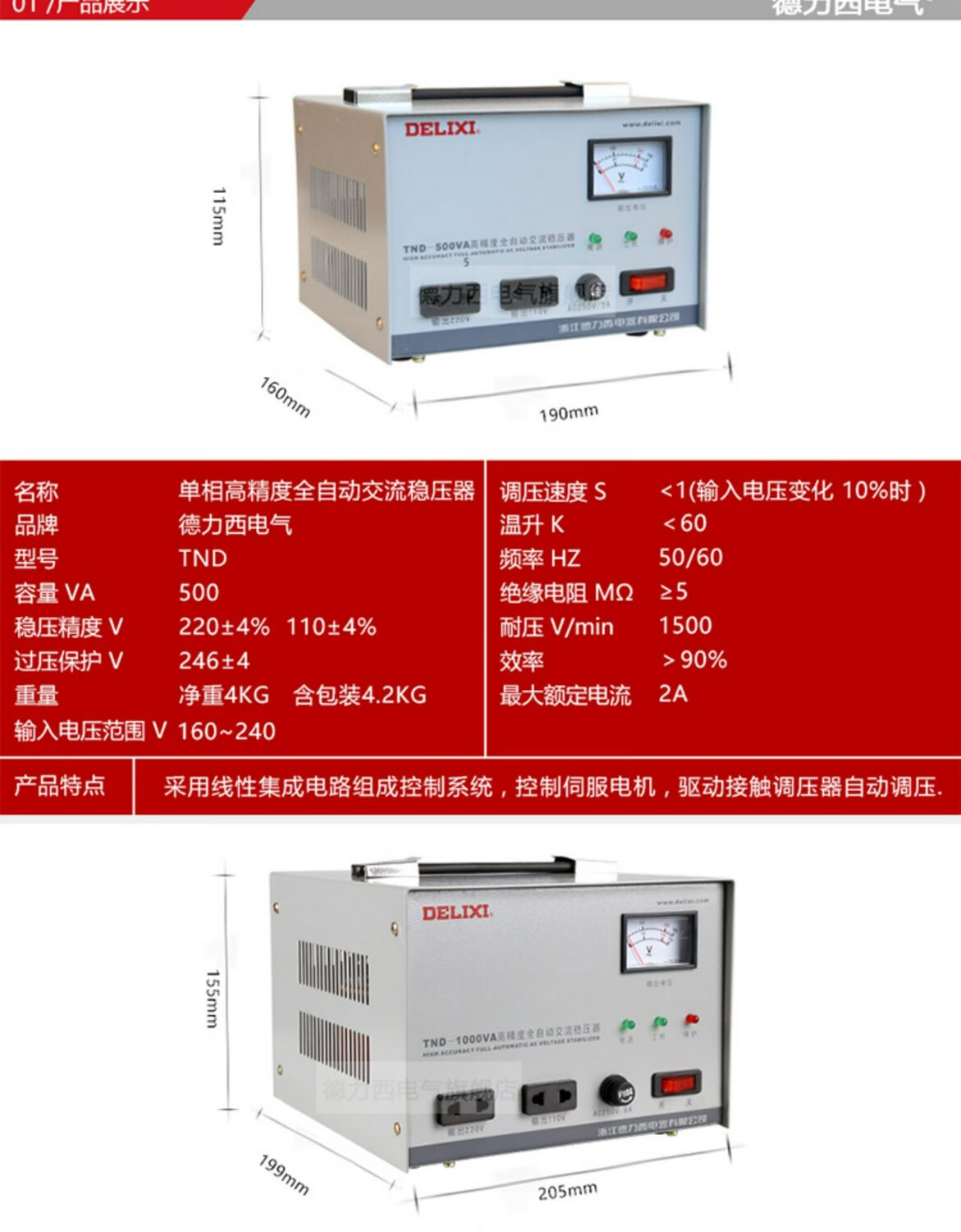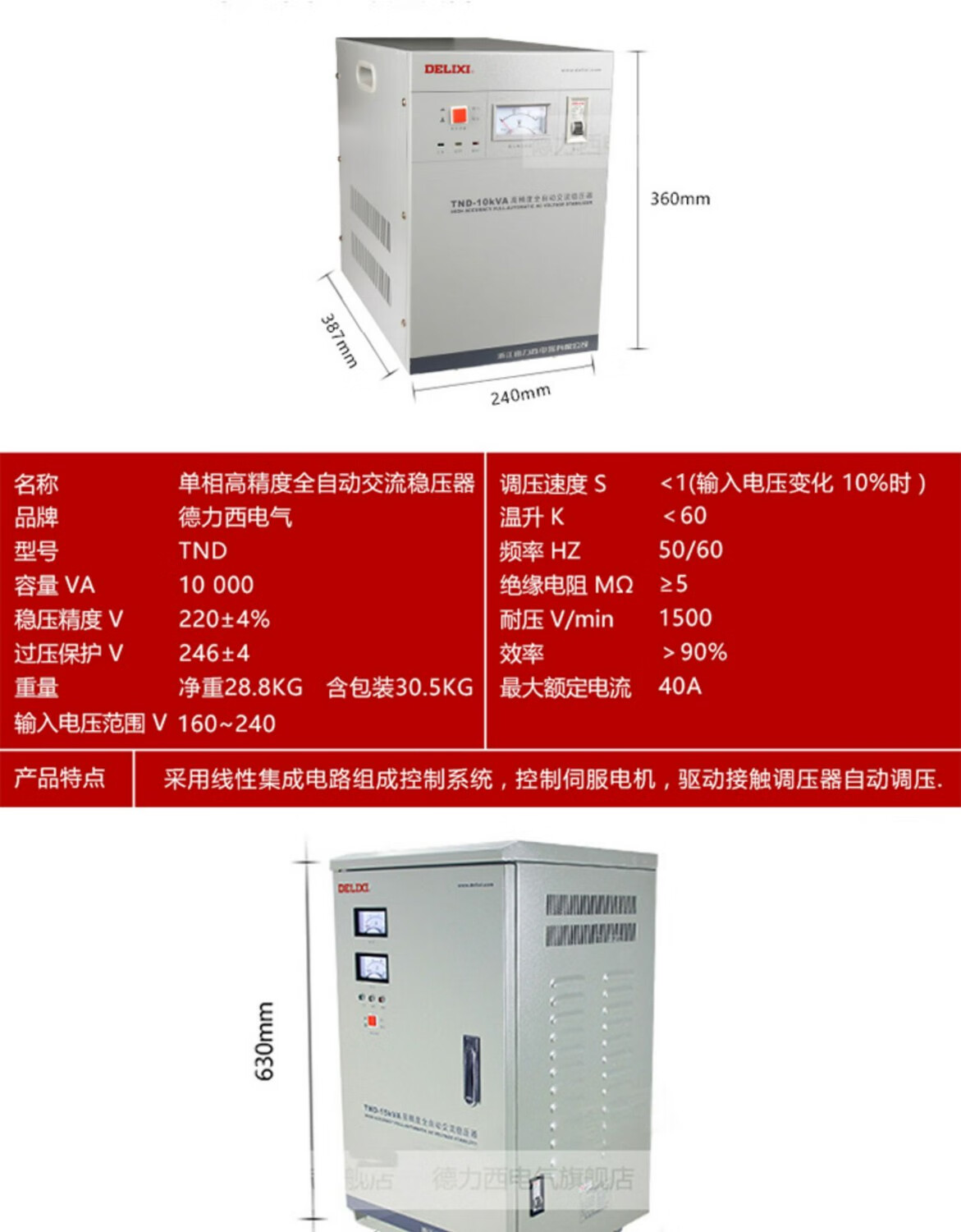 DELIXI ELECTRIC single-phase voltage stabilizer 220v fully automatic household high-power single-phase three-phase voltage regulator AC computer voltage regulator new TND-15K (15 kilowatts