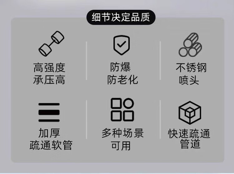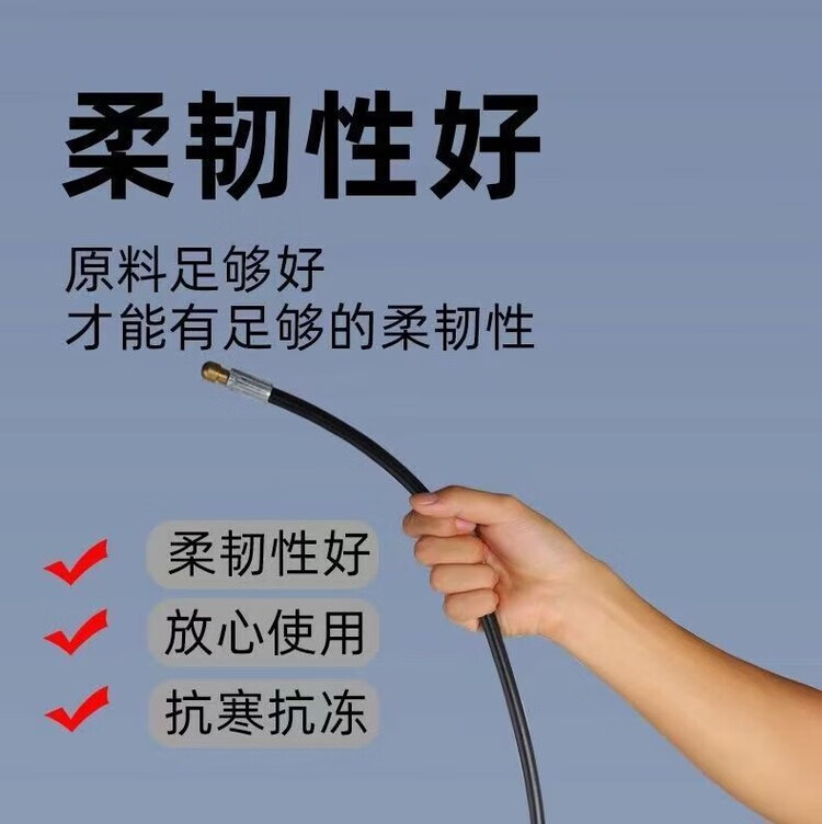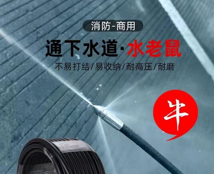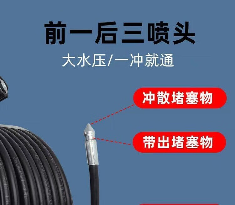 Water rat high-pressure dredging machine is a must-have for household sewer cleaning. New high-pressure toilet rat nozzle cleaning and dredging. Front 1 and rear 3* pipes are blocked and dredged. Pointed alloy. Twenty meters long to easily dredge the pipe. Powerful water pressure.