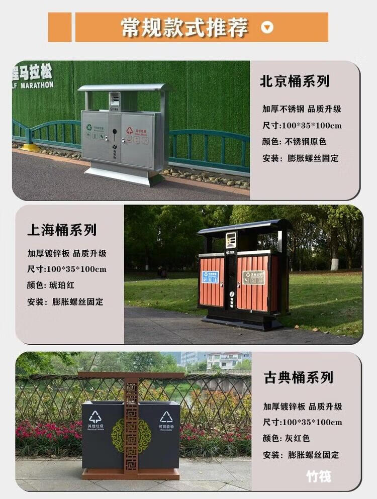 Outdoor trash can stainless steel peel box community scenic area outdoor galvanized sheet commercial trash can customized classification bucket 201 Beijing bucket stainless steel (transportation not included) The product does not include transportation + please contact customer service for customization