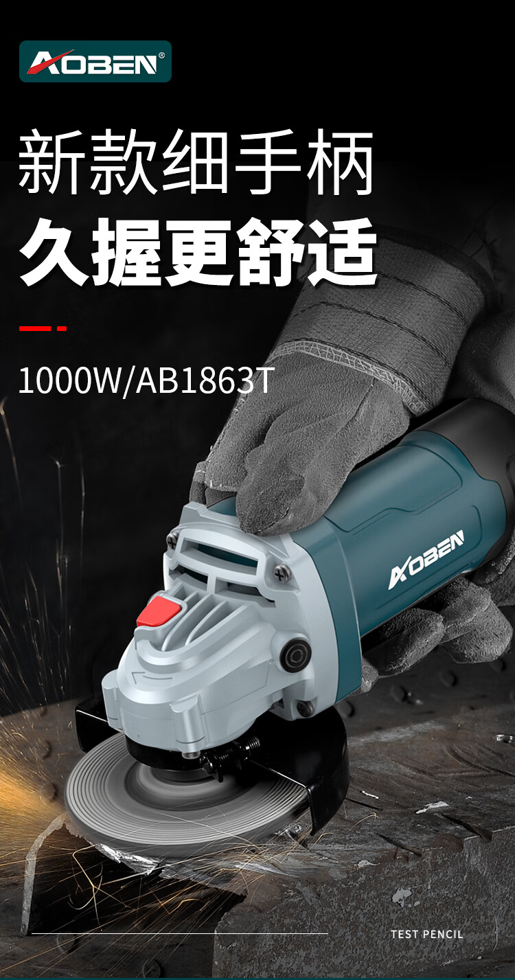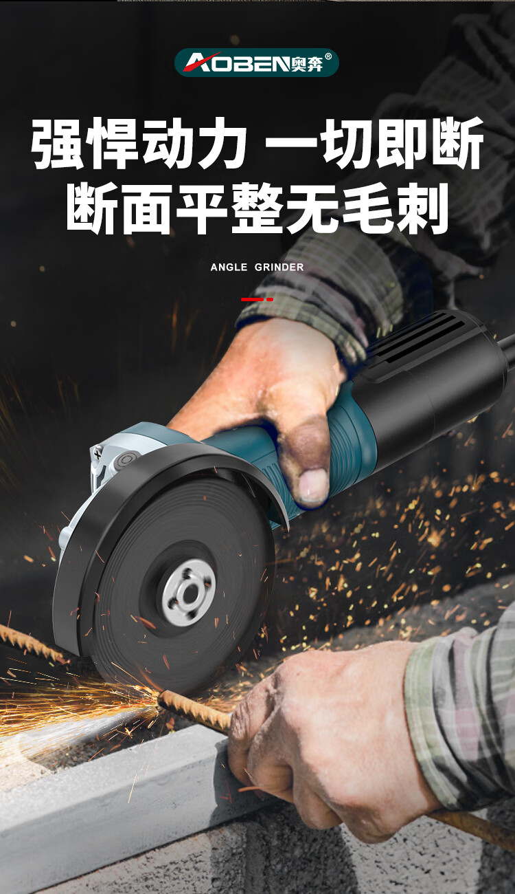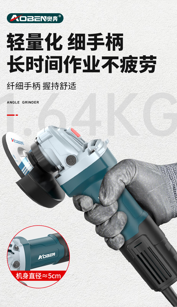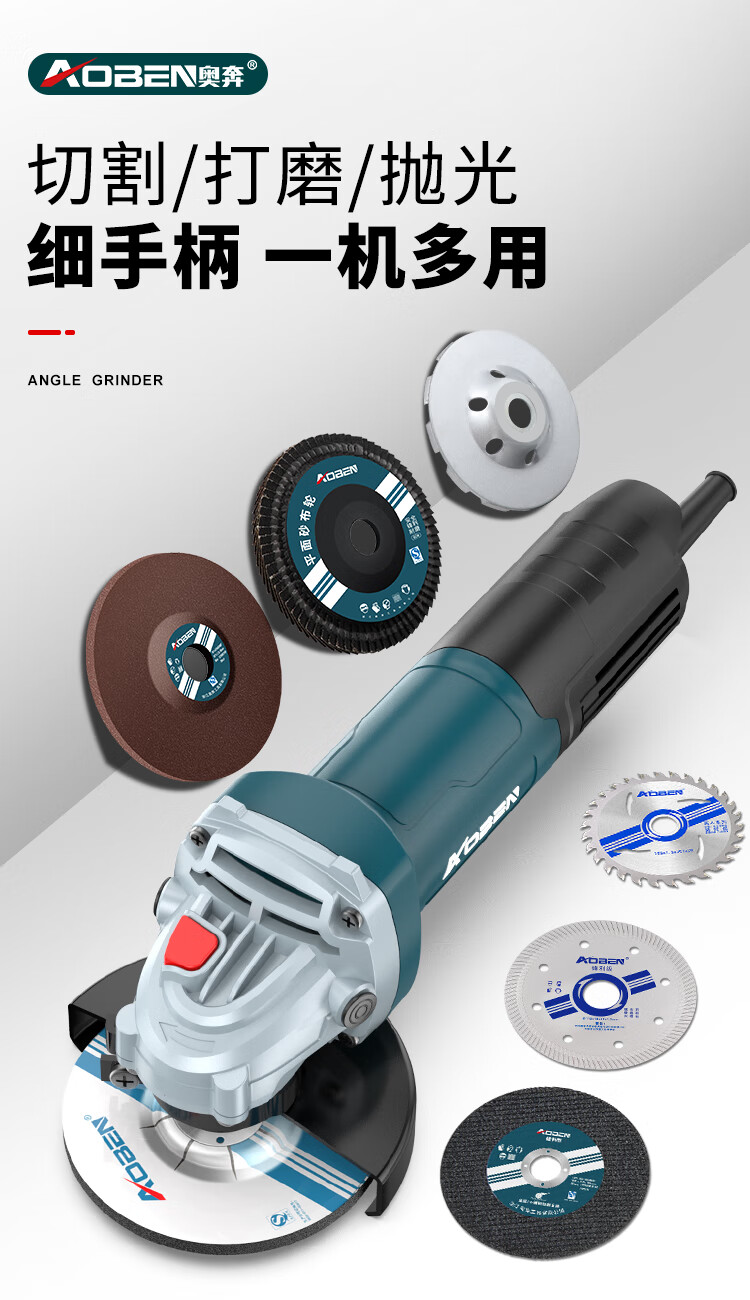 Auben angle grinder fine handle multi-functional small electric grinder household handheld wood cutting and polishing machine 1000W fine handle AB1863T standard