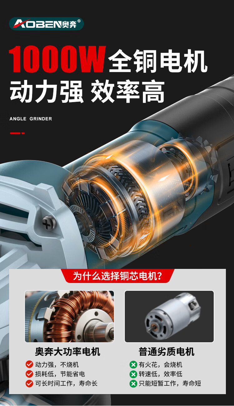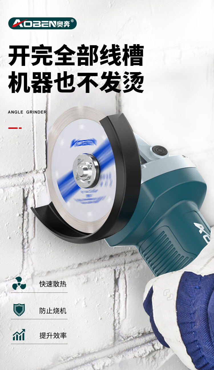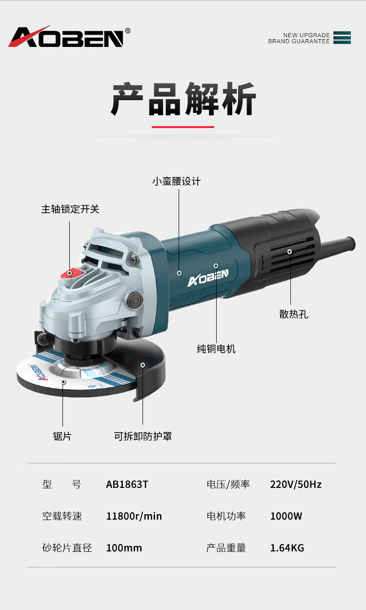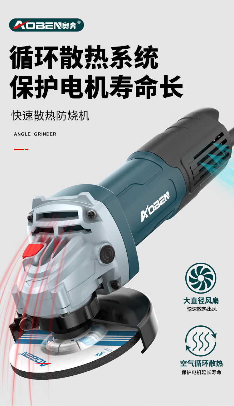Auben angle grinder fine handle multi-functional small electric grinder household handheld wood cutting and polishing machine 1000W fine handle AB1863T standard
