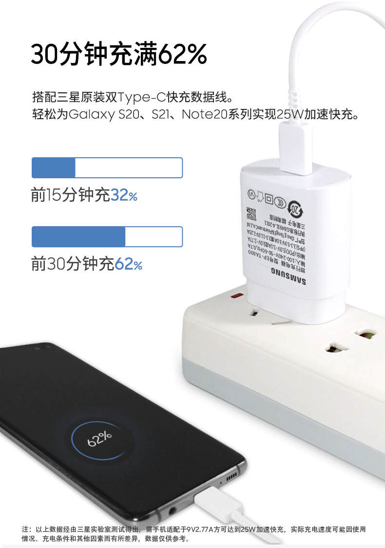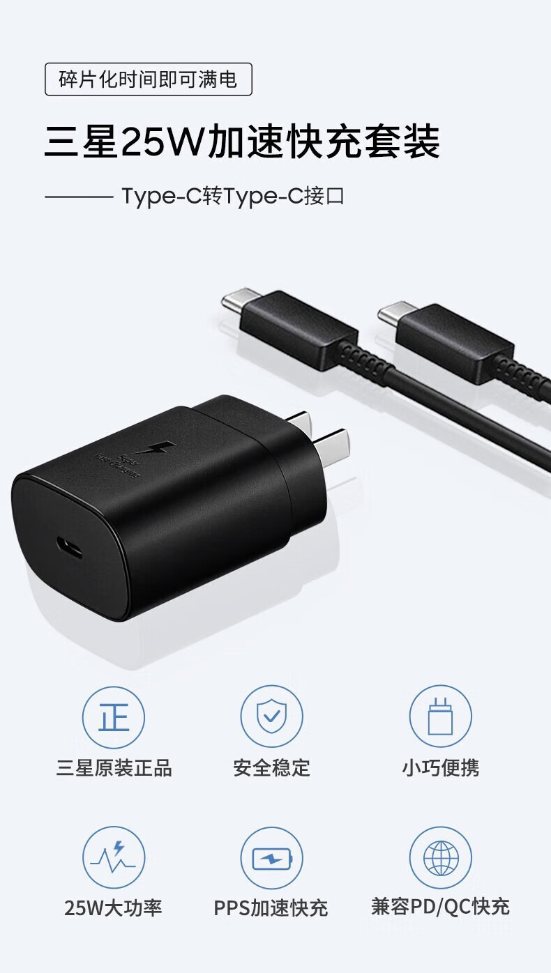 Samsung original 25W / 45W original charger ultra-fast charging second-hand charger second-hand data cable Type-C port charger Samsung 45W charging set black charging head + 1 meter cable 99 new