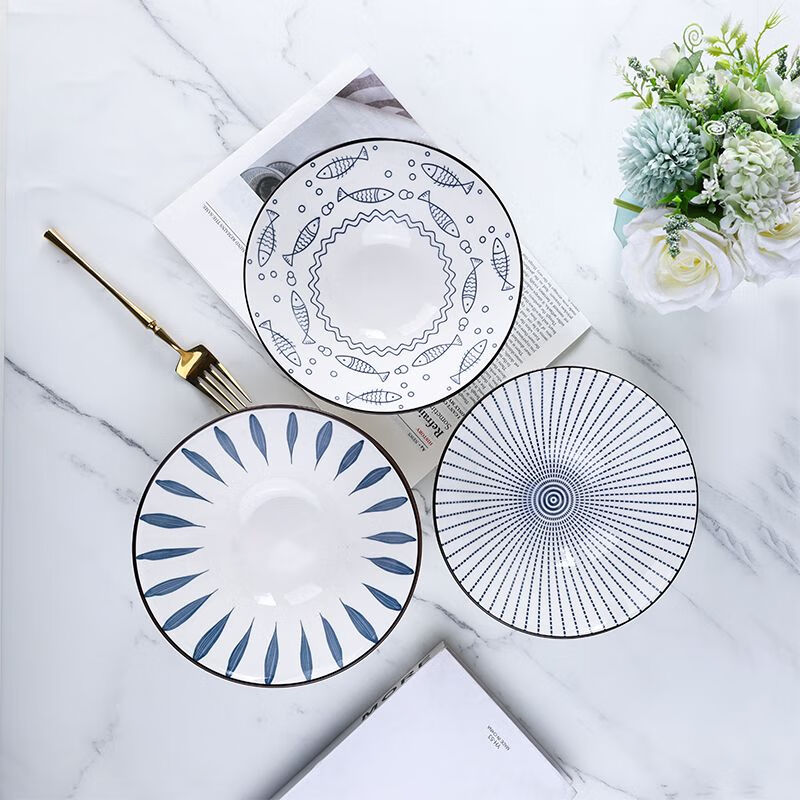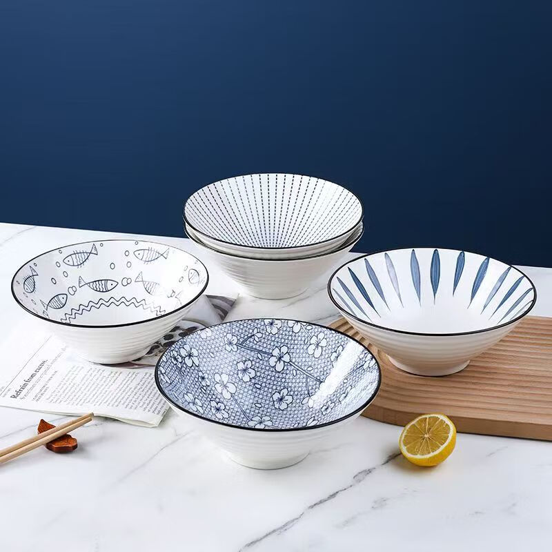 Japanese ramen bowl large bowl instant noodle bowl household Internet celebrity tableware 8 bucket hat porcelain bowl noodle restaurant bucket hat soup bowl ceramic bowl random style 8 inch bucket hat bowl 2 pieces