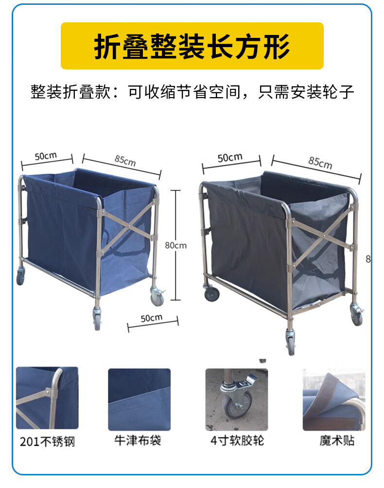 Hotel guest room laundry stainless steel trolley linen recycling cart linen frame folding trolley linen cart rectangular complete folding enlargement (no installation required) folding does not take up space