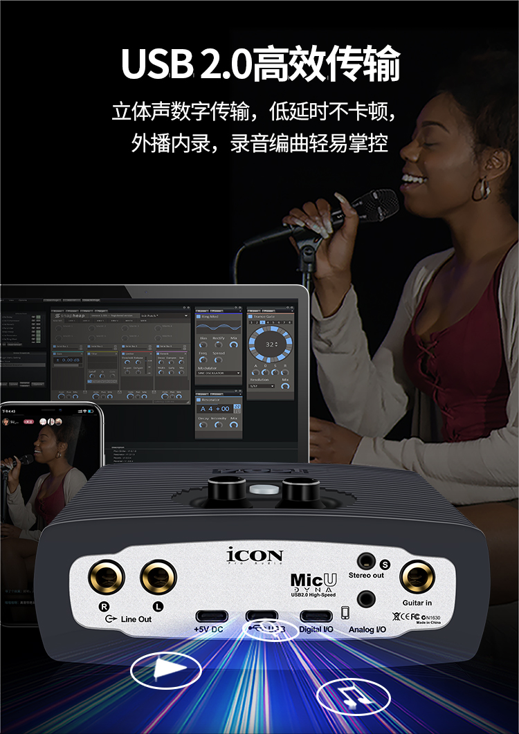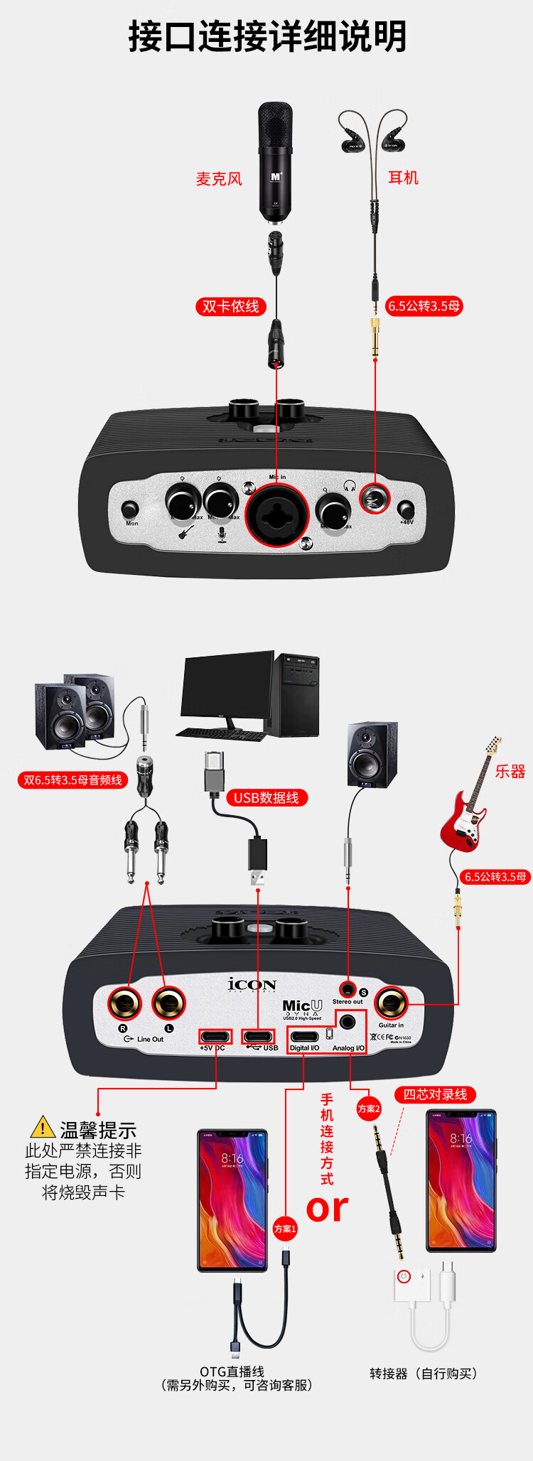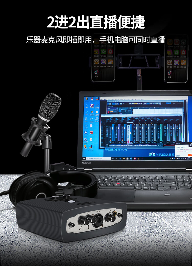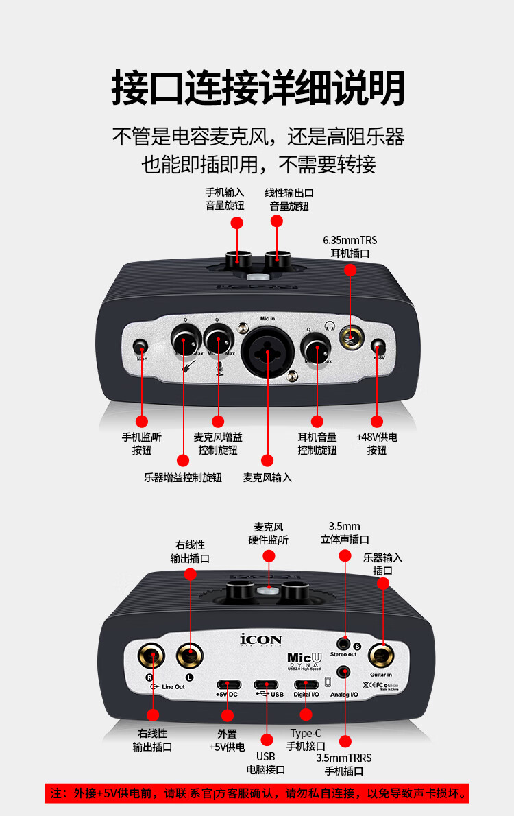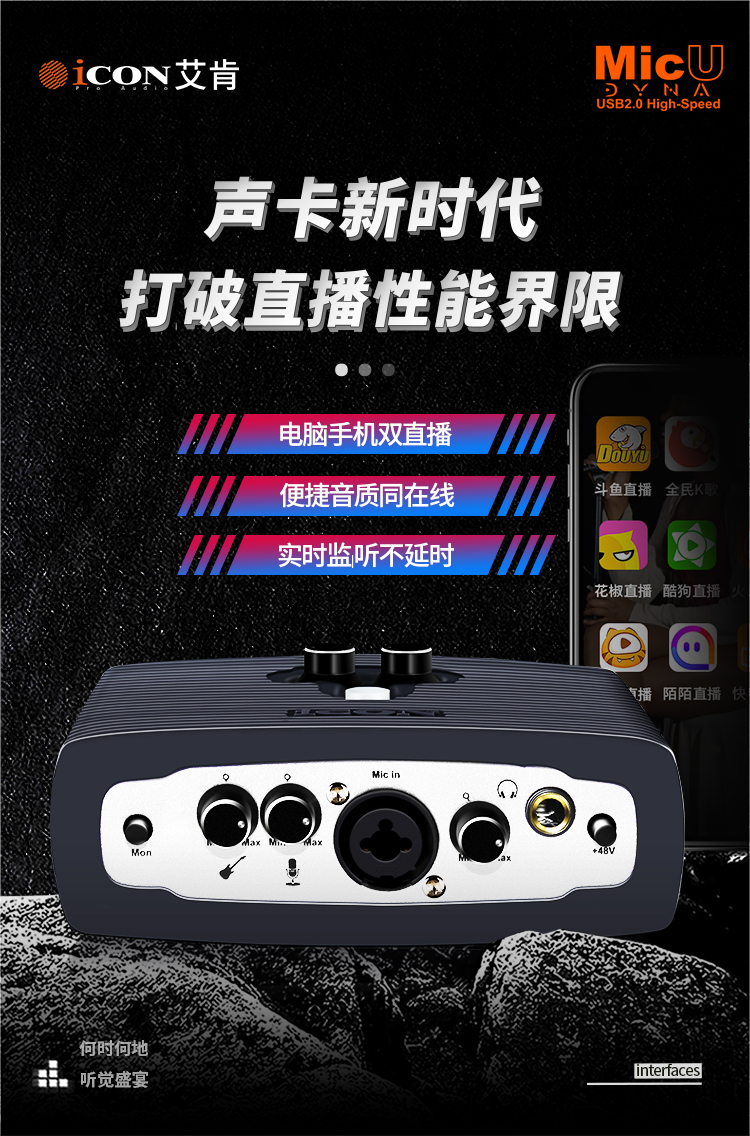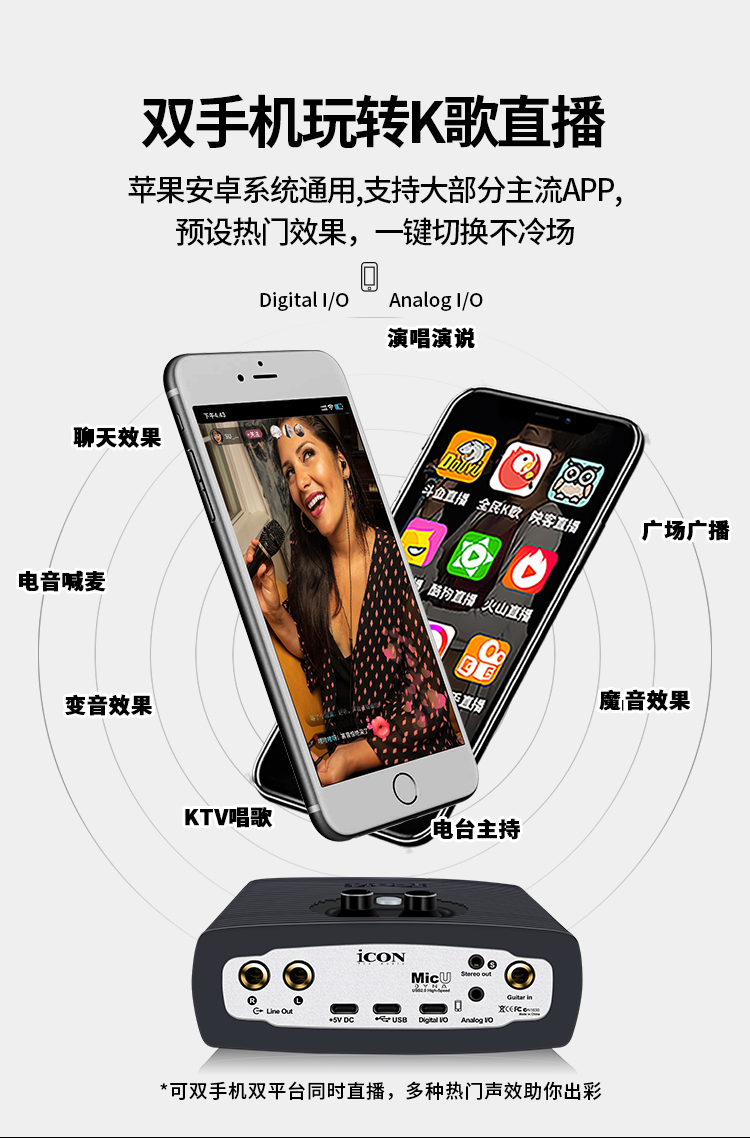 Aiken micu external sound card mobile phone computer live broadcast professional recording anchor network karaoke singing microphone microphone sound card equipment set micu + Aiken nova3
