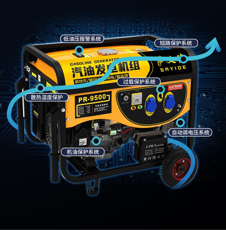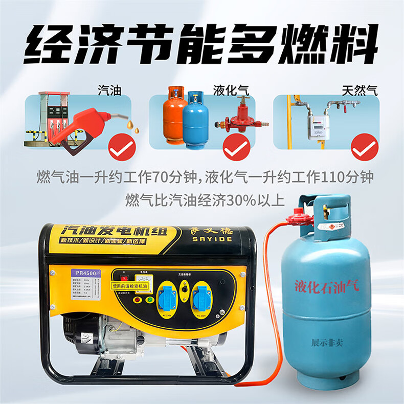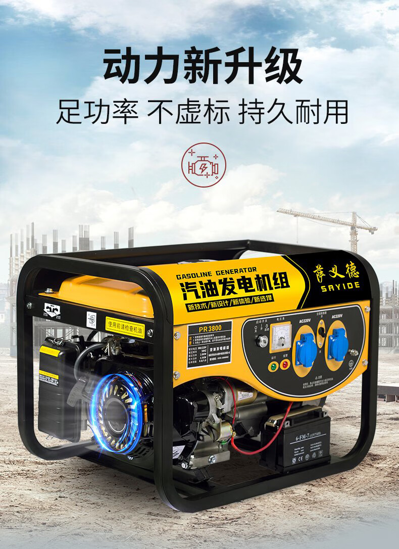 OUOETY gasoline generator 220v small household high power variable frequency three-phase 380V outdoor gas stall 3kw5 kilowatt 3500W hand start multi-fuel 220v